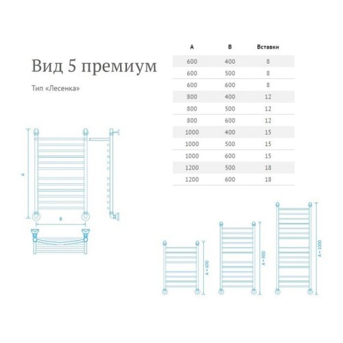 Полотенцесушитель Маргроид Вид 9 Премиум с полкой, нижнее подключение, форма - лесенка.