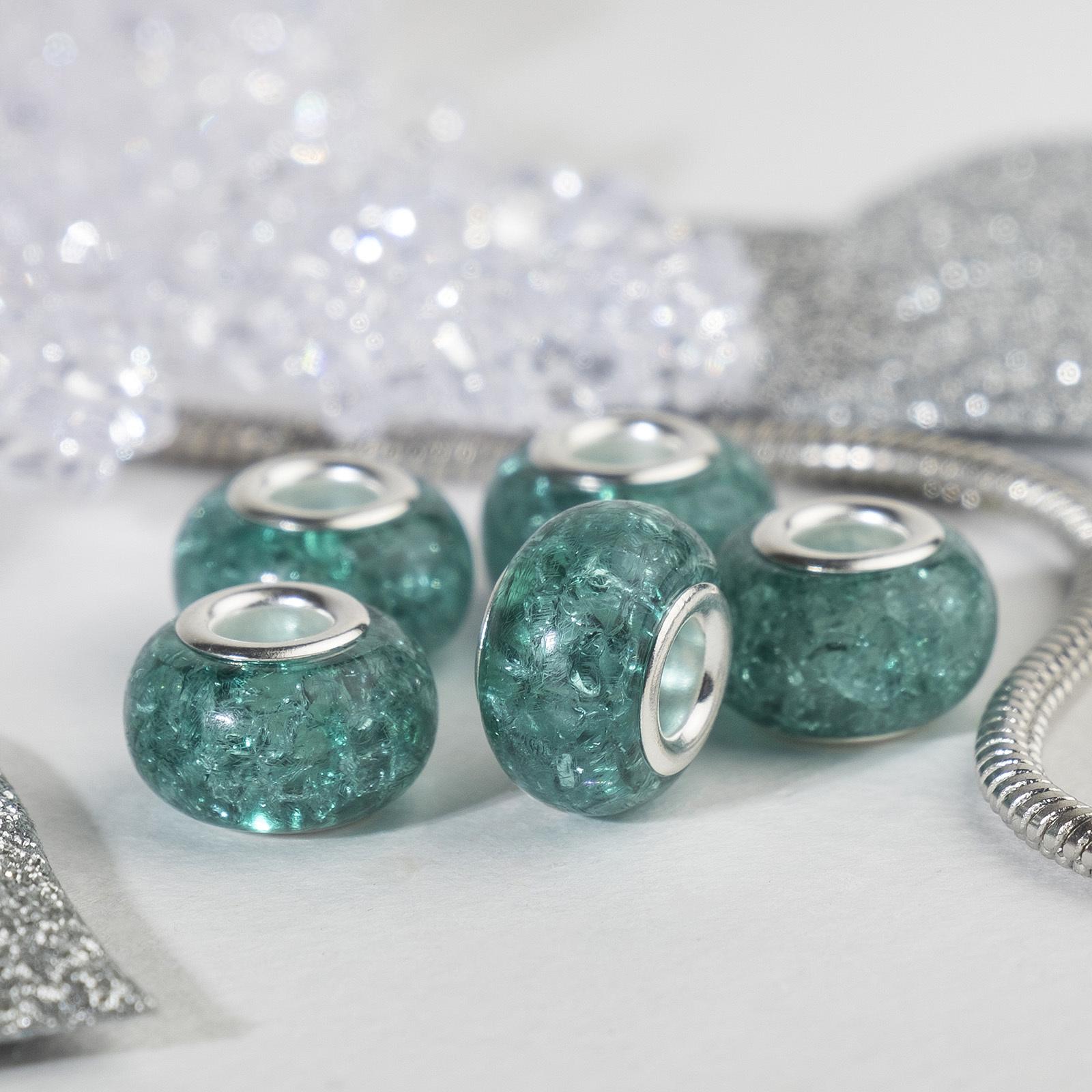 Бусина "Сахарный кварц", цвет зелёный в серебре