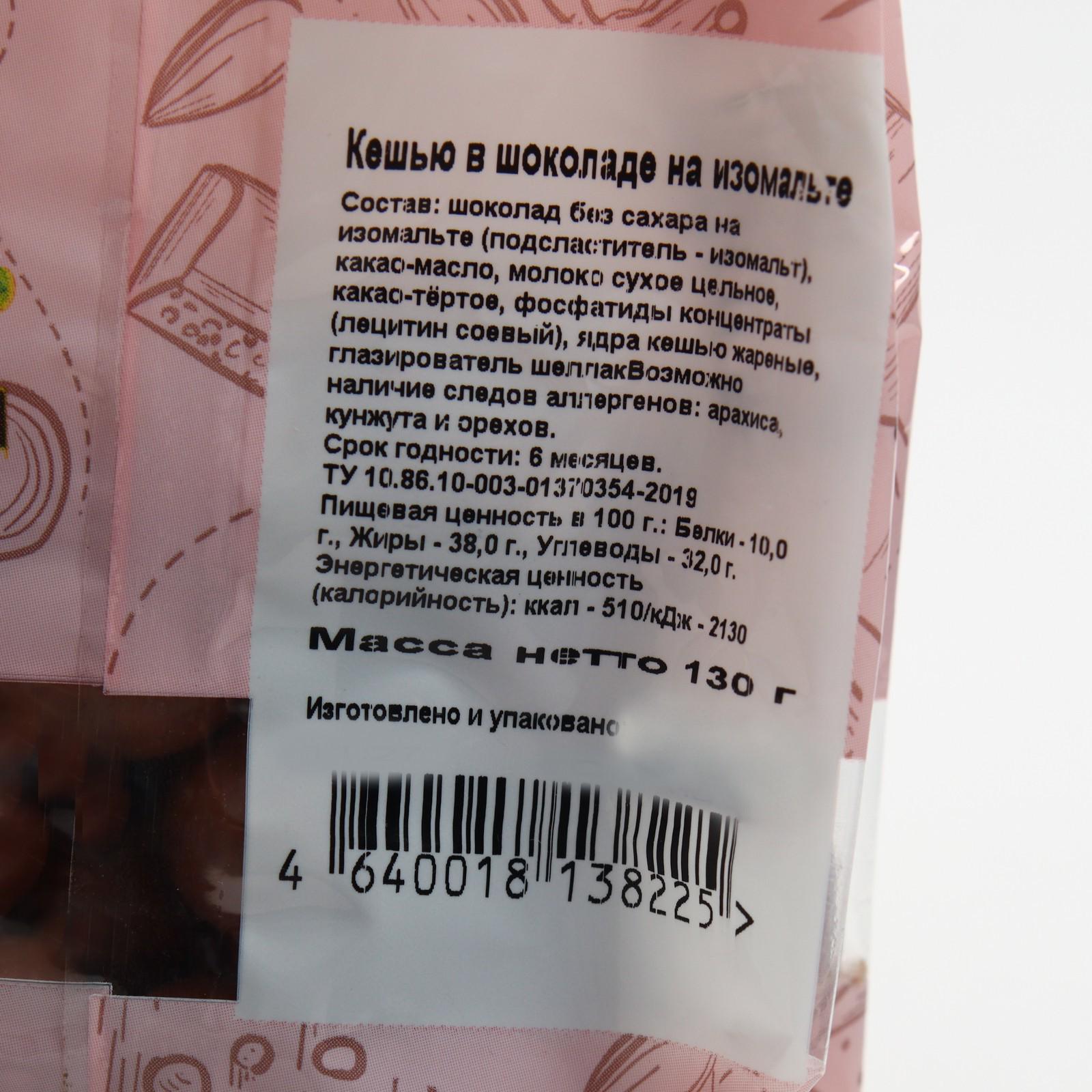 Бездиет Кешью в шоколаде на изомальте 130 г