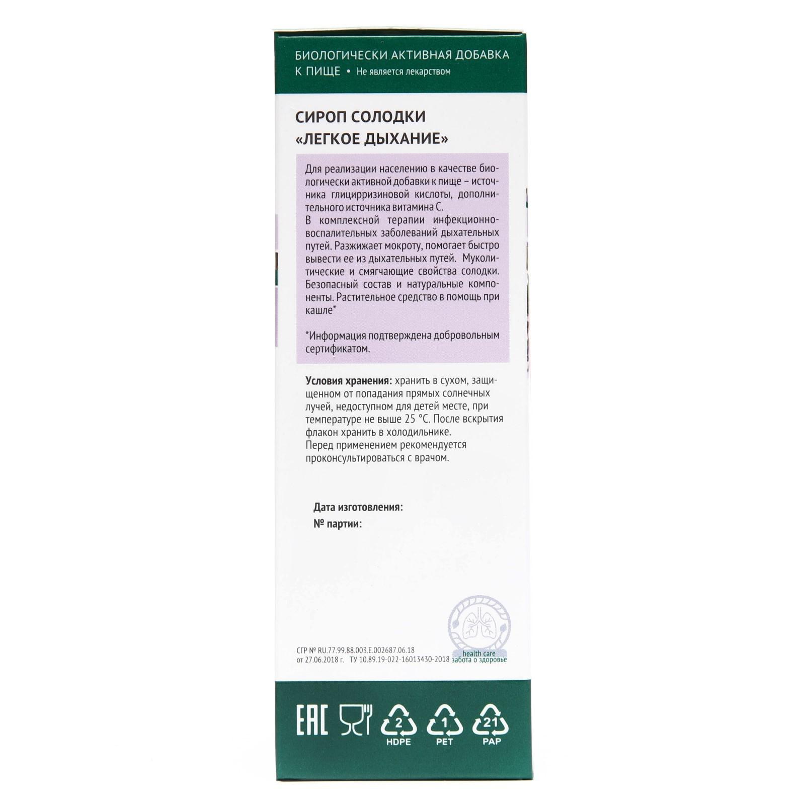 Сироп солодки Легкое дыхание, 150 мл