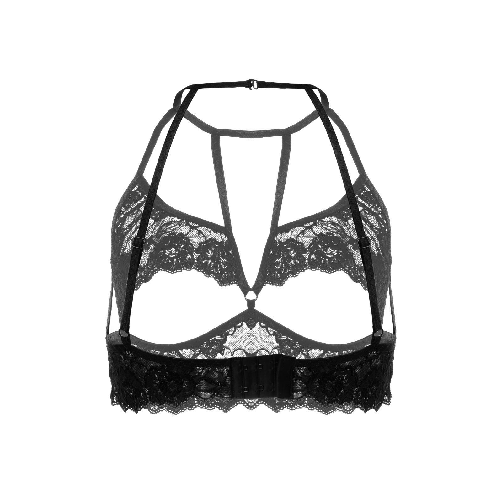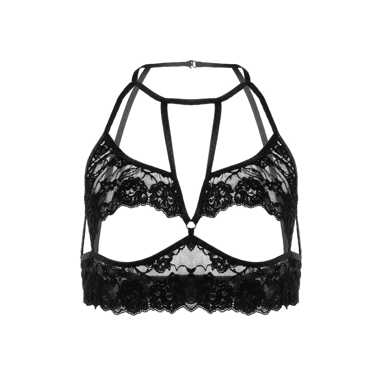 Эротический бралетт Erolanta Ellen кружевной с открытым нижним кливиджем, чёрный (50-52)