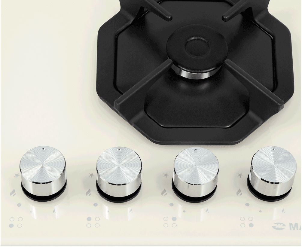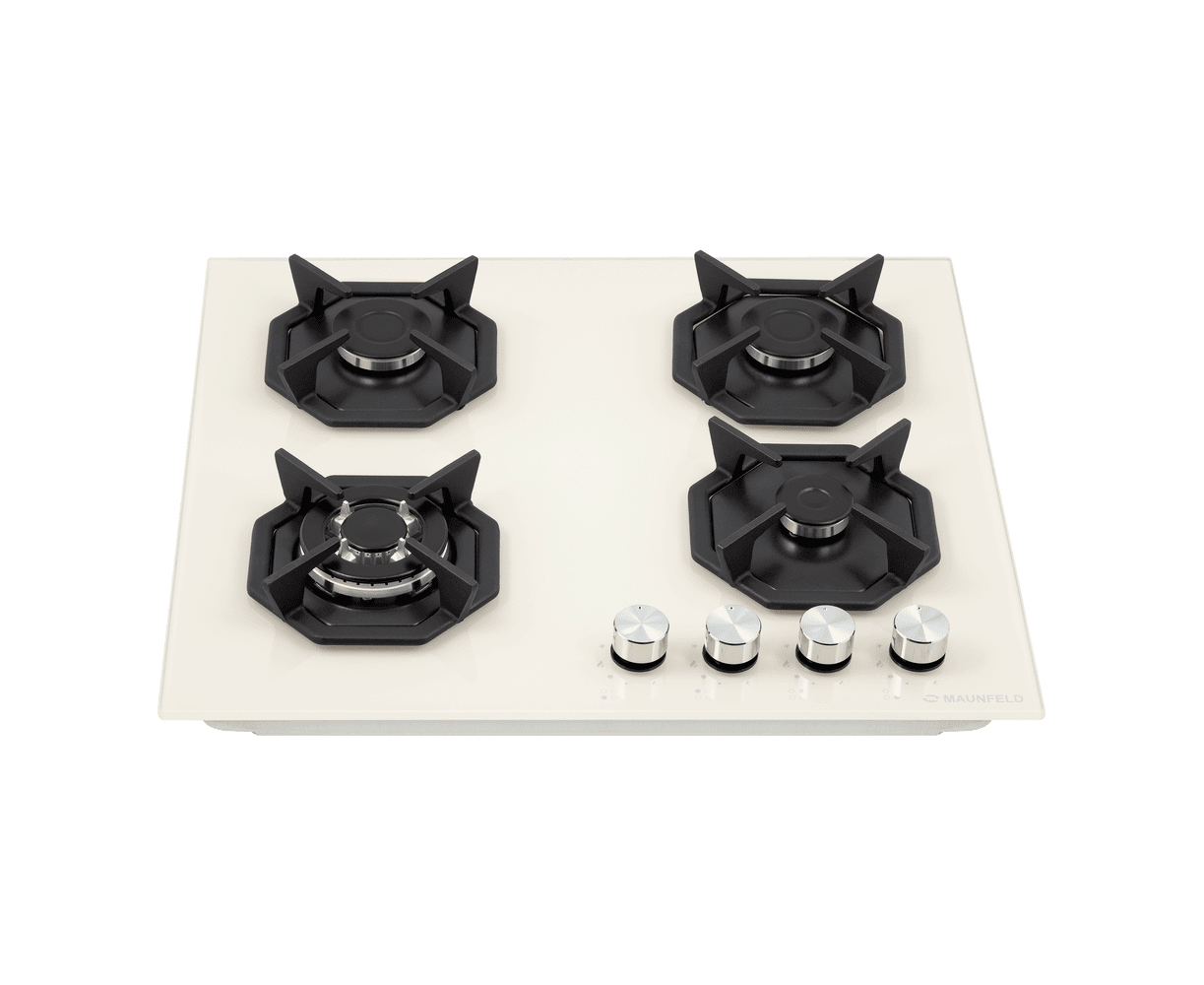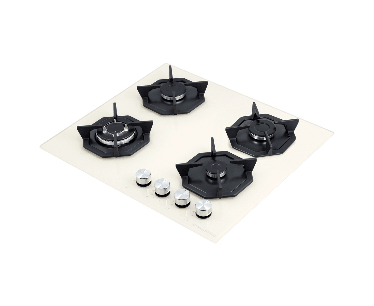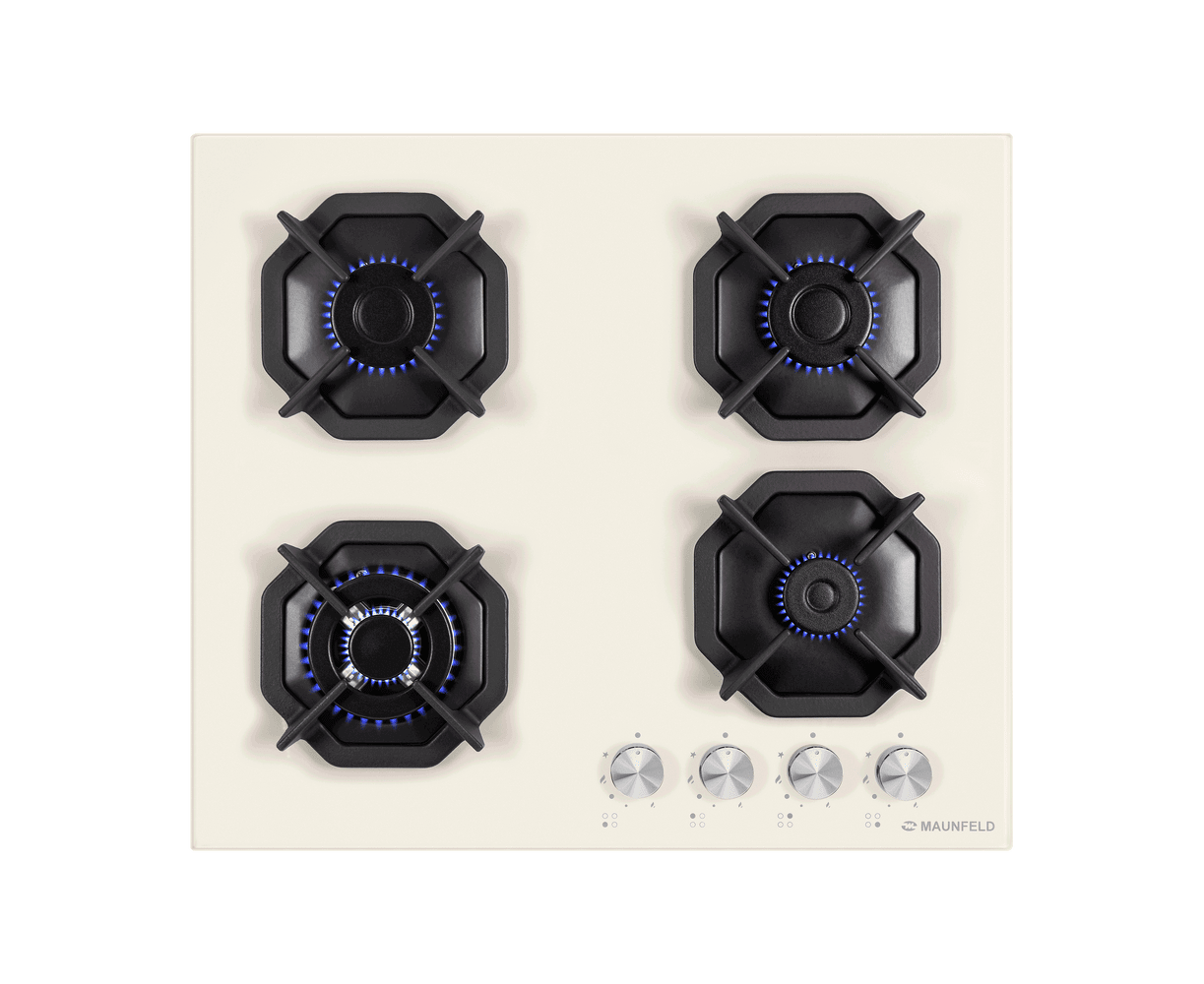 Восьмиугольные чугунные подставки – это запатентованное изобретение MAUNFELD, прочные и долговечные. Сами конфорки спроектированы таким образом, что огонь не перегревает ни чугунные решетки, ни ручки управления.