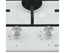 Управление подачи газа и электроподжиг конфорок происходит с помощью поворотных регуляторов. Для простоты использования около каждой ручки нанесены информационные изображения: используемая конфорка, подача газа выключена, электроподжиг, максимальное пламя и минимальное пламя.