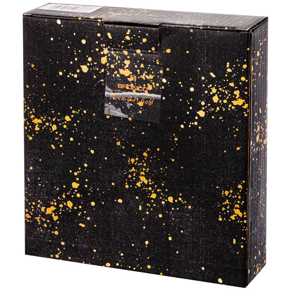 Коллекция "MIDNIGHT GOLD" ТМ BRONCO - это ультрамодная сервировка стола. Черный с золотыми брызгами и окантовкой фарфор. Глубокое матовое покрытие. Каждый предмет коллекции уникален. Тарелки в виде форм для запекания, сковородок, чугунков, элементы поверхности гриль на дне изделий - все это делает Ваш стол неповторимым! Посуда прошла сертификацию. Безопасна для контакта с пищевыми продуктами. С осторожностью использовать изделия в посудомоечной машине и микроволновой печи по причине возможного повреждения золотого декоративного покрытия. Рекомендуется применять мягкие средства для мытья в посудомоечной машине.