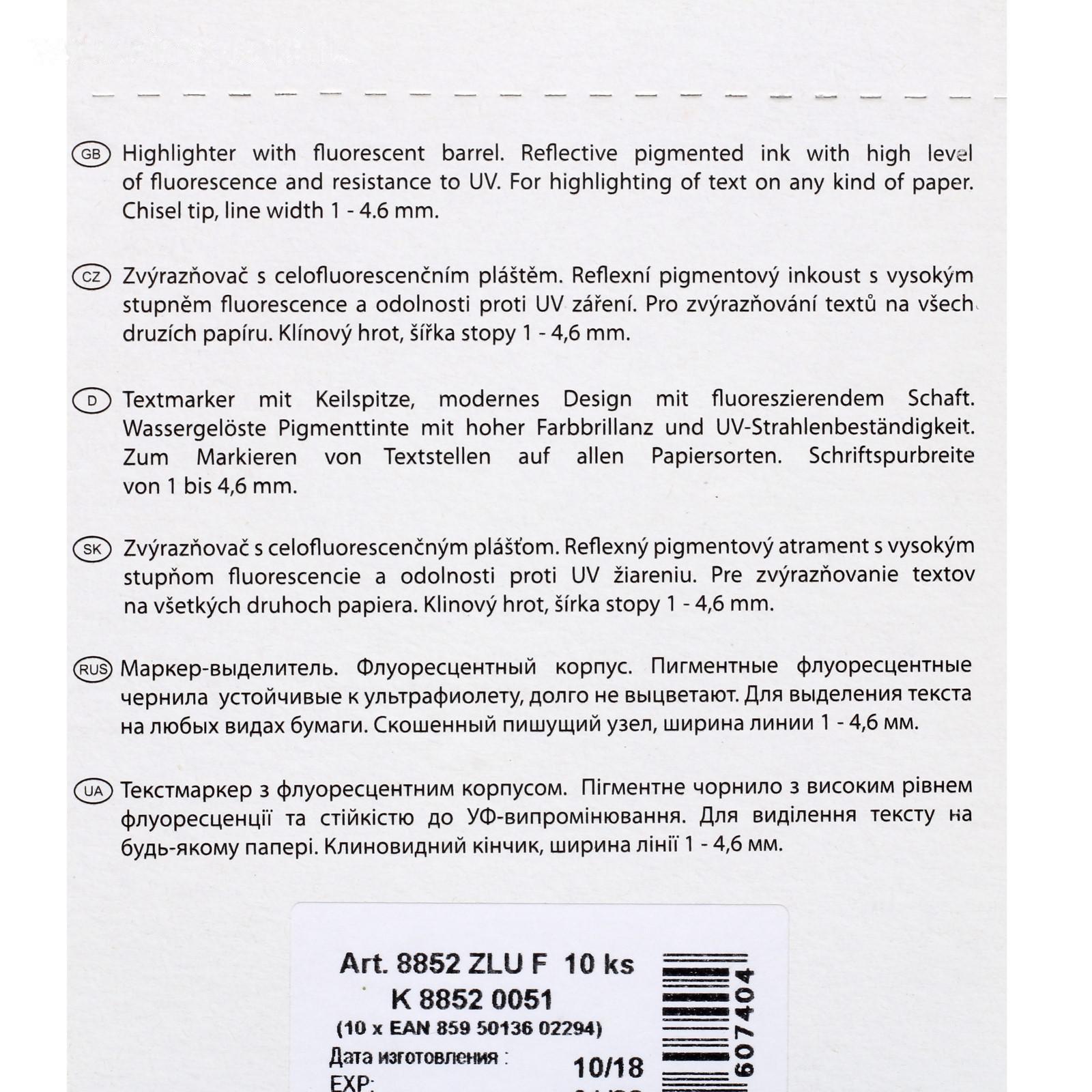 Текстмаркер для выделения текста на любом виде бумаги. Скошеный пишуший узел.