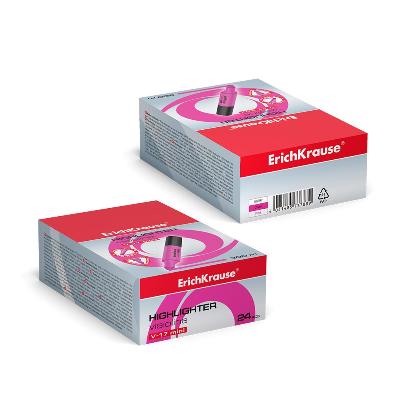 Маркер текстовыделитель ErichKrause Visioline V-17 Mini, 0.6-4.5 мм, чернила на водной основе, розовый