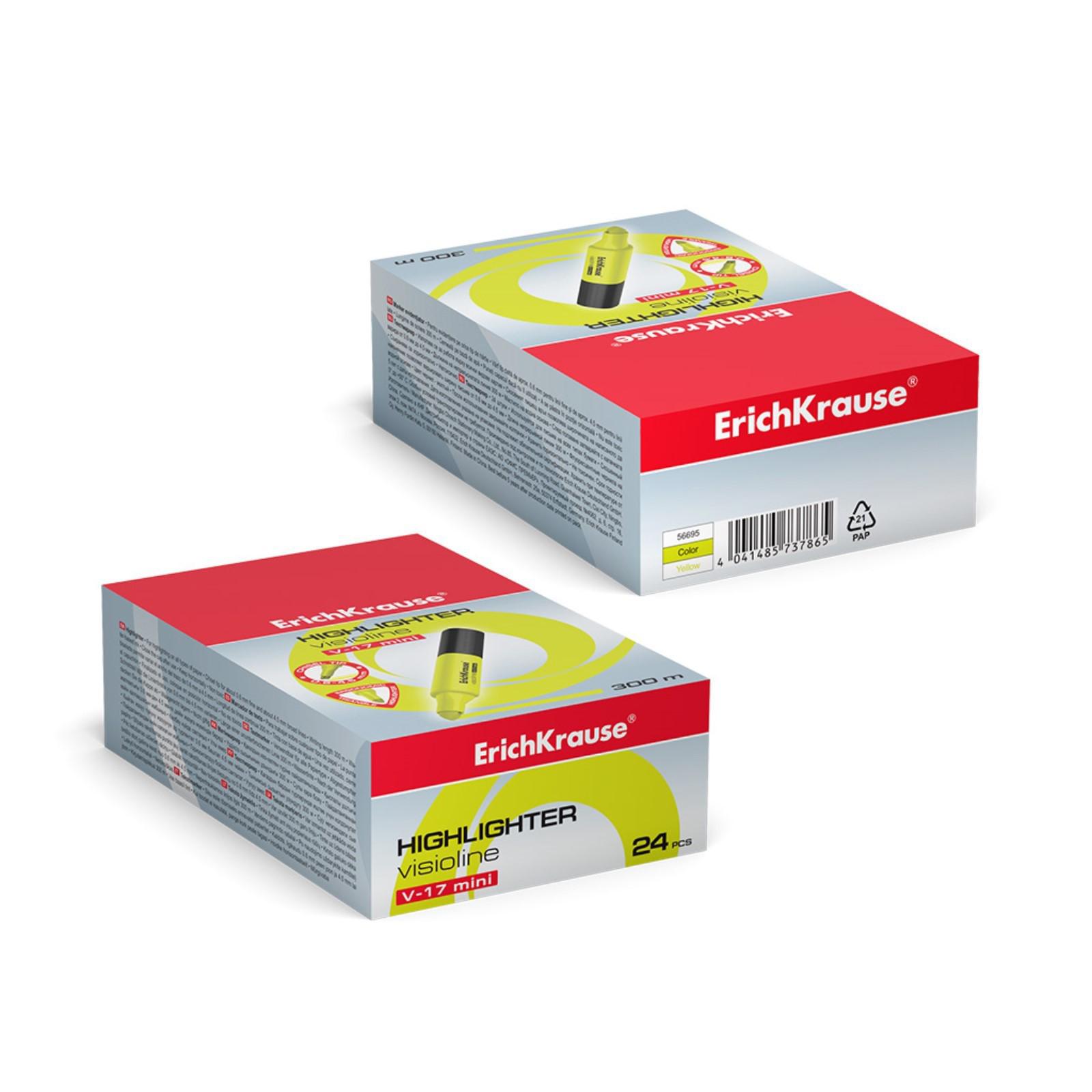 Маркер текстовыделитель ErichKrause Visioline V-17 Mini, 0.6-4.5 мм, чернила на водной основе, жёлтый