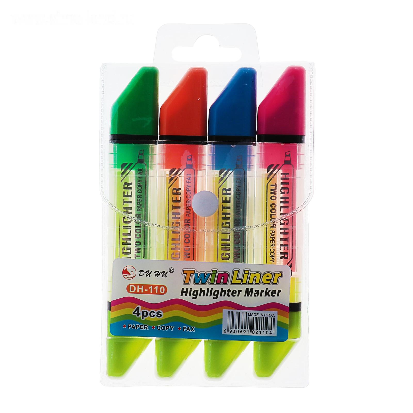 Набор маркеров-текстовыделителей, 4 штуки, наконечники скошенные, 5 мм, двухцветные