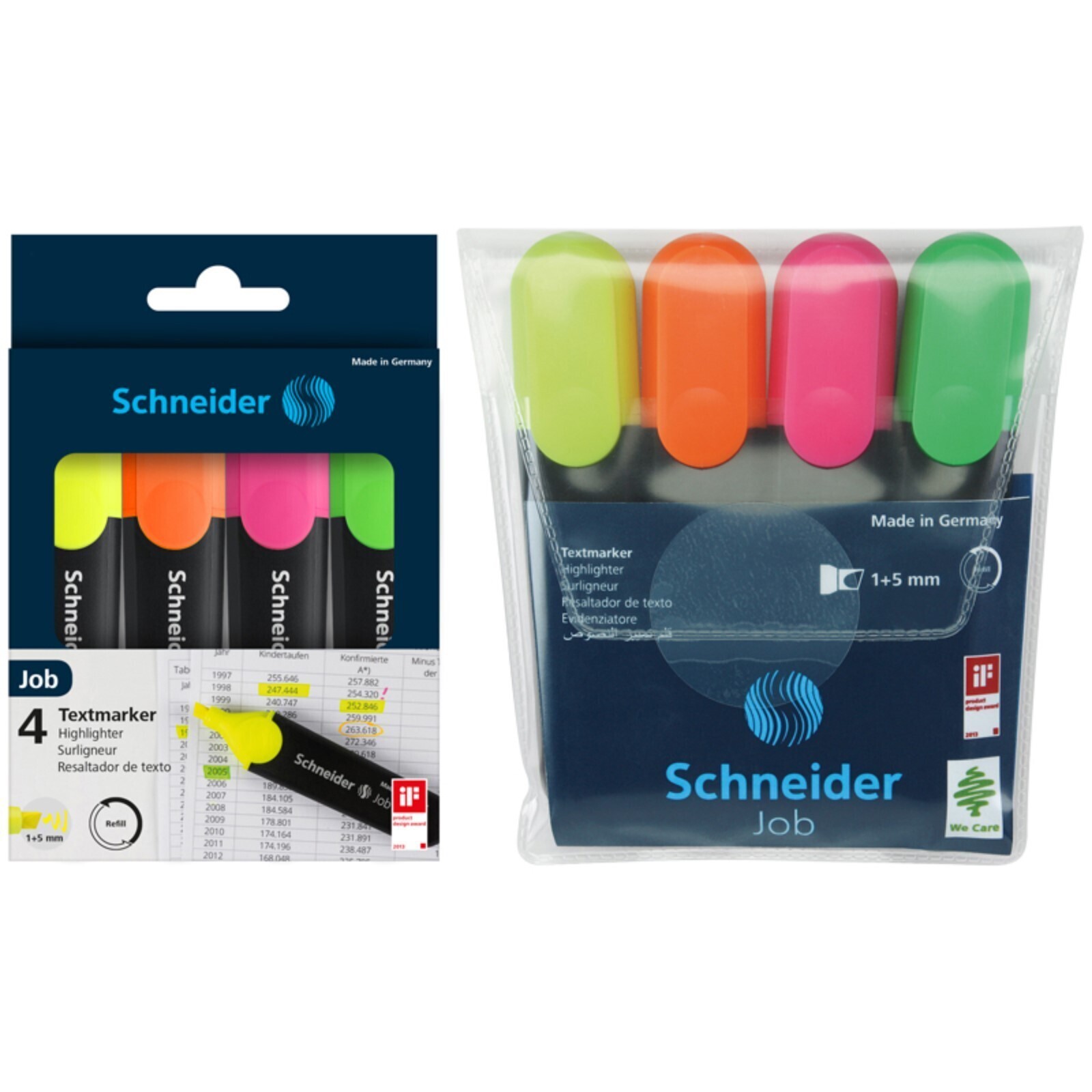 Набор маркеров-текстовыделителей 4 цвета, 1-5 мм, Schneider Job, прозрачный чехол