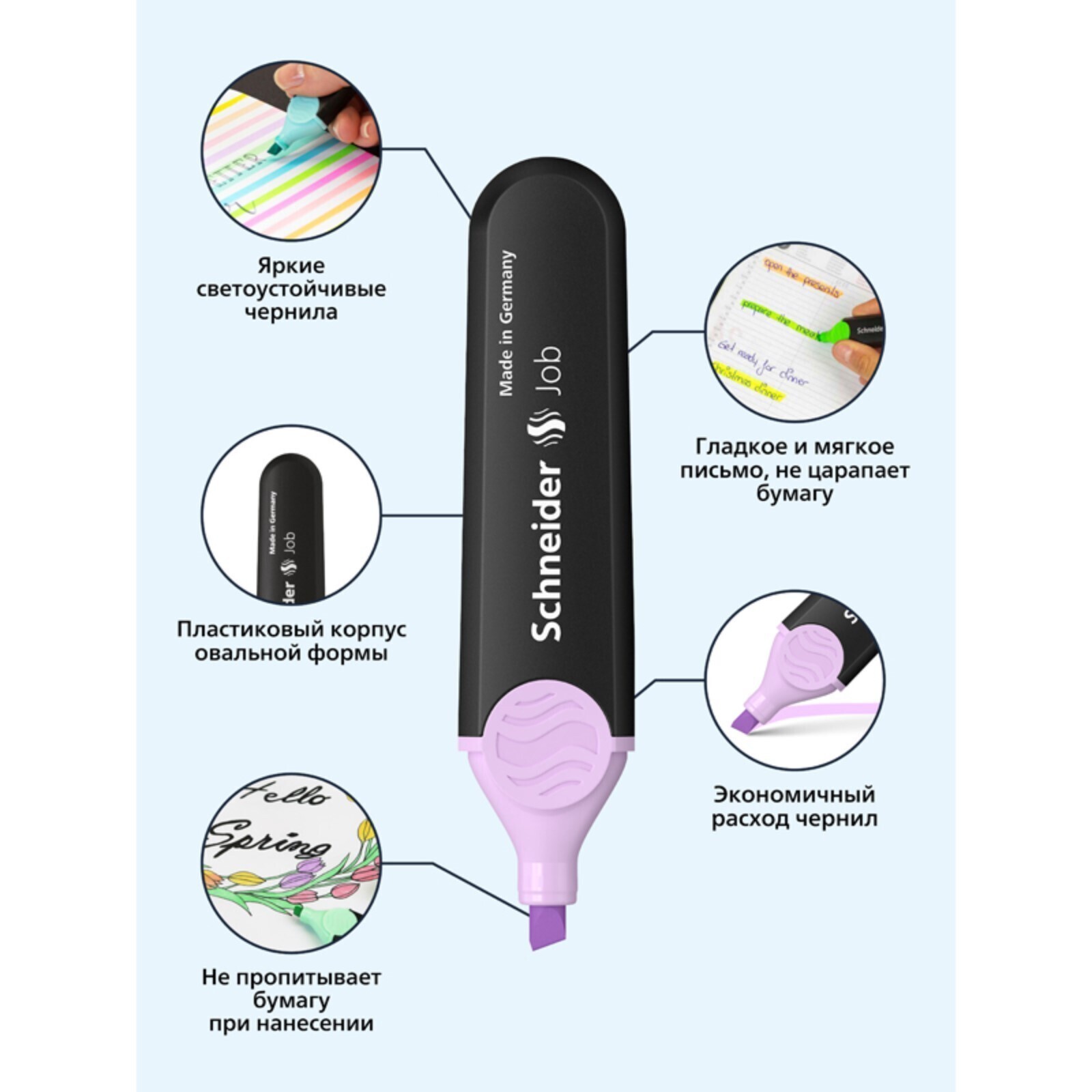 Универсальные текстовыделители Schneider Job имеют светостойкие чернила нежного пастельного цвета на водной основе.