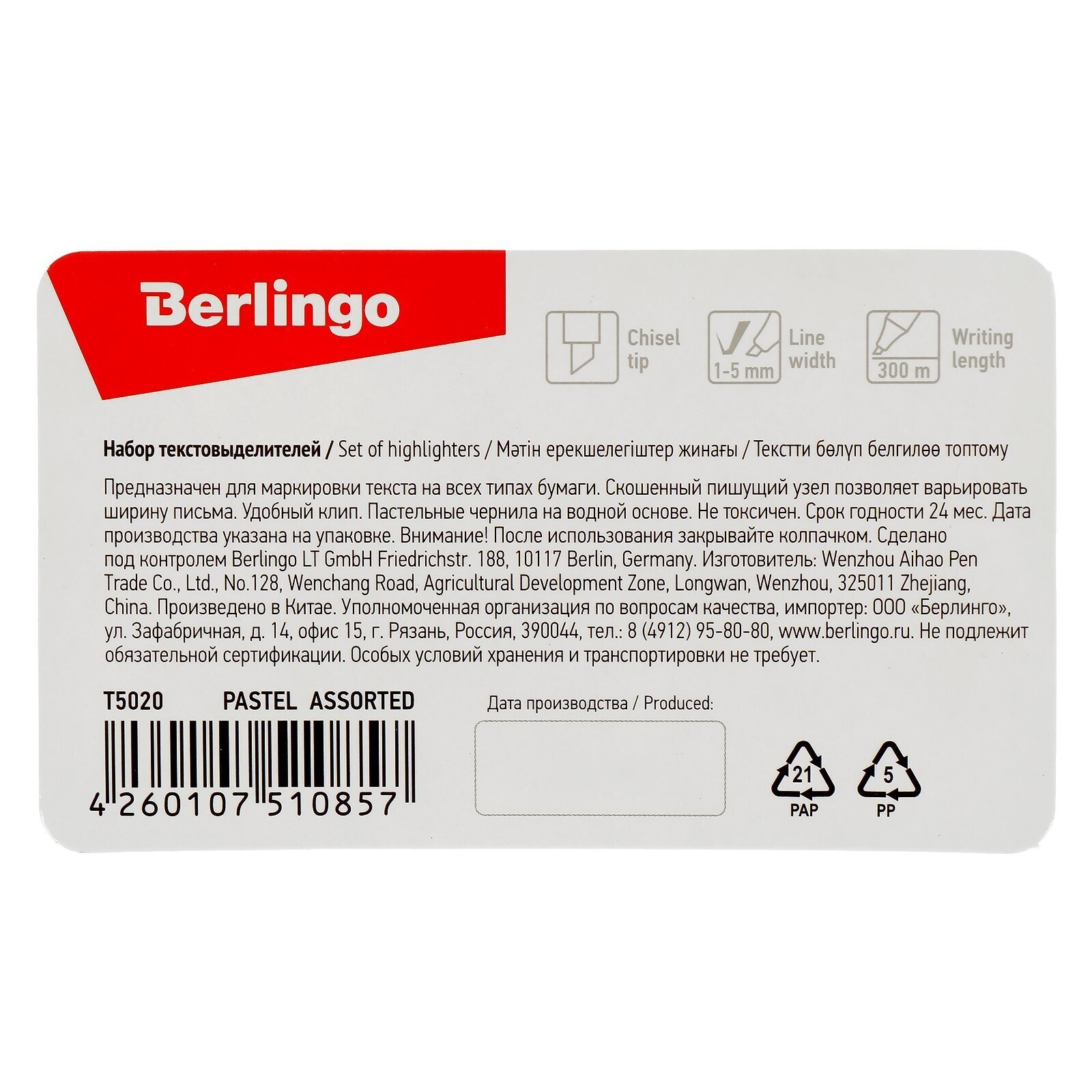 Набор маркеров текстовыделителей 4цв 5.0 Berlingo "HP200", пастельные цвета 284276