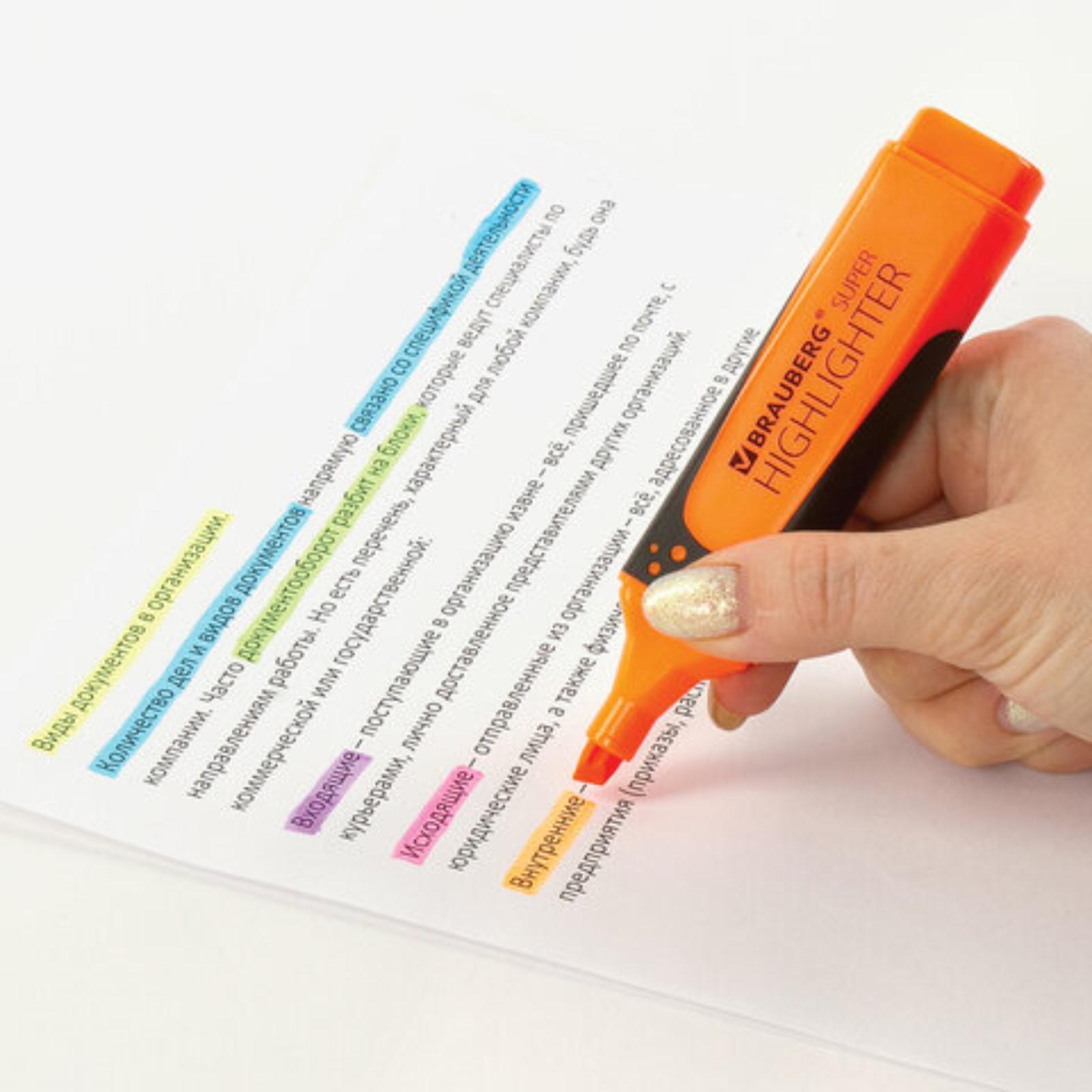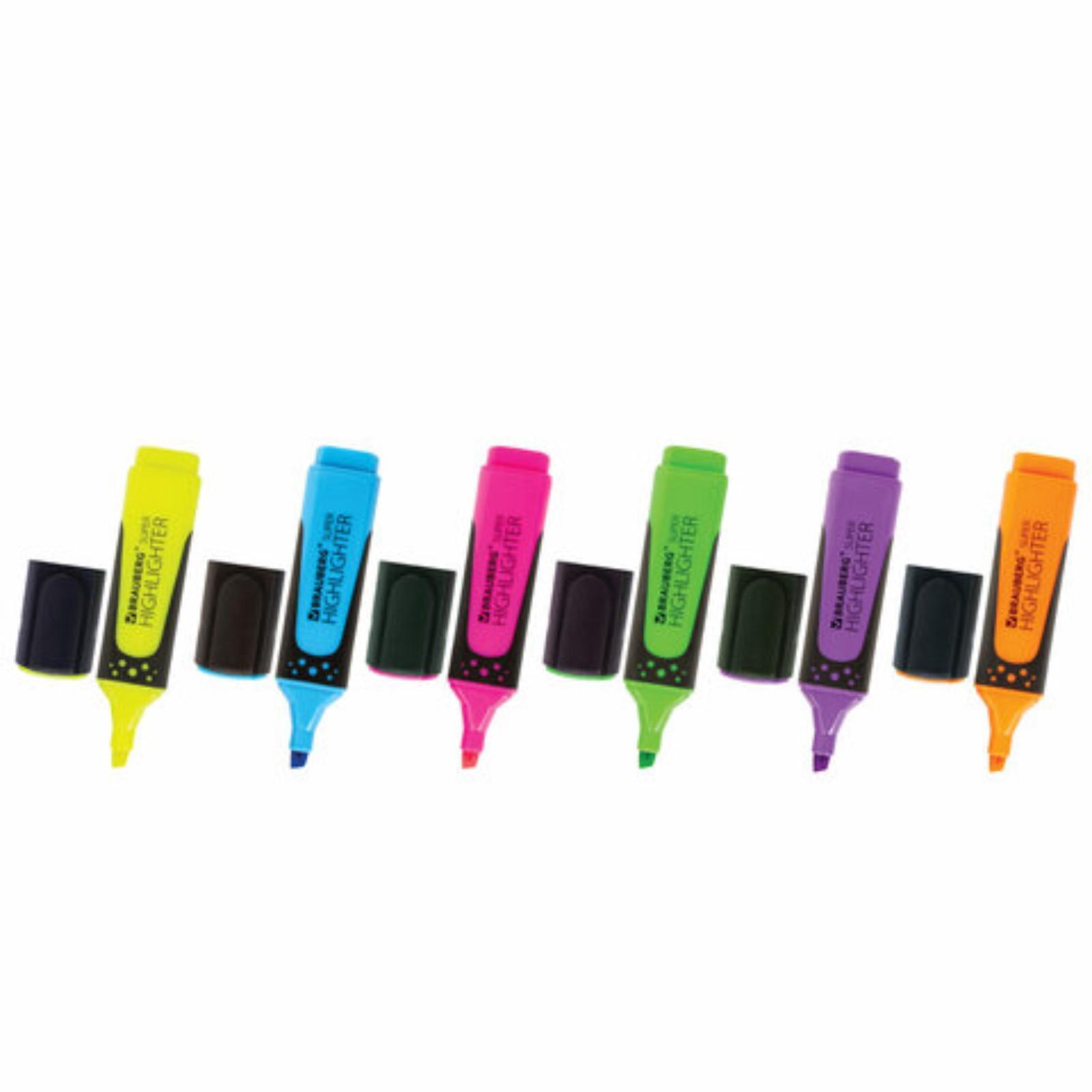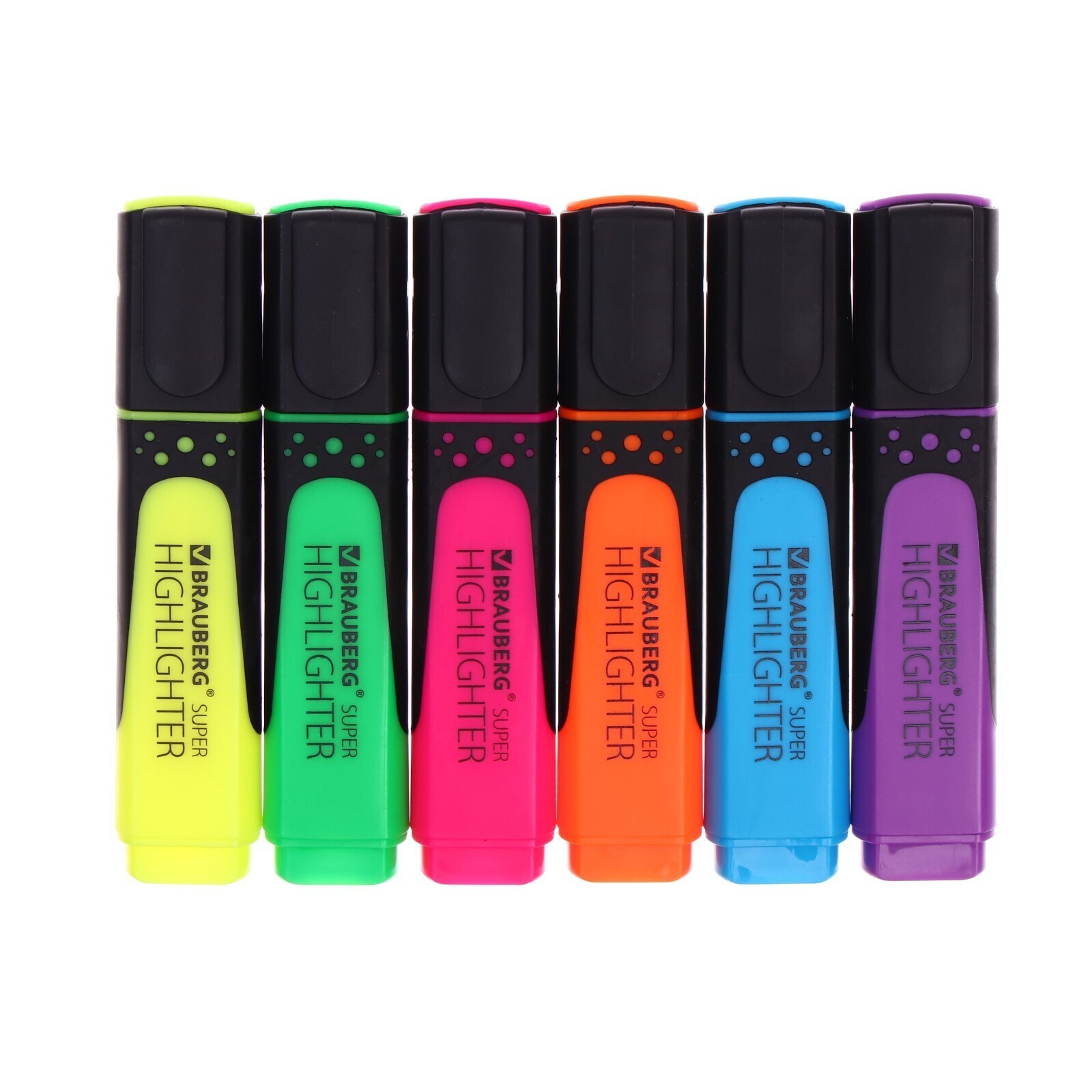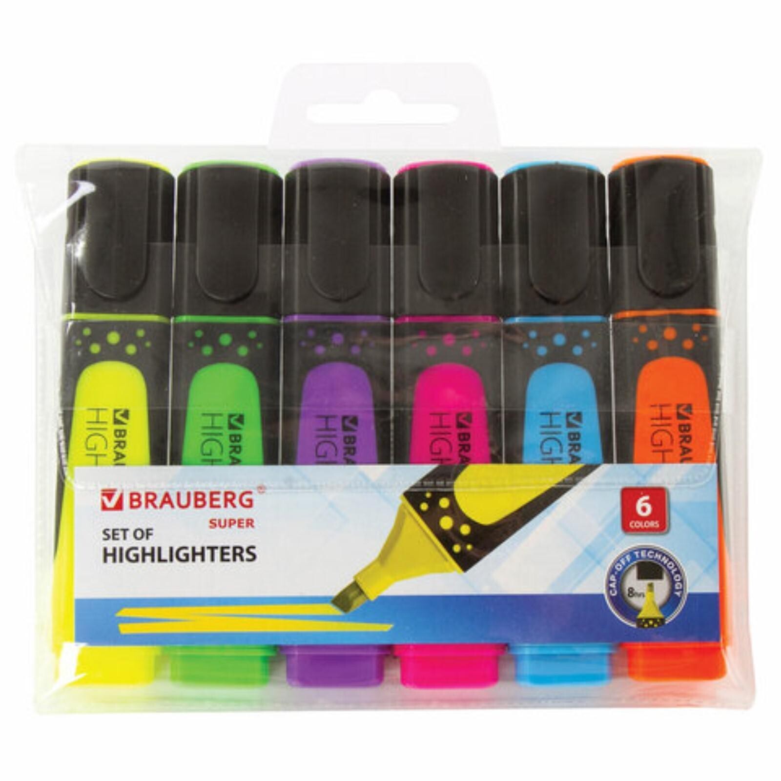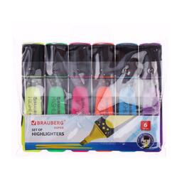 Набор маркеров текстовыделителей 6цв 1-5мм BRAUBERG "SUPER", прорезин корпус 151747