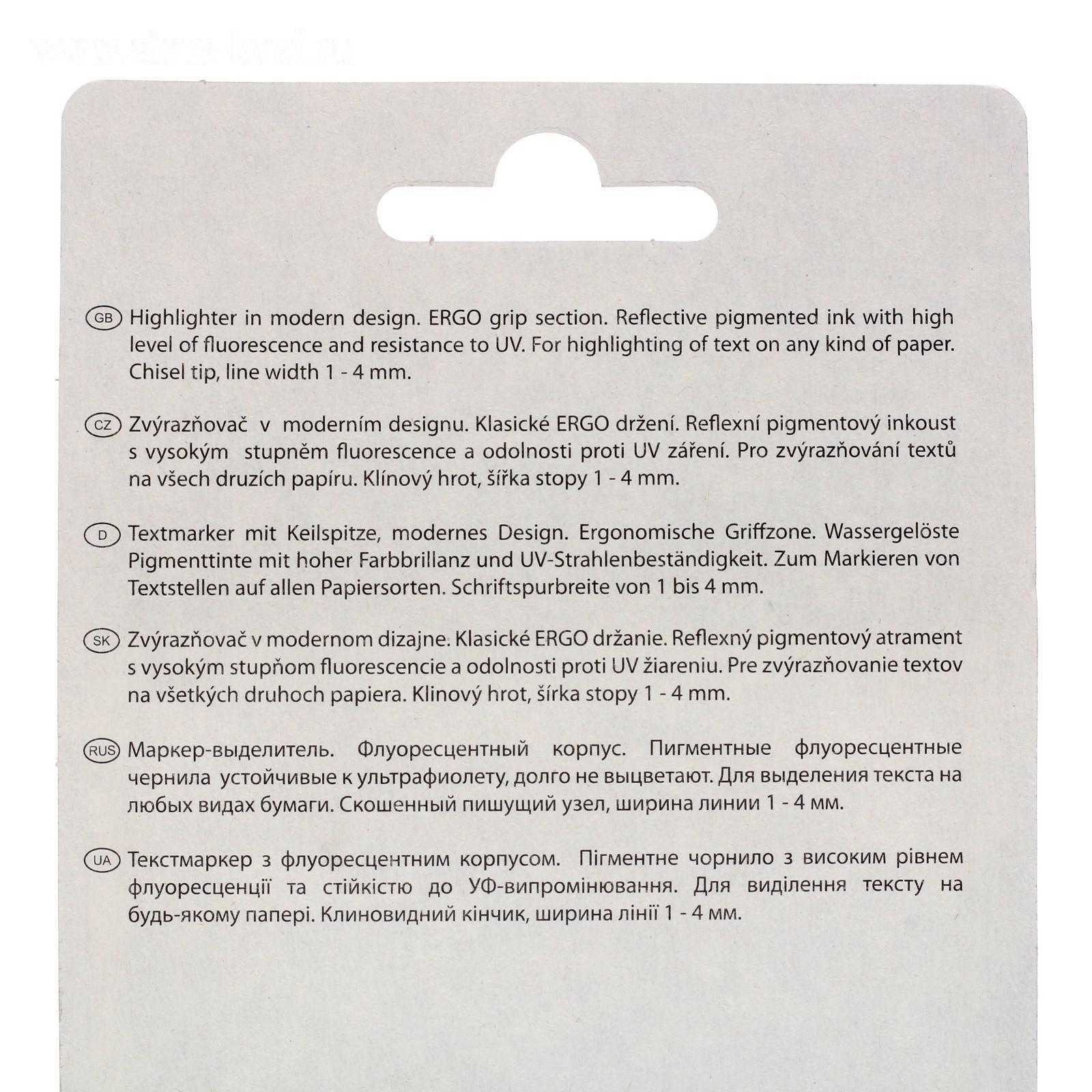 Маркеры-текстовыделители (4 цвета) прекрасно пишут на любых видах бумаги, в том числе факсовой и ксерокопиях, так как чернила не просачиваются сквозь бумагу.
