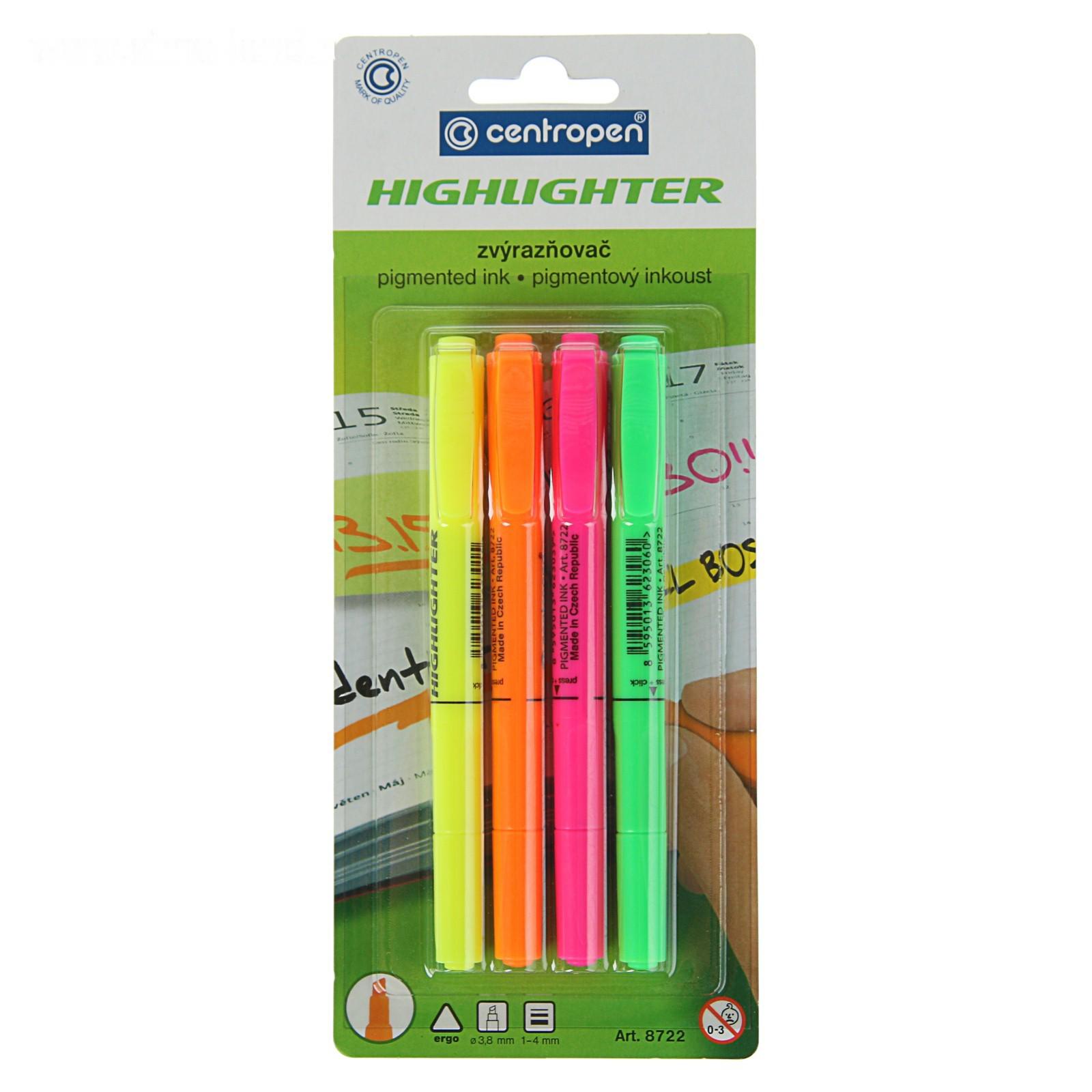 Набор маркеров текстовыделителей 4 цвета 4.0 Centropen 8722, блистер, европодвес