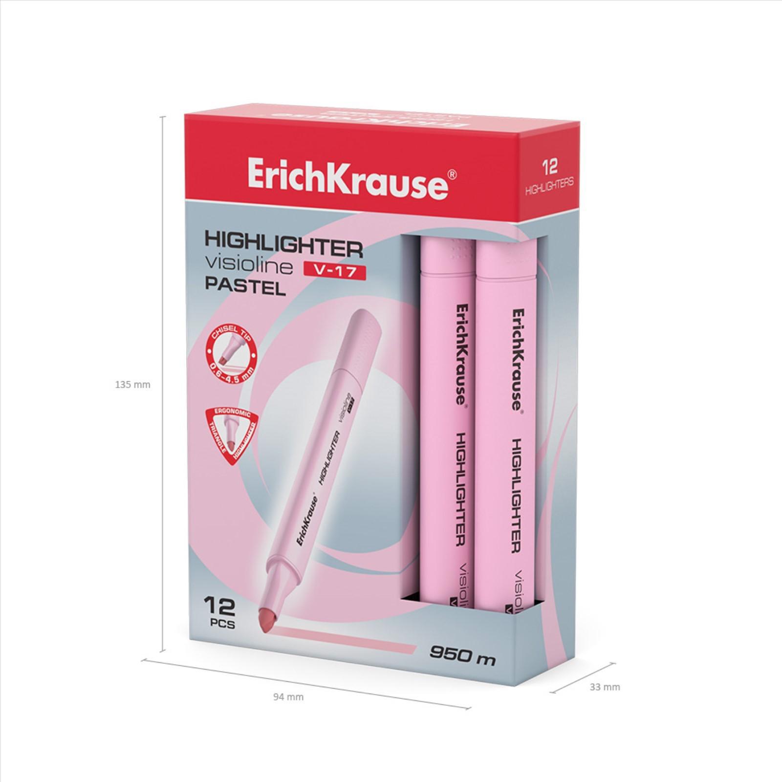Маркер текстовыделитель ErichKrause Visioline V-17 Pastel, 0.6-4.5 мм, чернила на водной основе, розовый