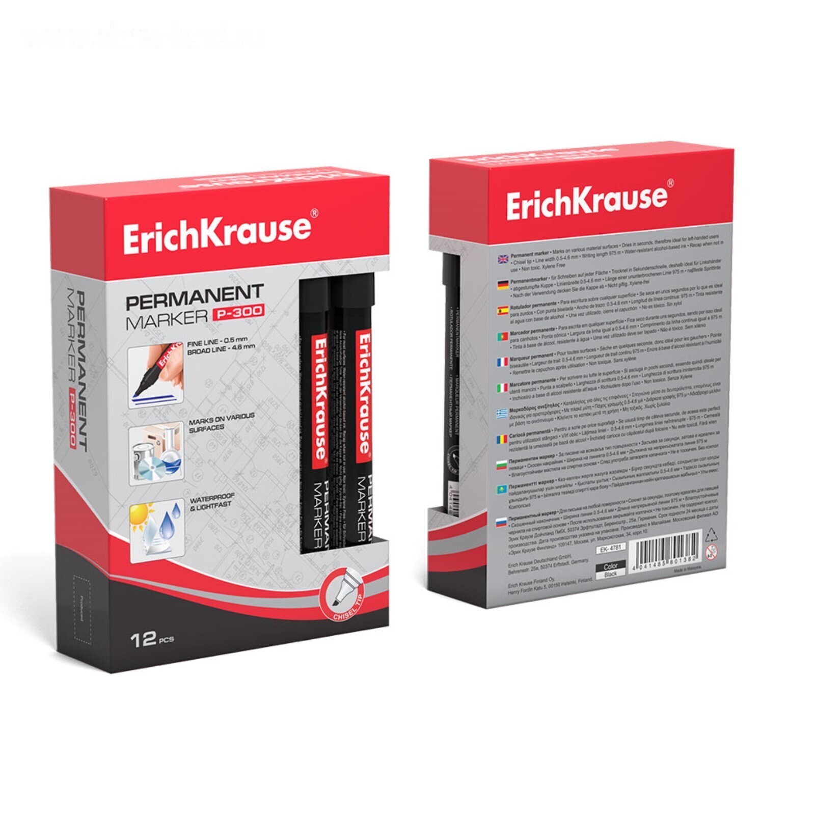Маркер перманентный 0.5-4.6 мм, ErichKrause P-300, наконечник скошенный, чёрный