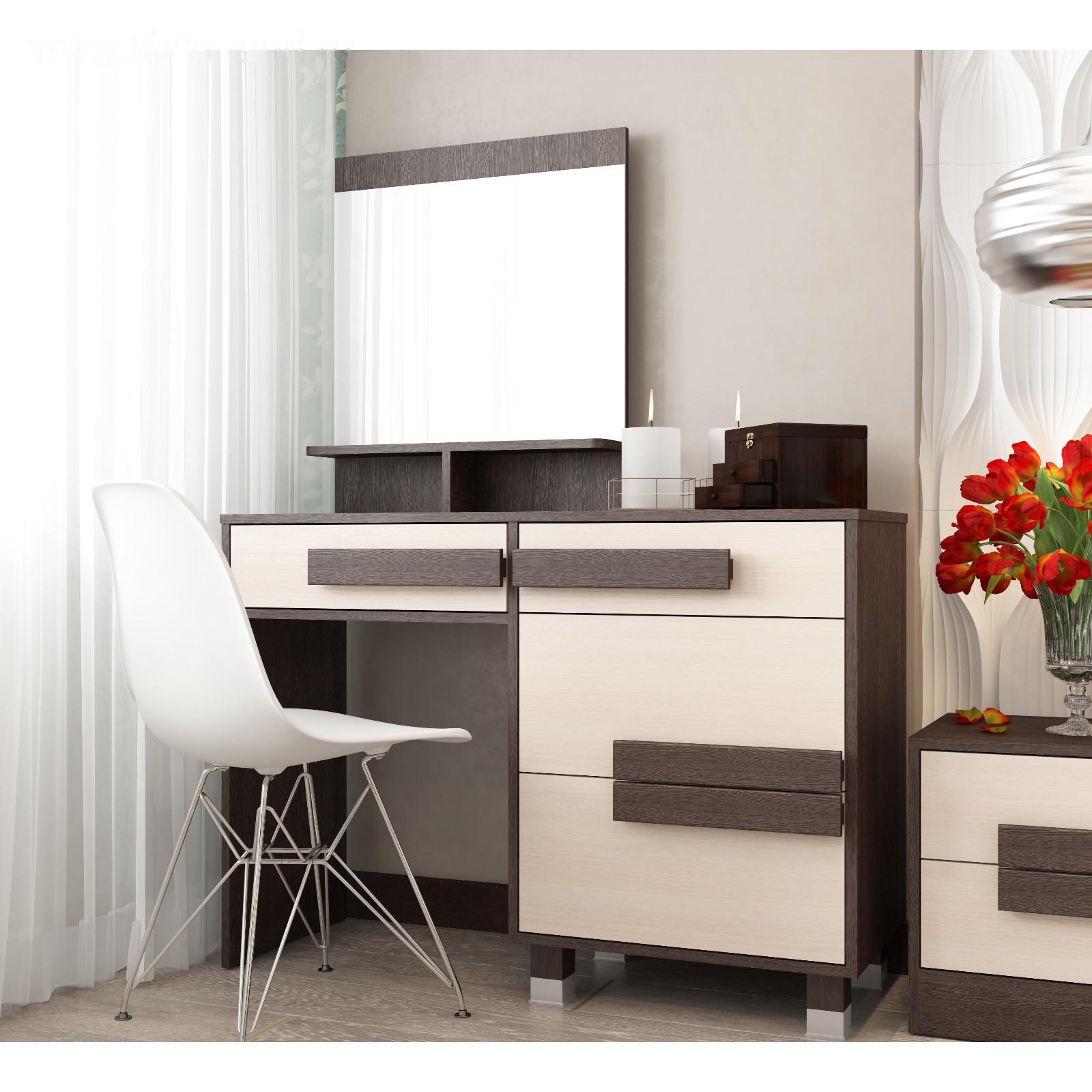 Столик туалетный с зеркалом СТ-5 1480х1100х400 Дуб выбеленный/Венге