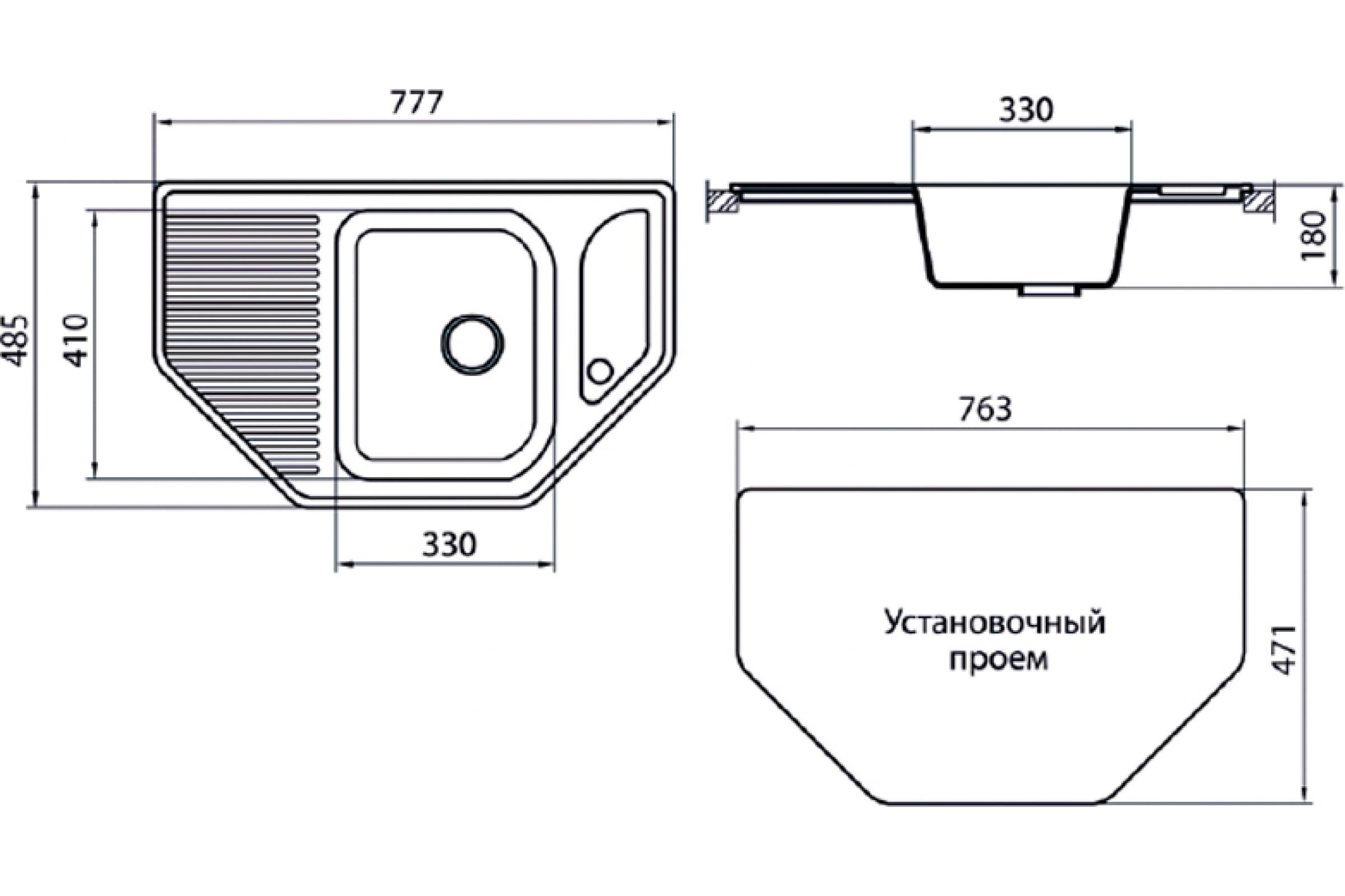 - Ширина мойки (от передней до задней стенки), см 48.5