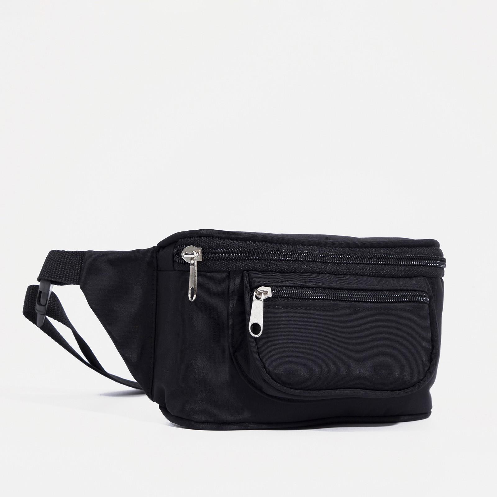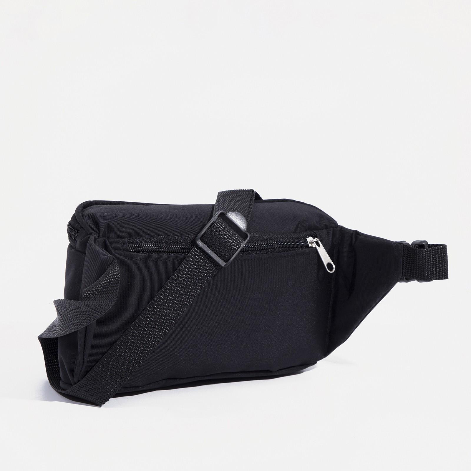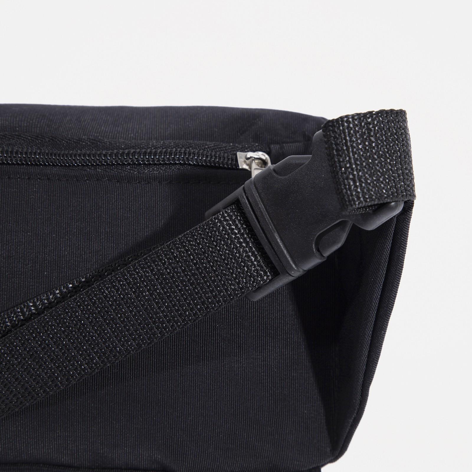 Поясная сумка на молнии, наружный карман, регулируемый ремень, цвет чёрный