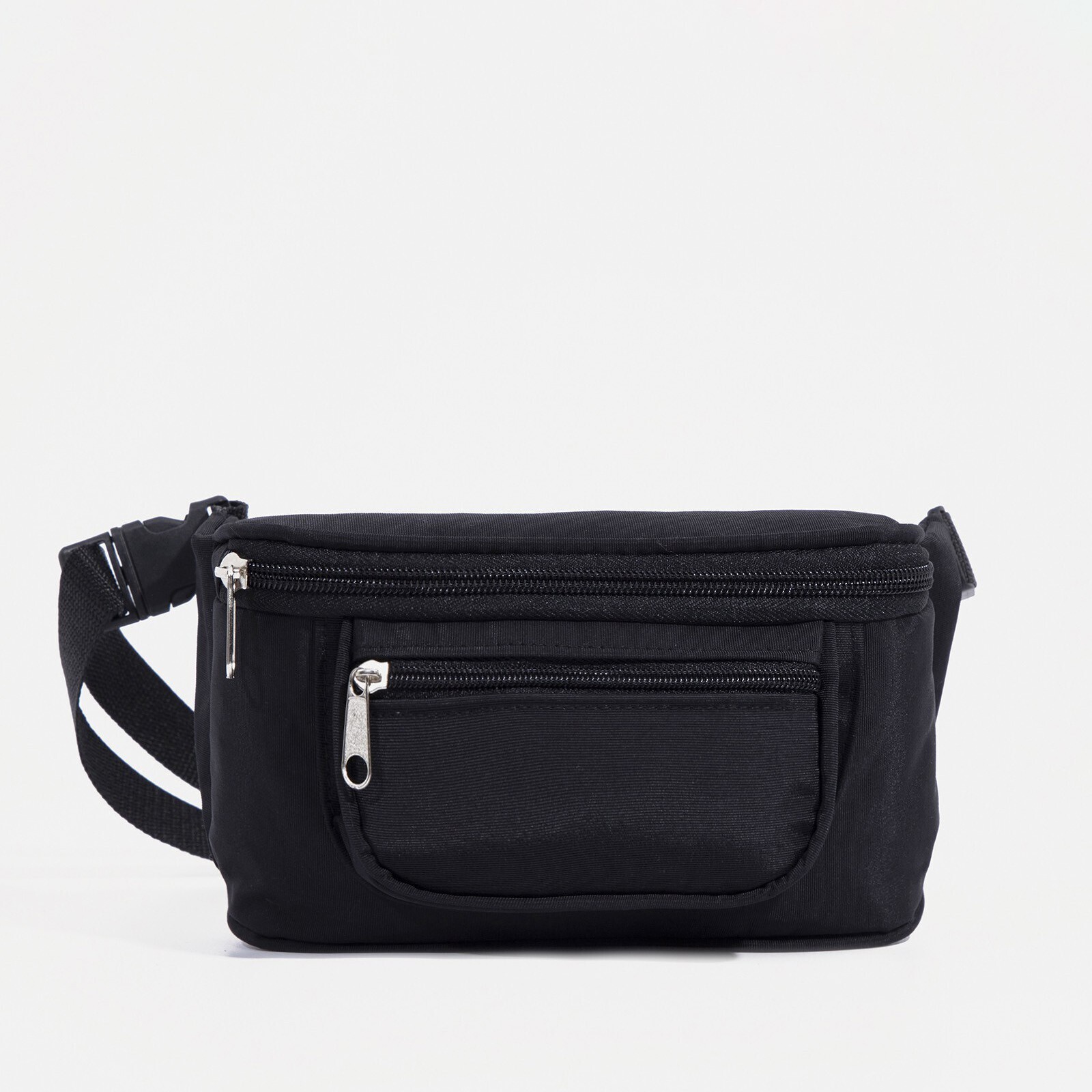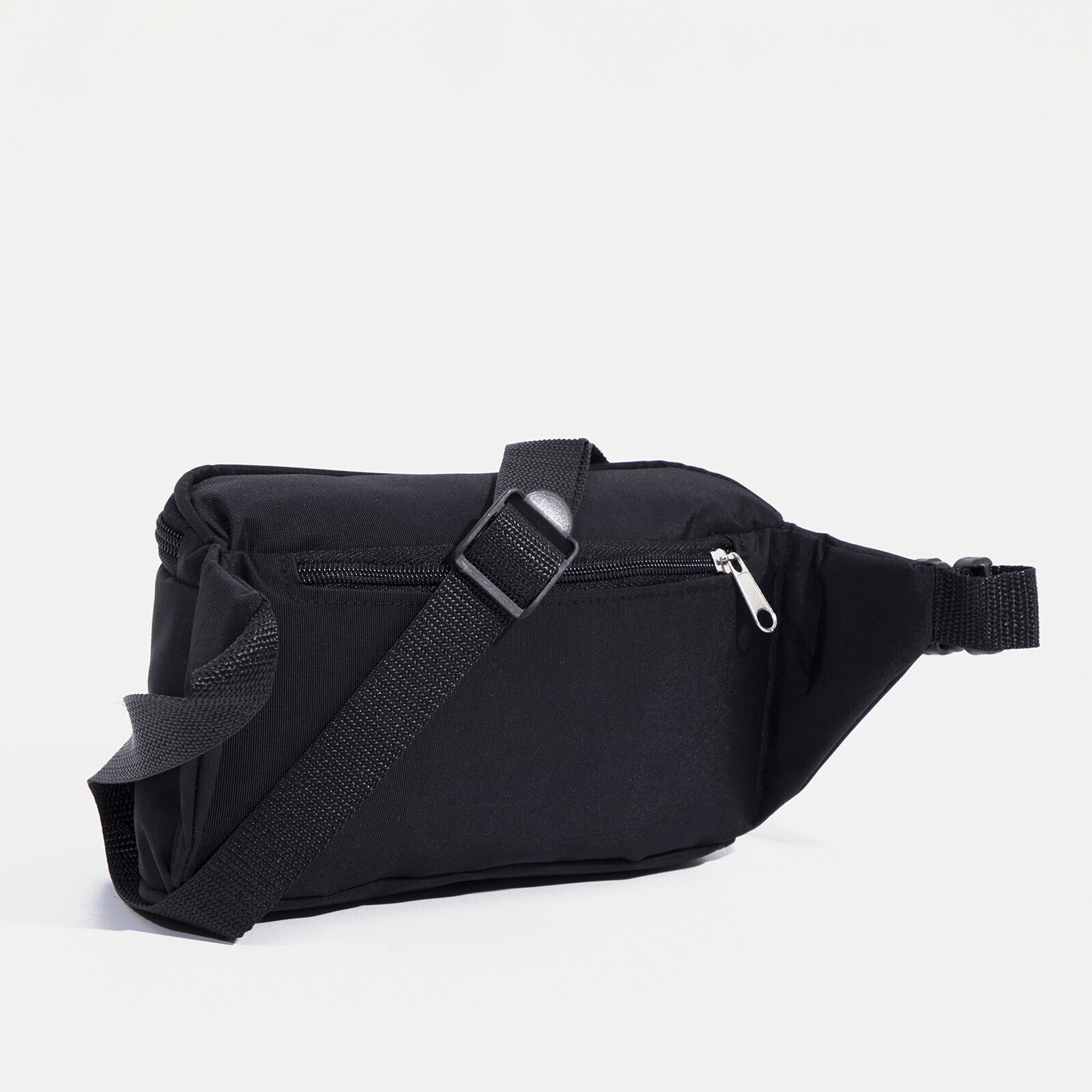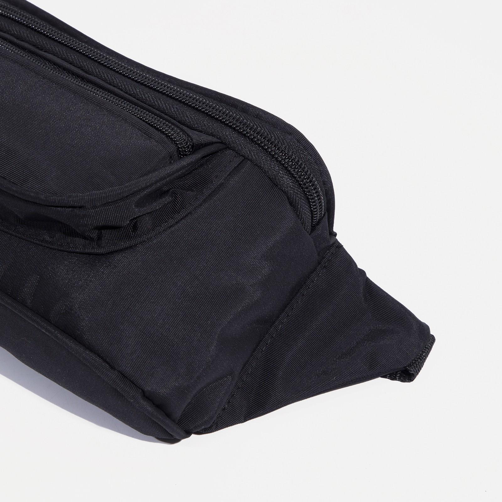 Поясная сумка на молнии, наружный карман, регулируемый ремень, цвет чёрный