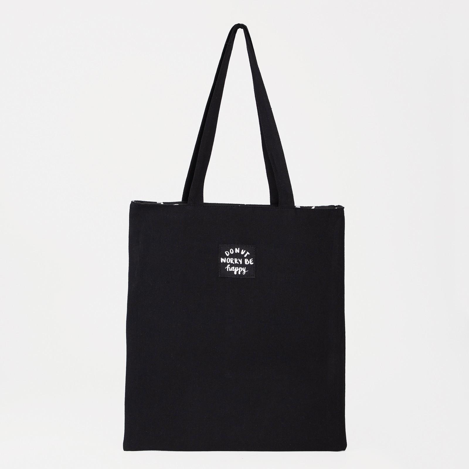 Сумка-шопер двусторонняя, без застёжки, наружный карман, цвет чёрный