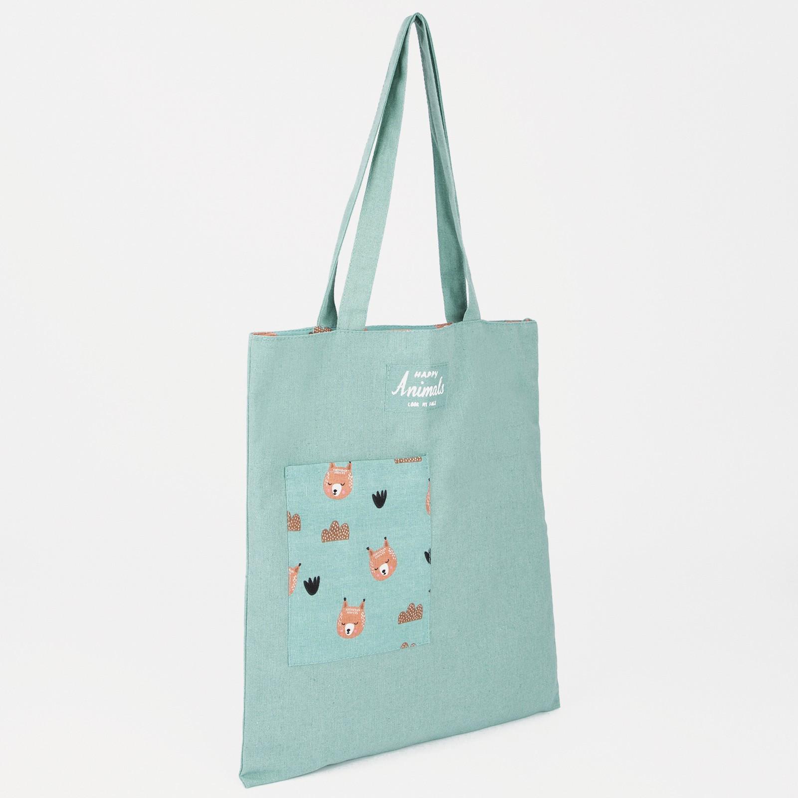 Сумка-шопер двусторонняя, без застёжки, наружный карман, цвет зелёный