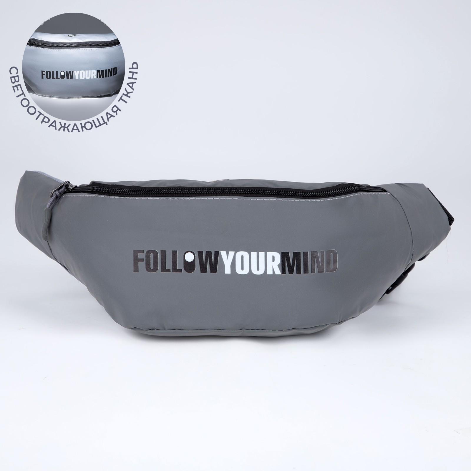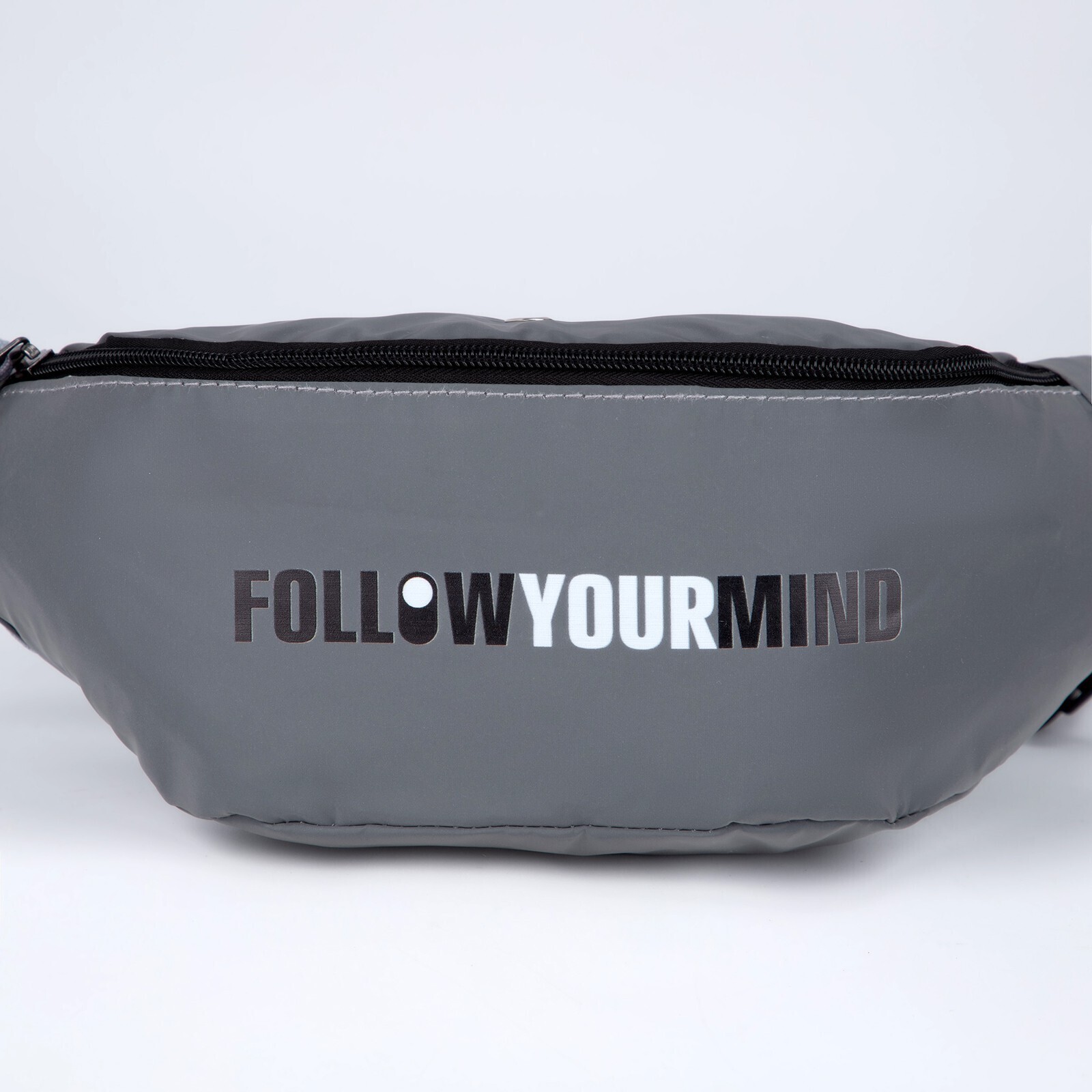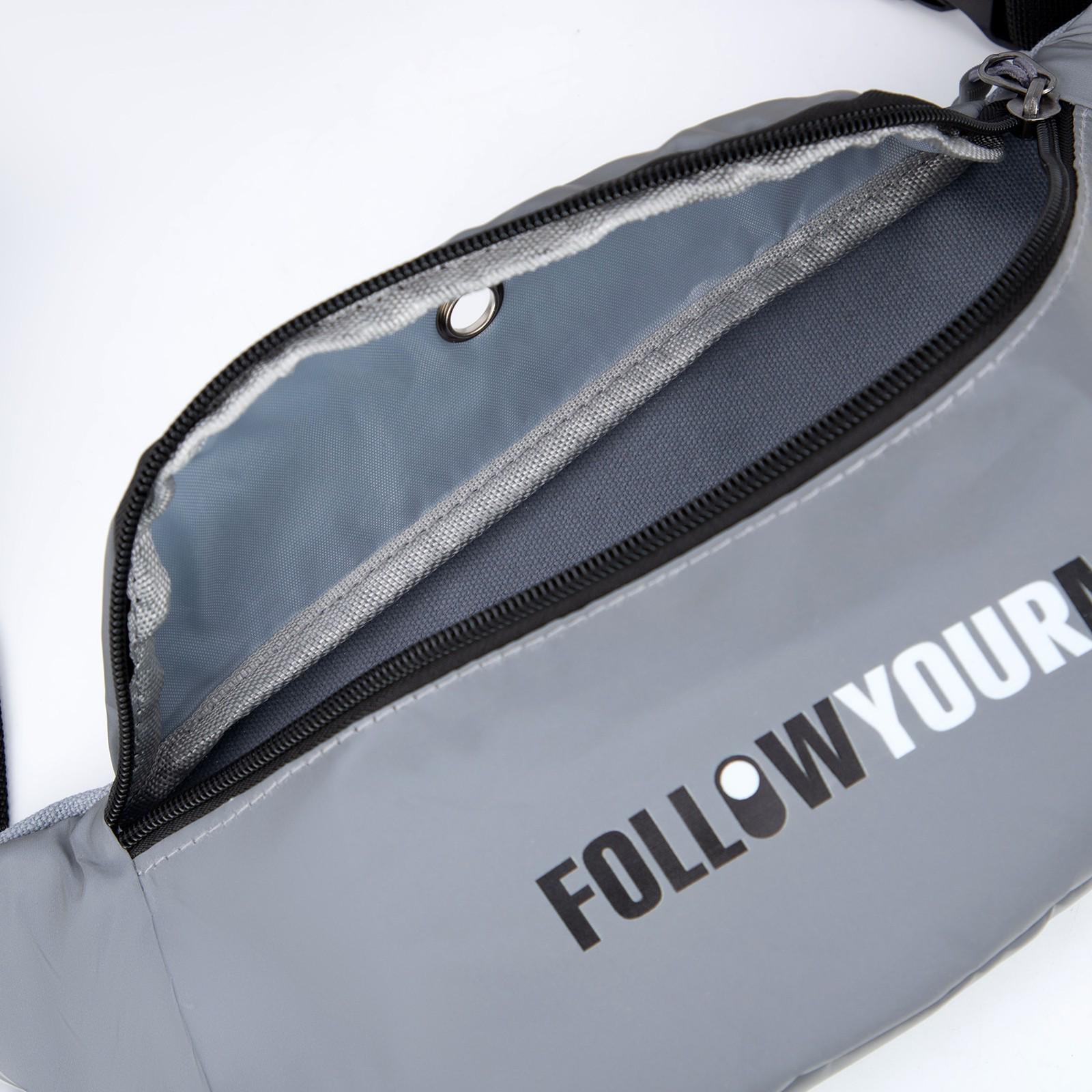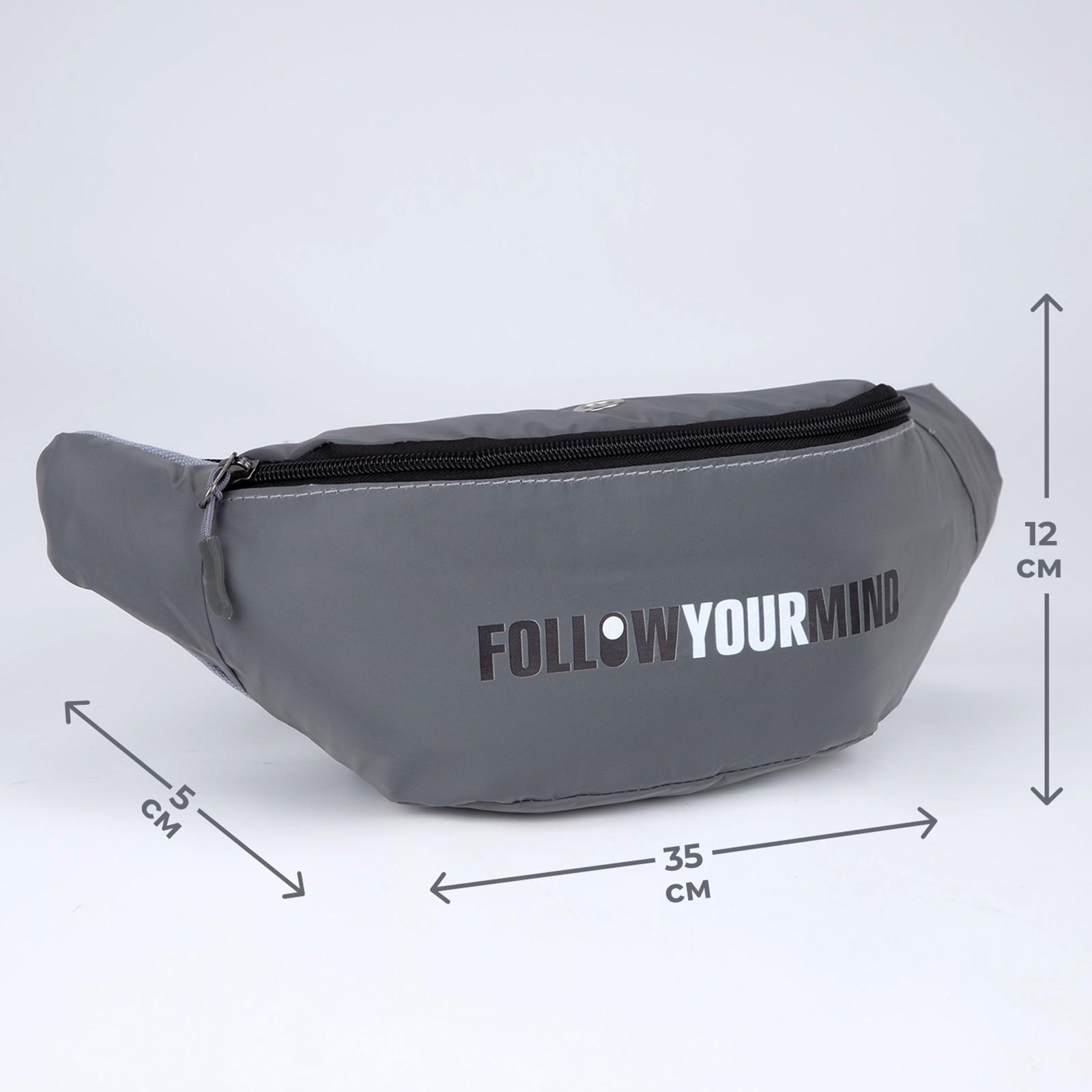 Сумка поясная светоотражающая FOLLOW YOUR MIND 35х12х5 см, цвет серый