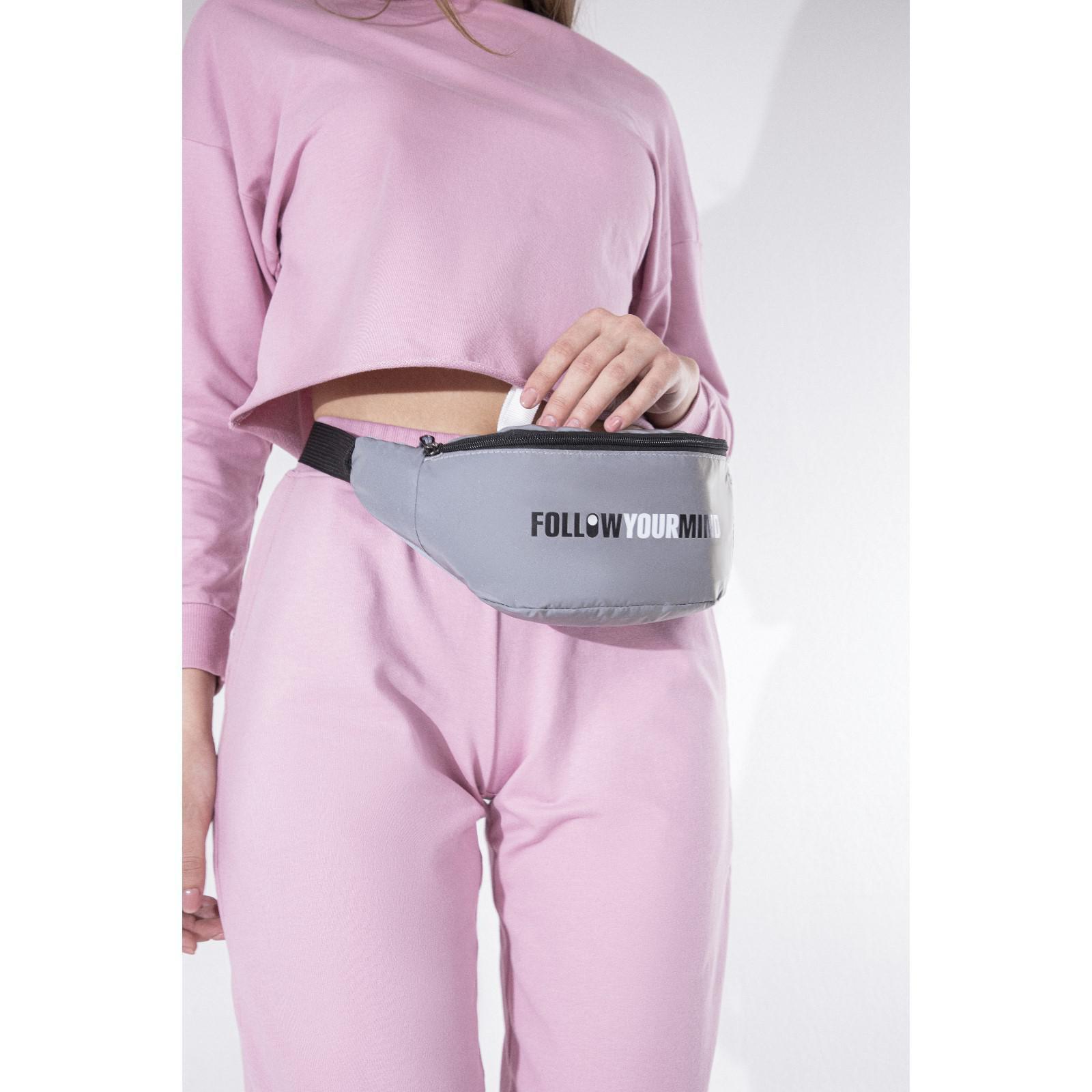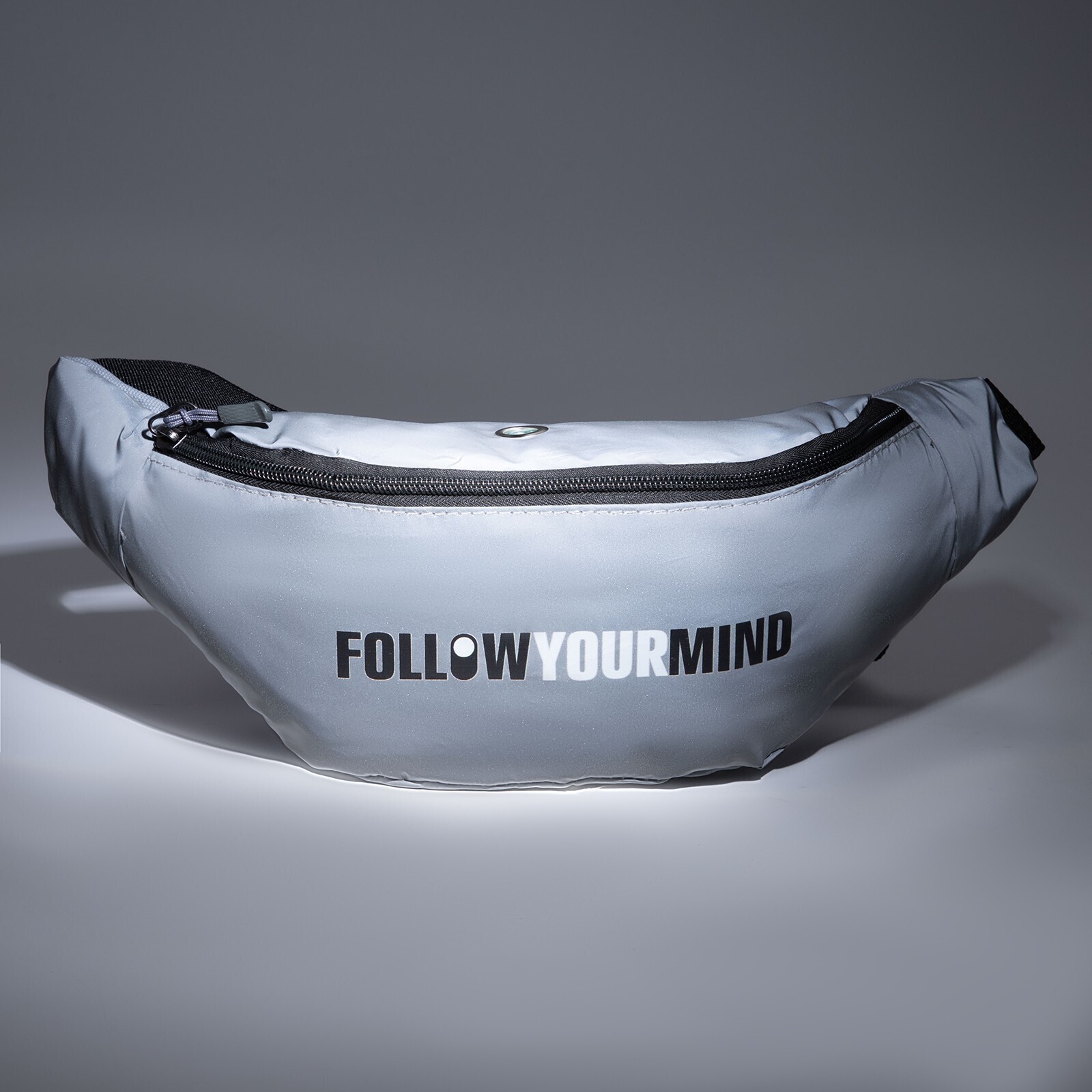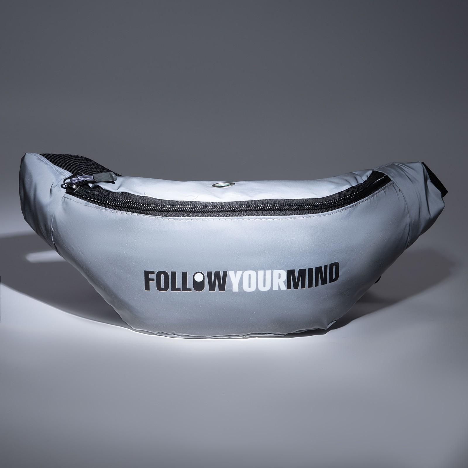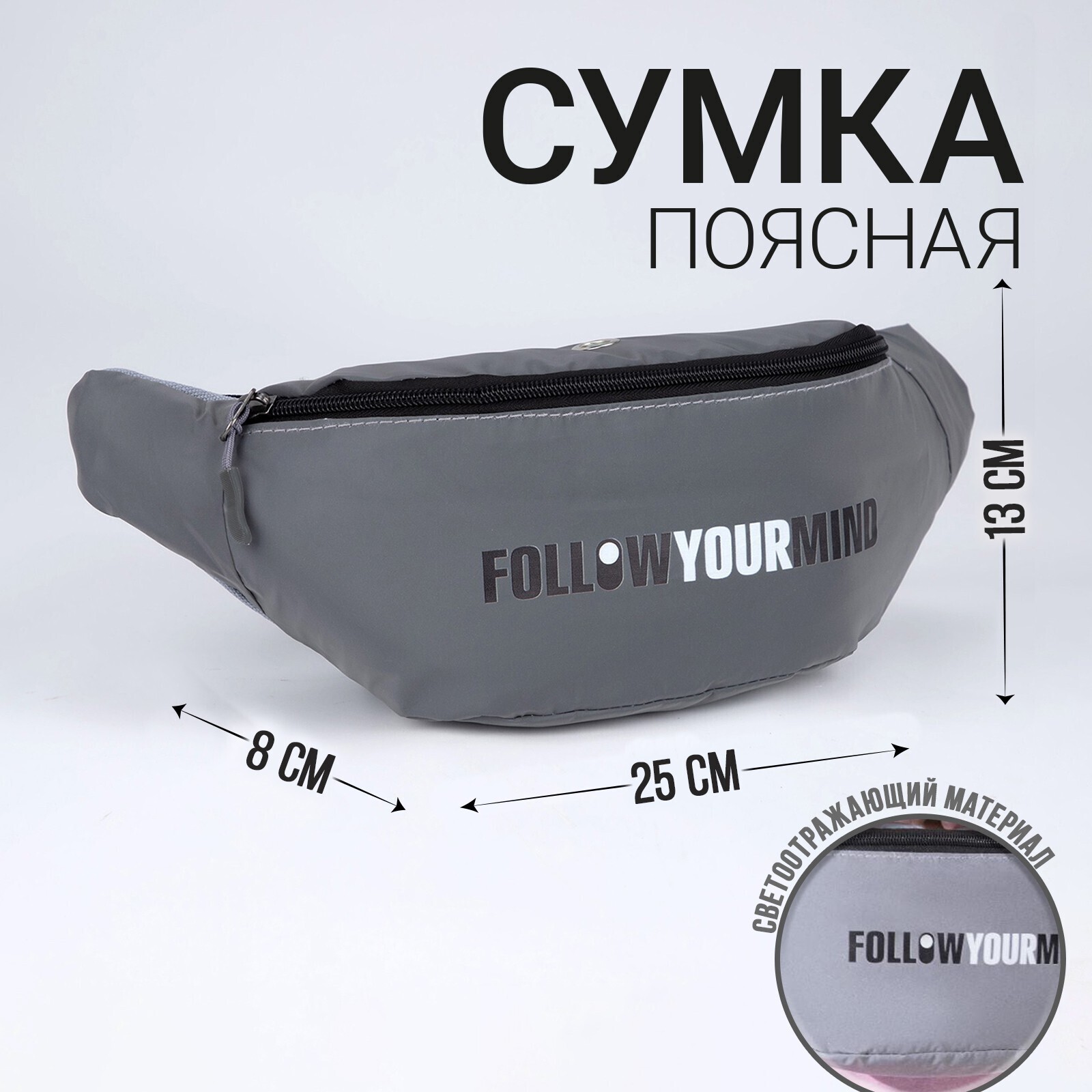 Сумка поясная светоотражающая FOLLOW YOUR MIND 35х12х5 см, цвет серый