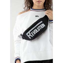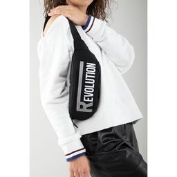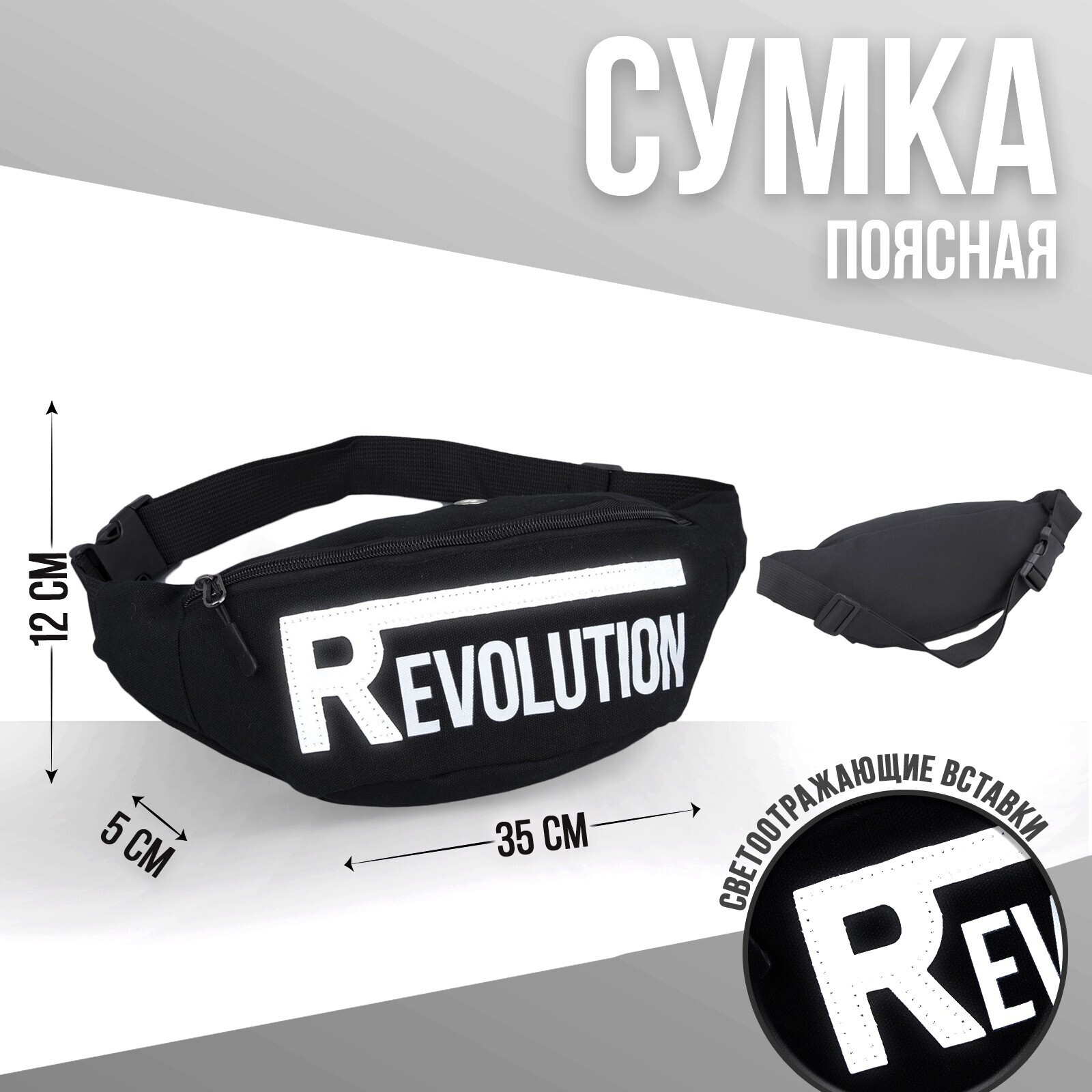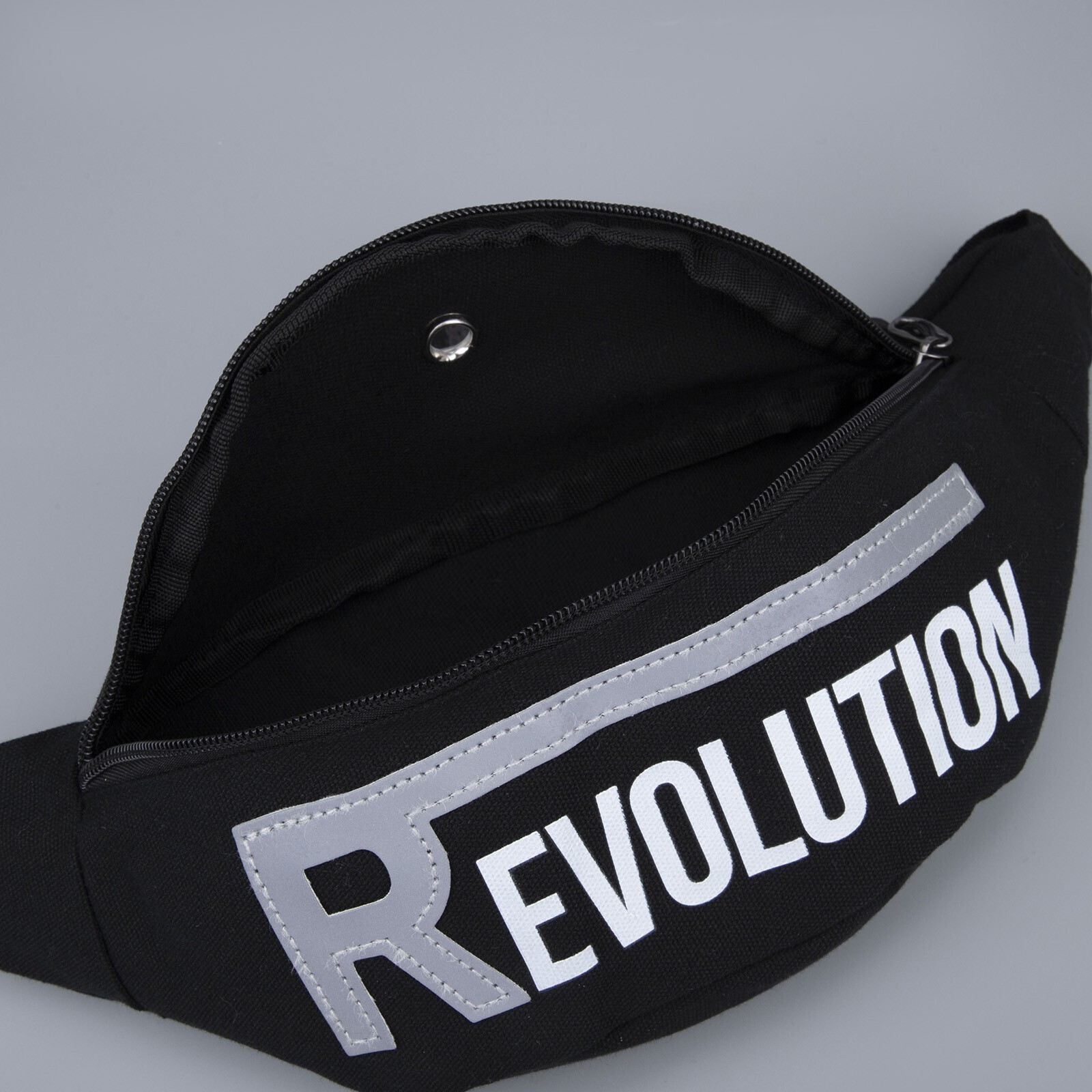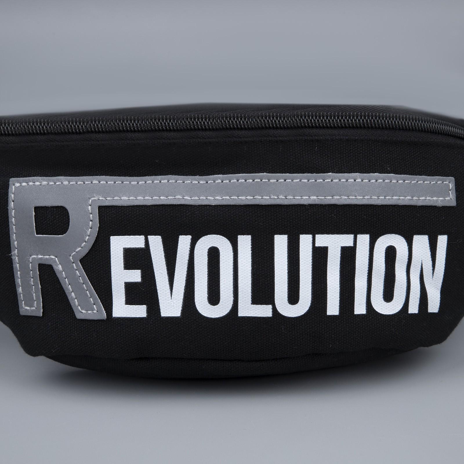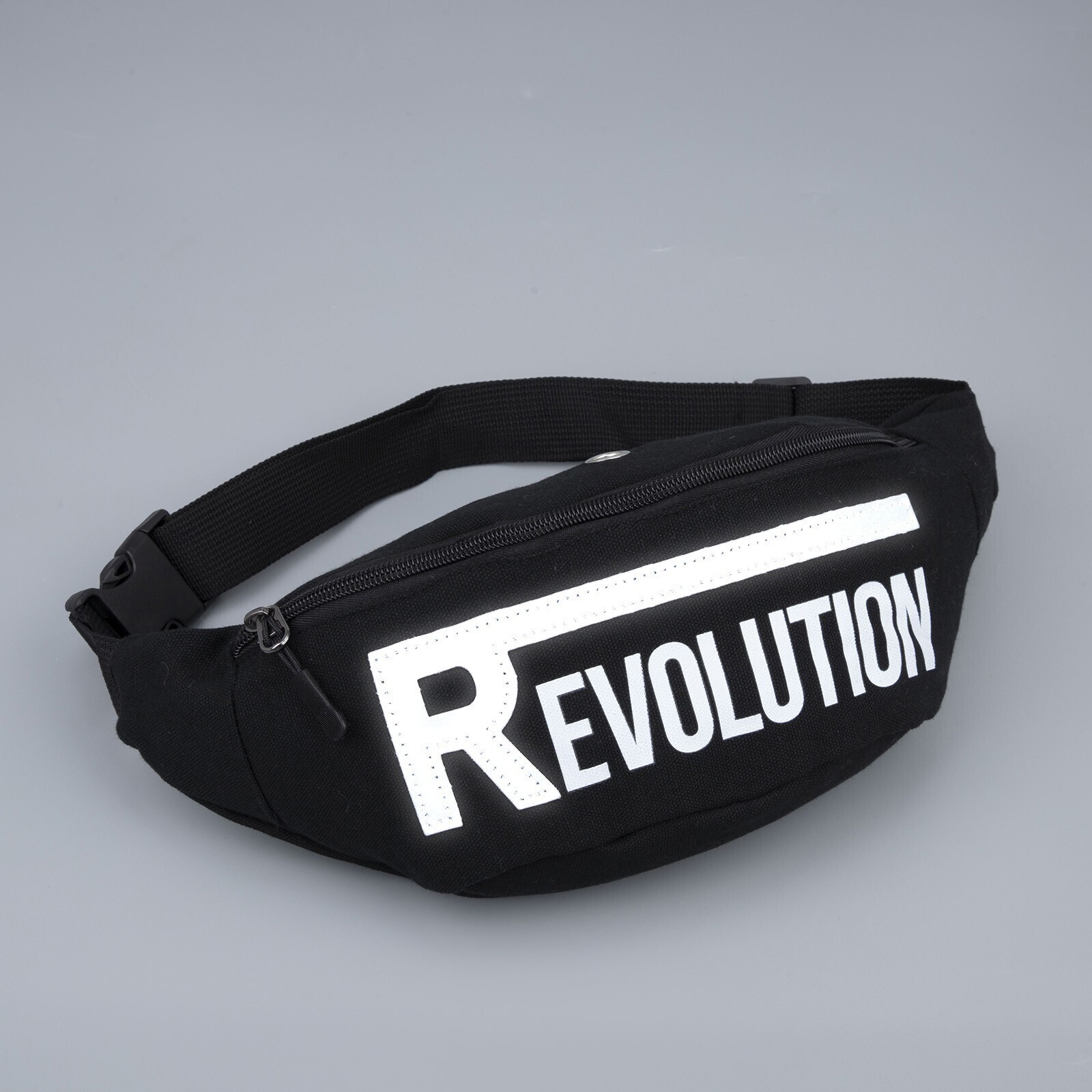 Сумка поясная, текстильная, светоотр. нашивки, отд на молнии, черная, REVOLUTION, 35 х 12 х 5 см
