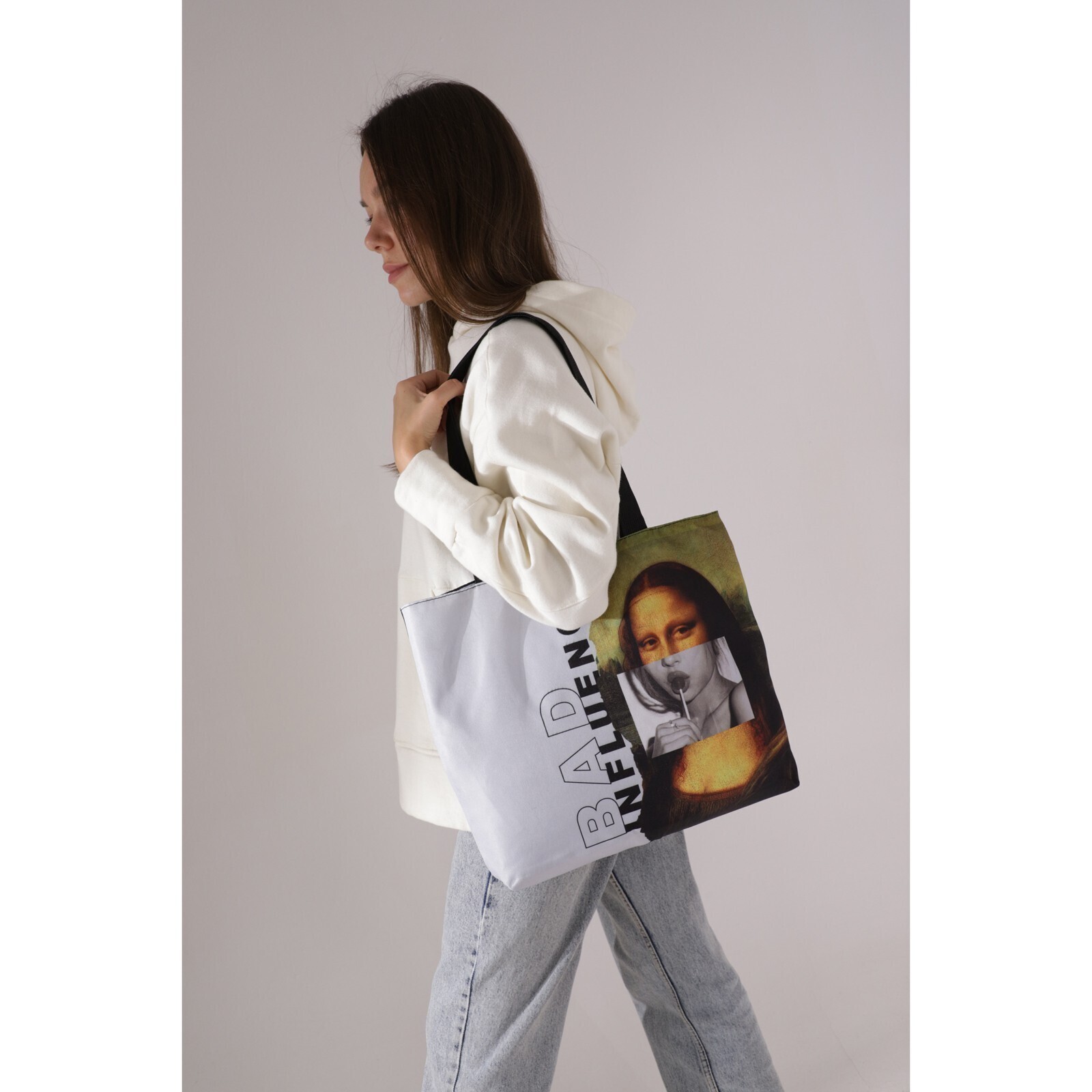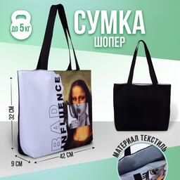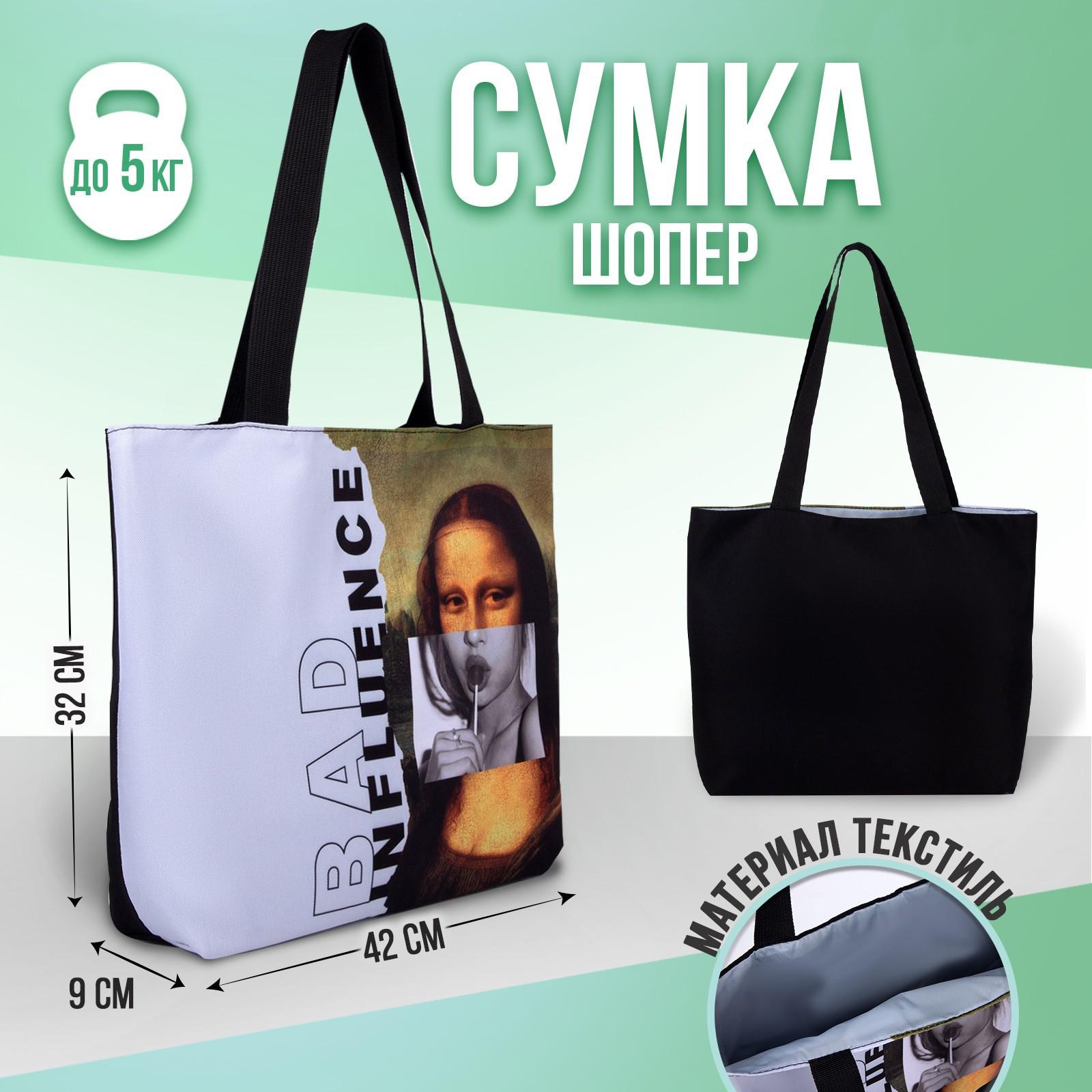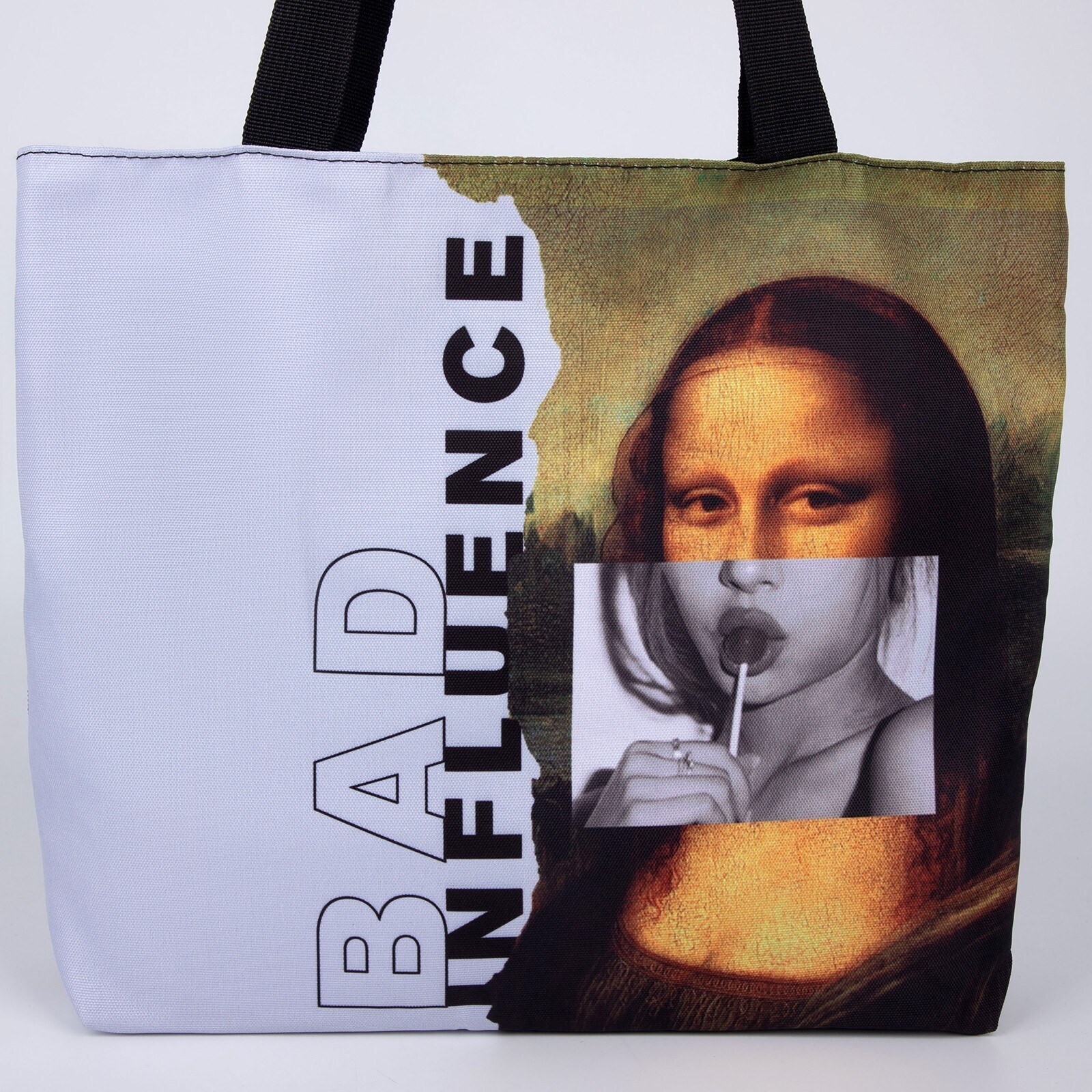 Сумка-шопер Bad influence без молнии с подкладкой, цвет белый/чёрный