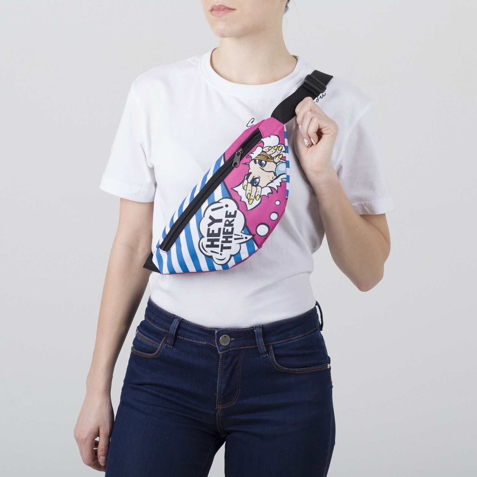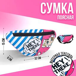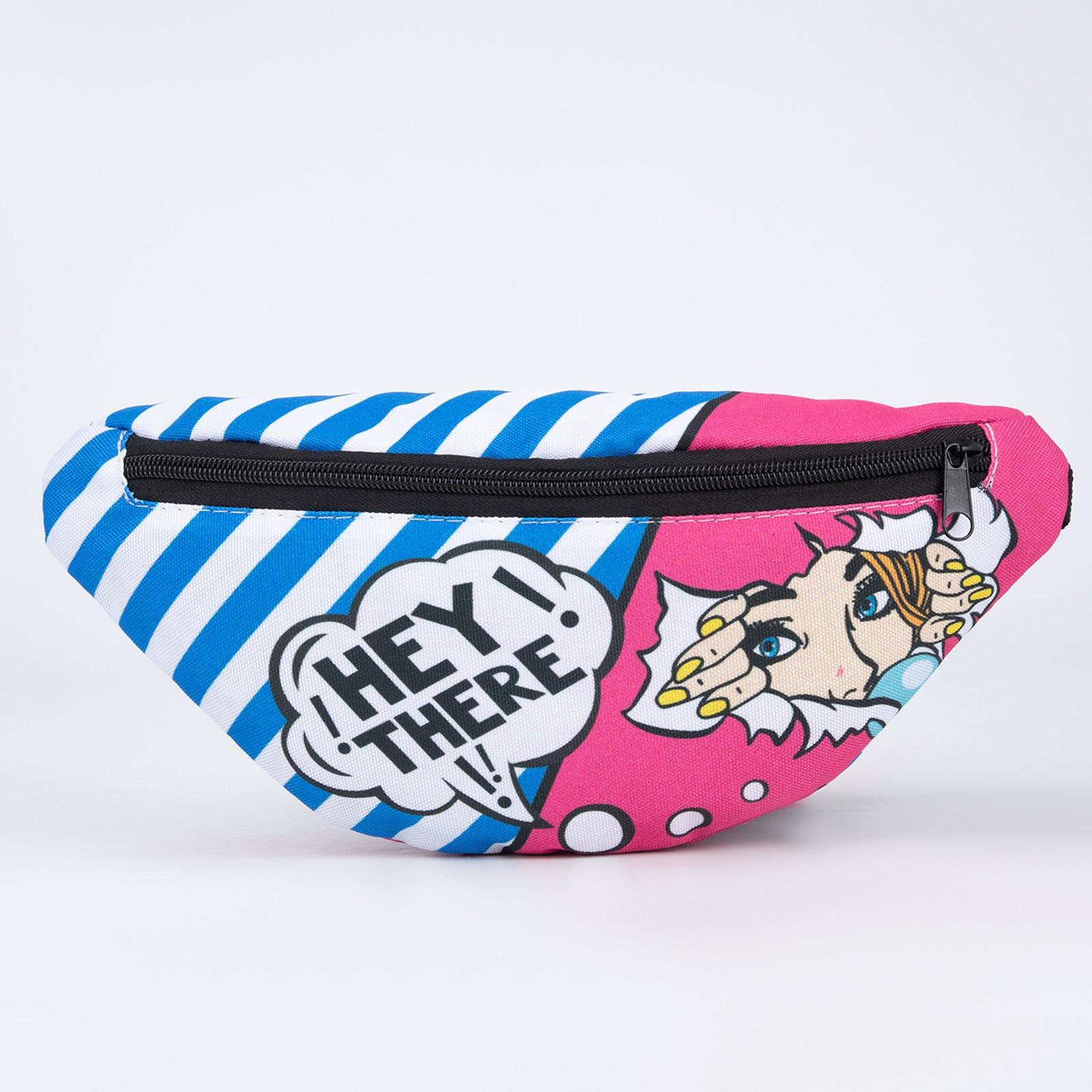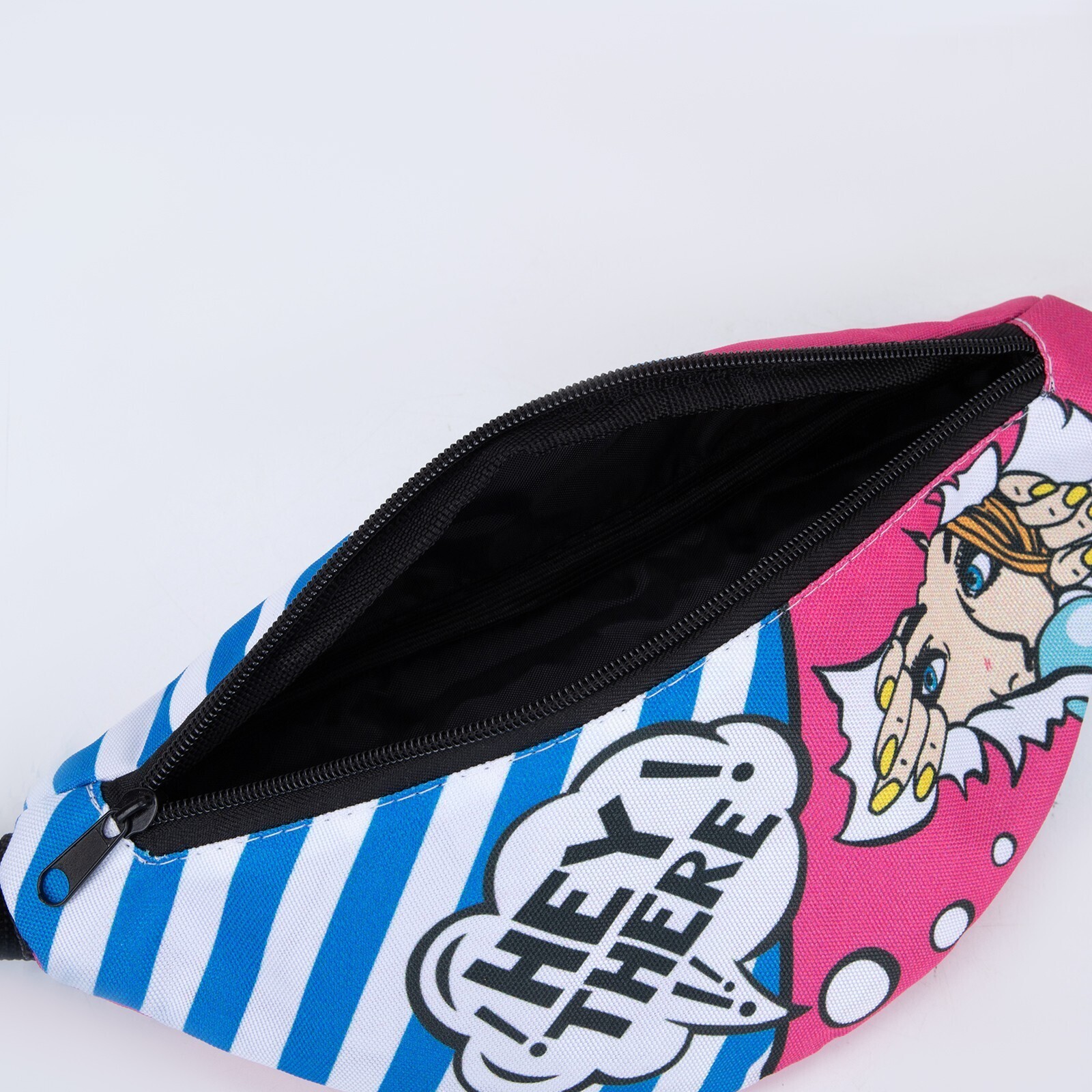 Сумка поясная «Комиксы» 32х8х15 см, отдел на молнии, цвет розовый/голубой