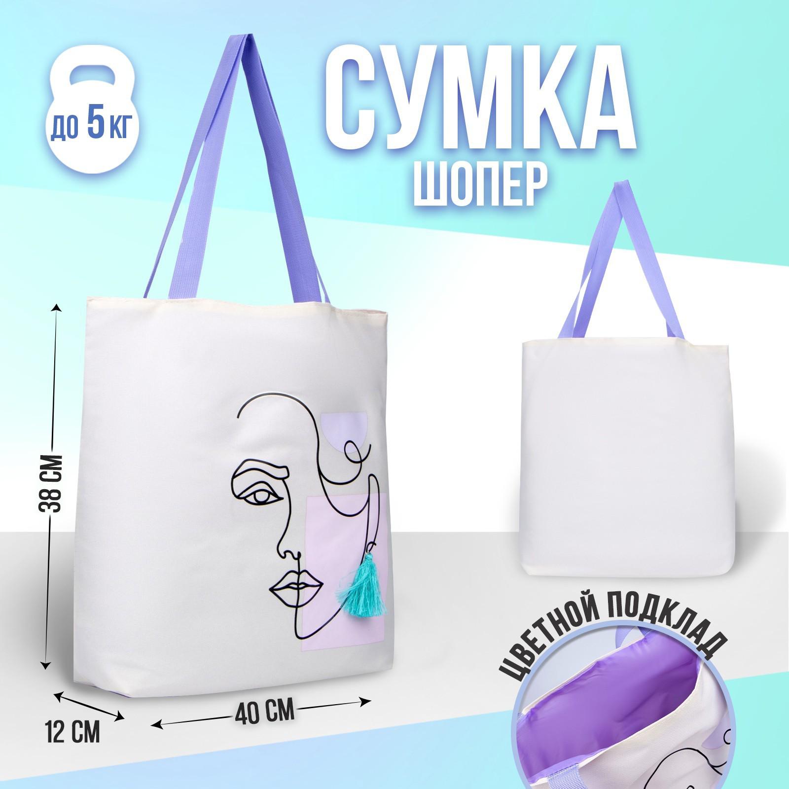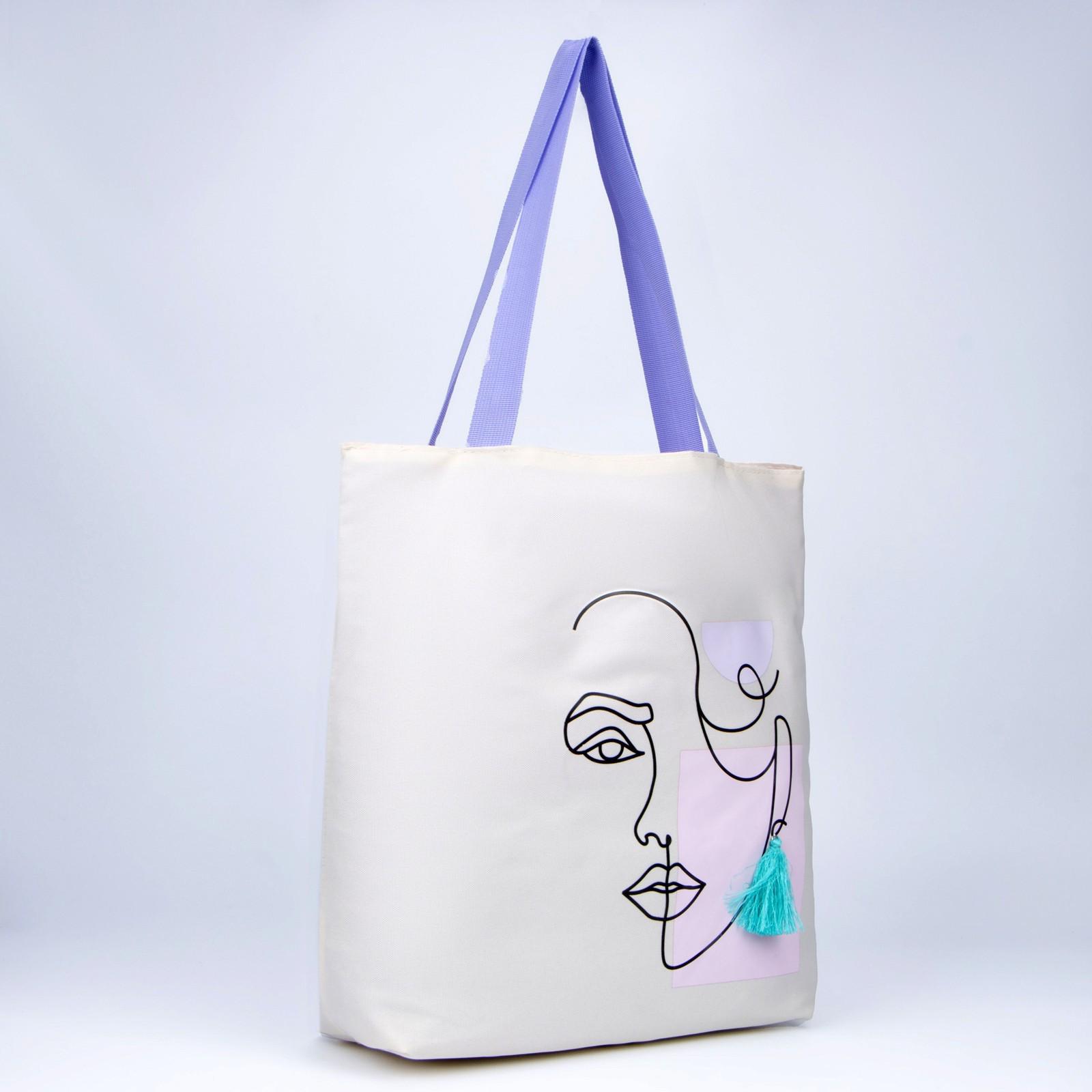 Сумка шопер One line без молнии с подкладкой, цвет бежевый