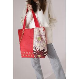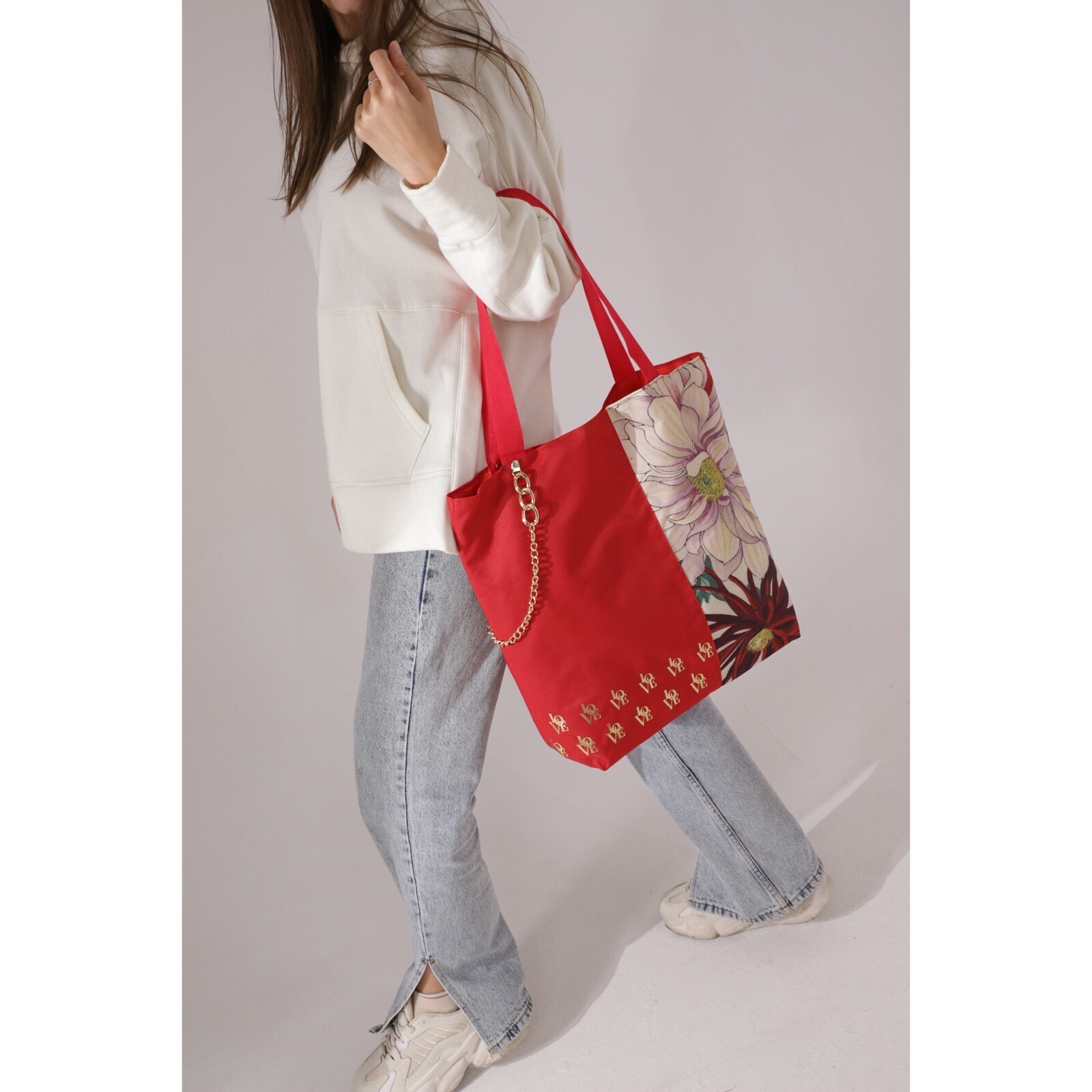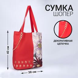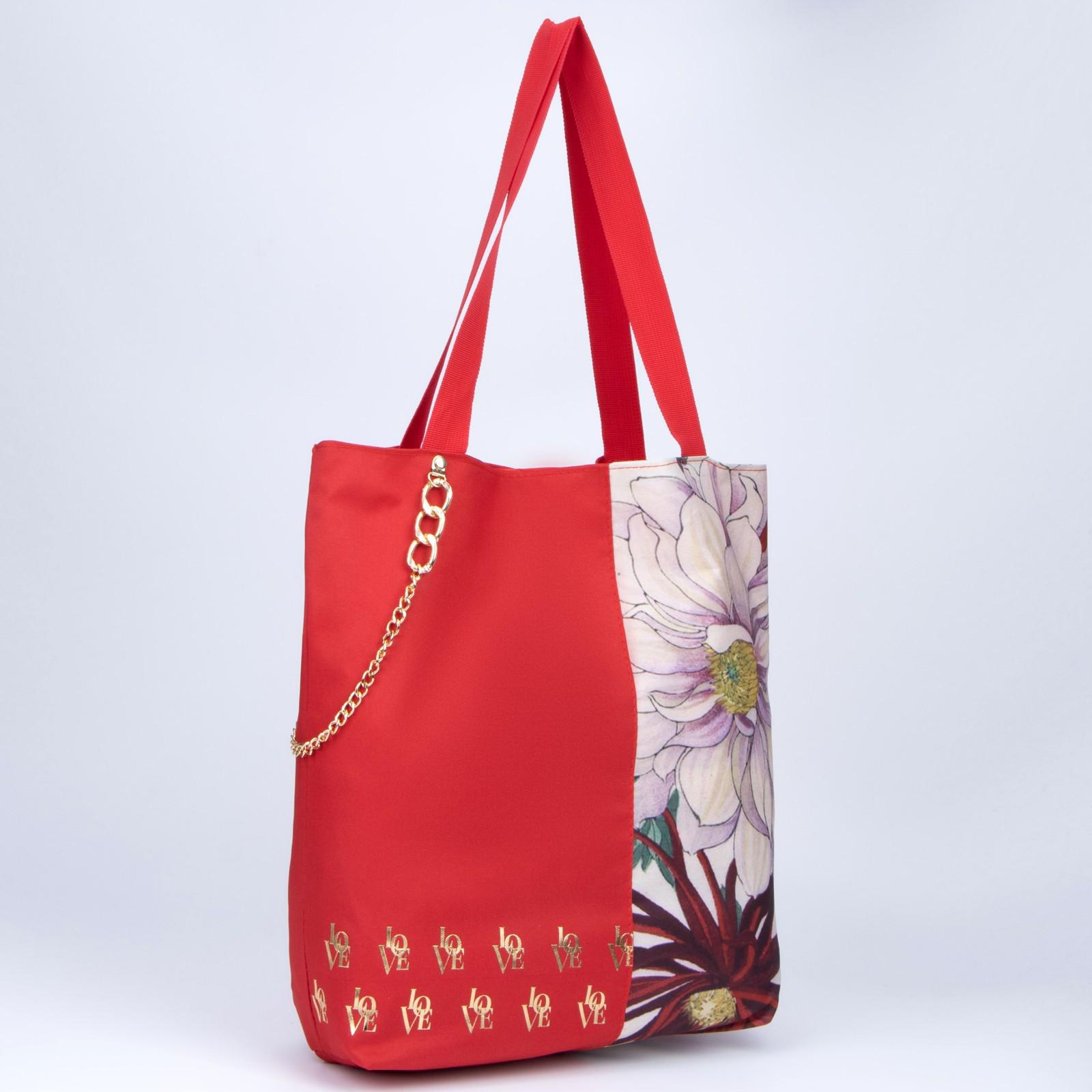 Сумка-шопер Flowers без молнии с подкладкой, цвет красный