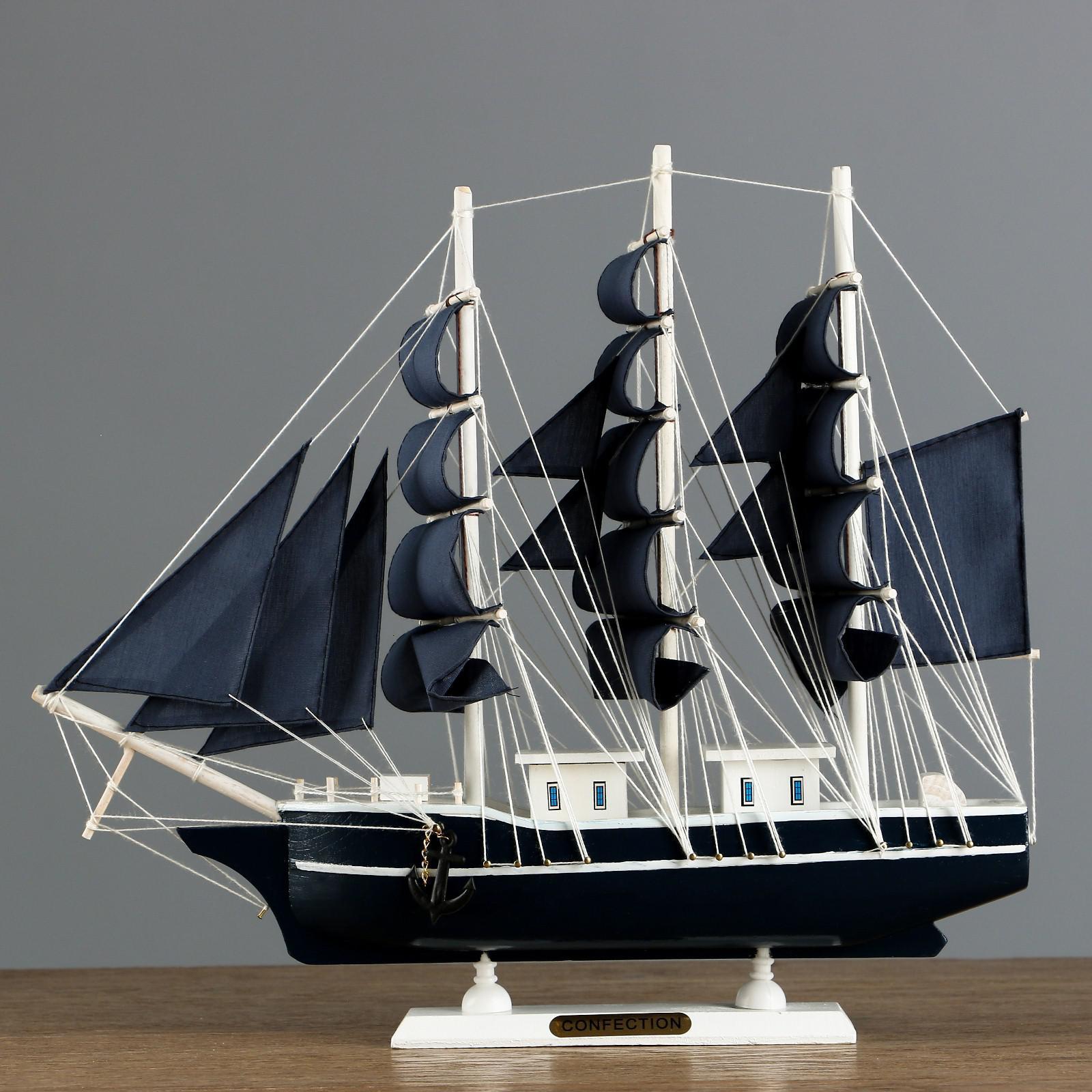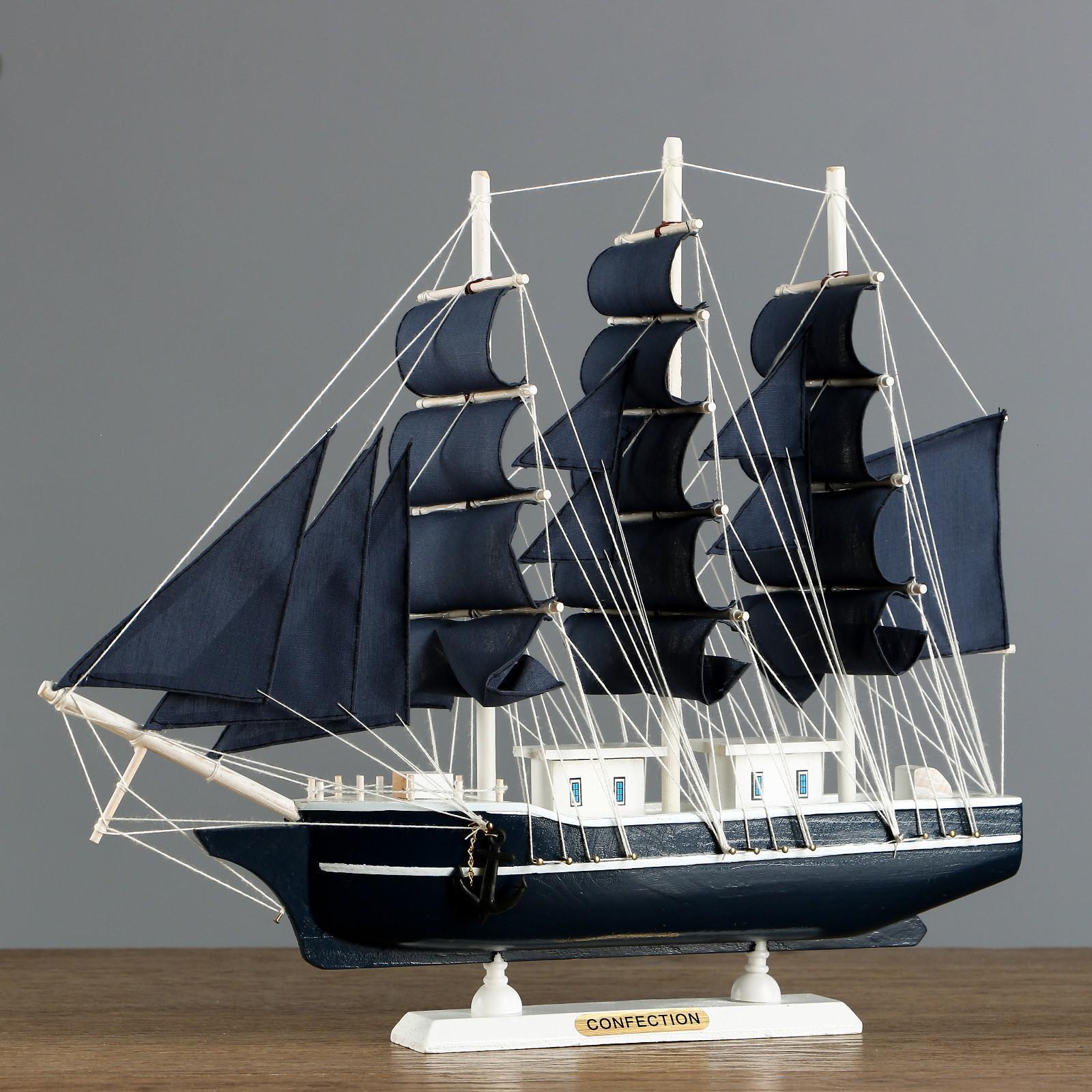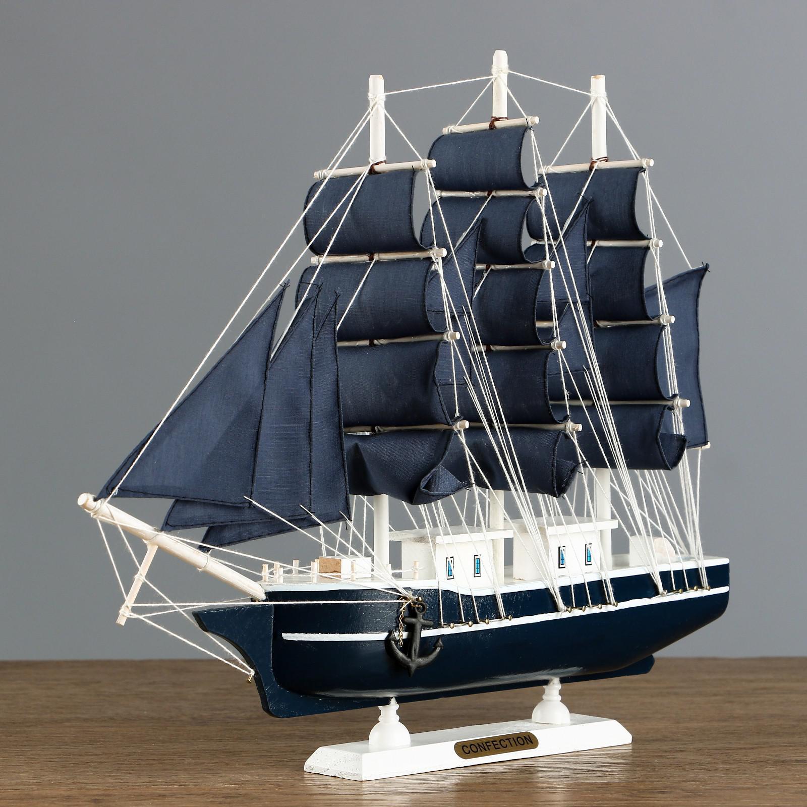 Корабль "Диана" трехмачтовый с синими парусами, 40*9*36см