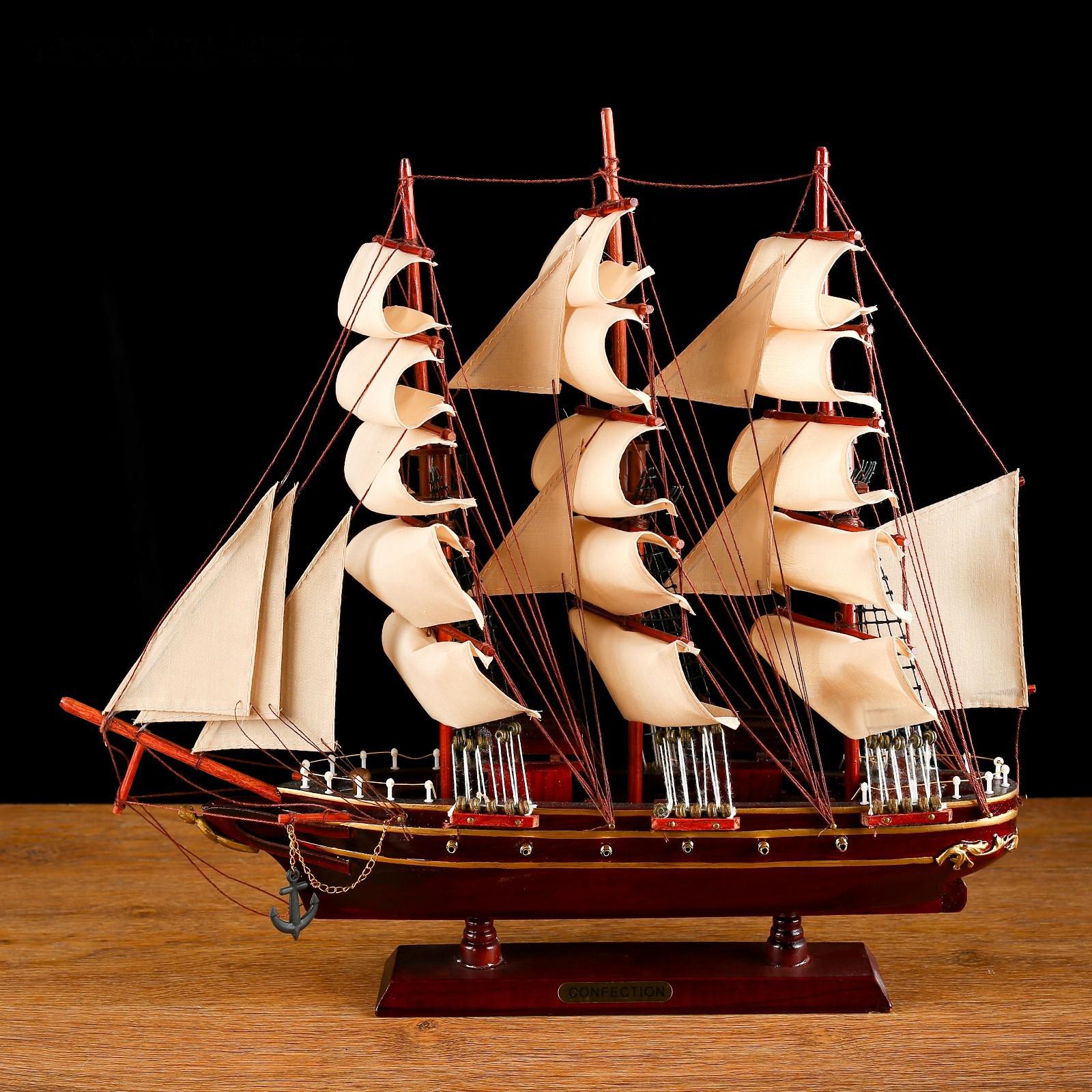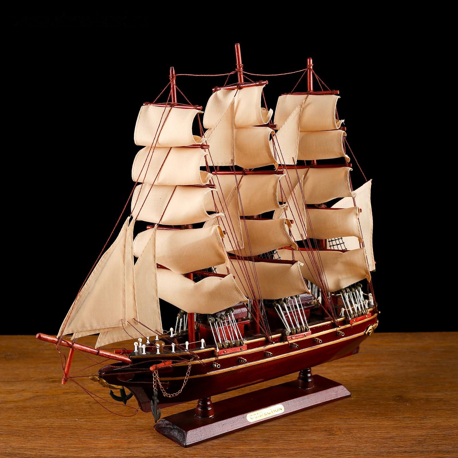 Корабль сувенирный средний «Трёхмачтовый», паруса бежевые, 49 х 42 х 8 см