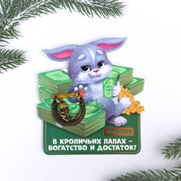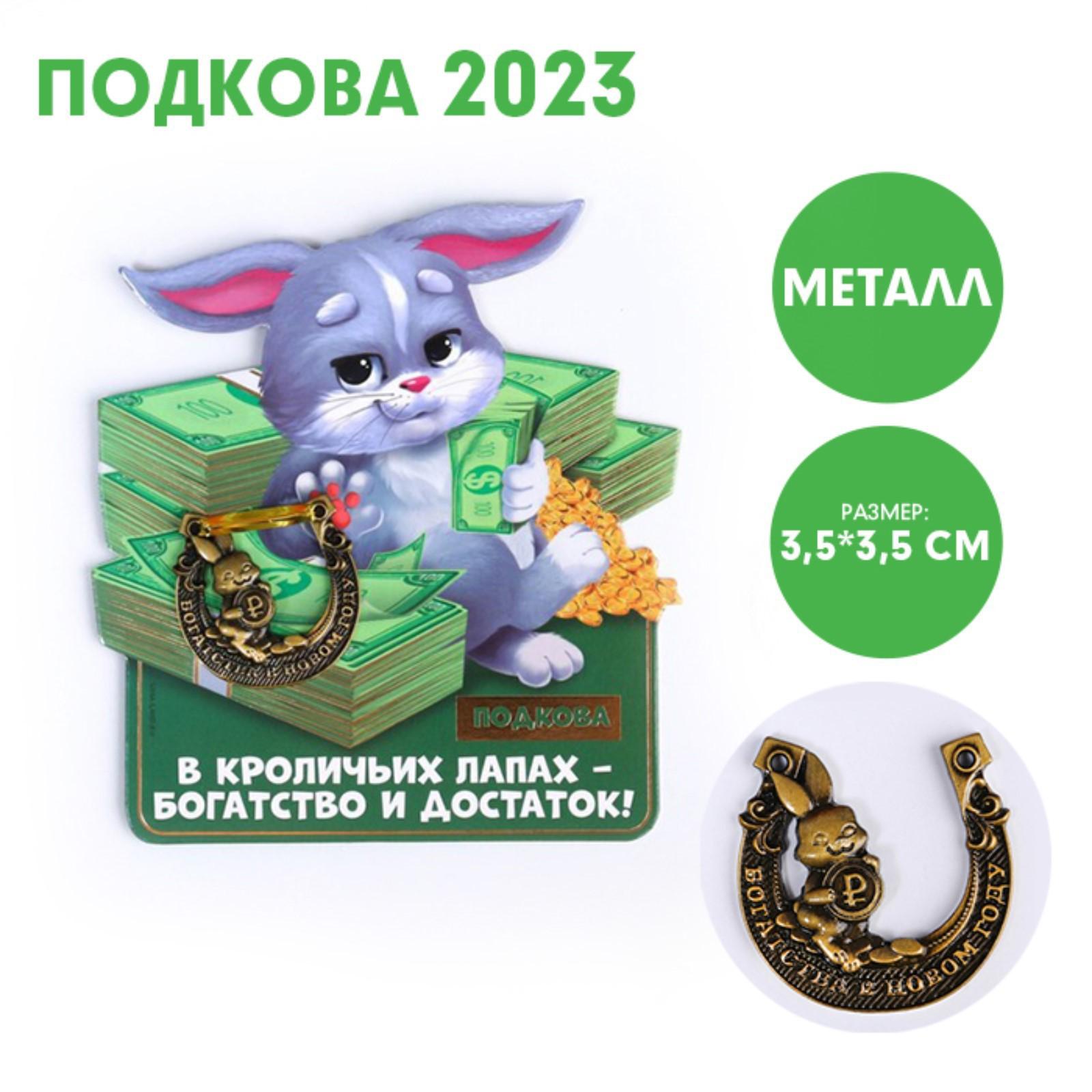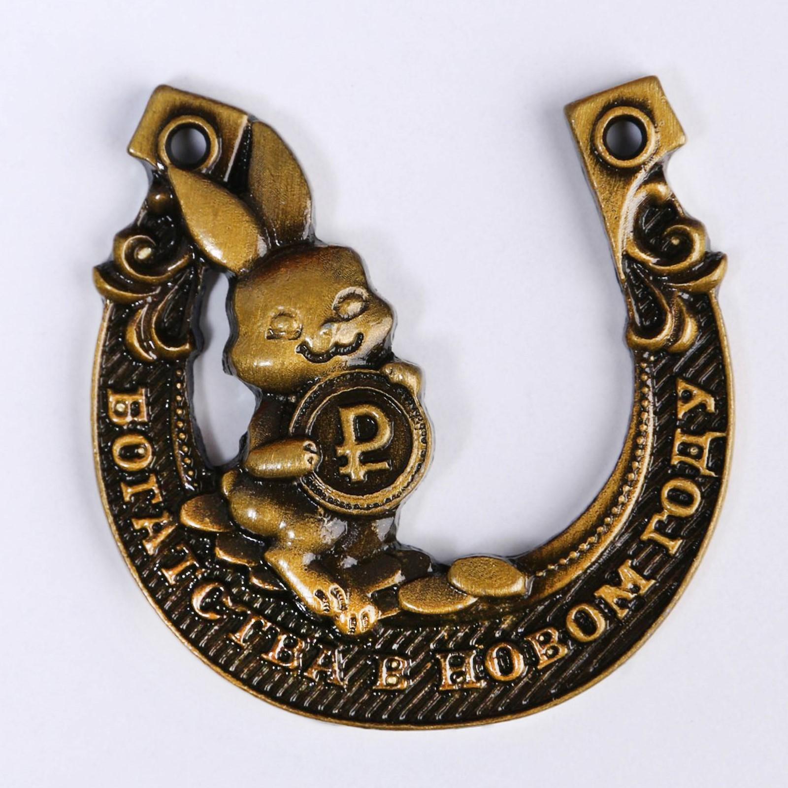 Сувенирная подкова 2023 «В кроличьих лапах богатство и достаток!», металл, 3,5 х 3,5 см