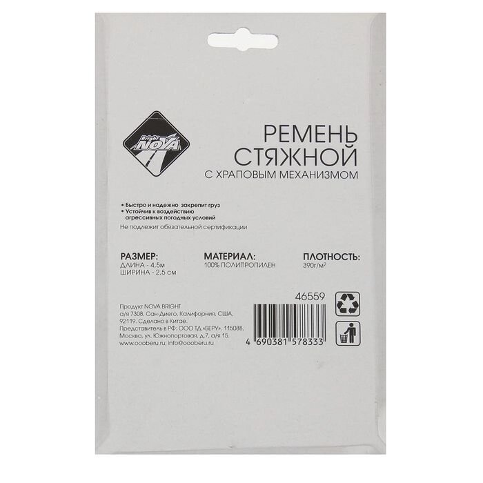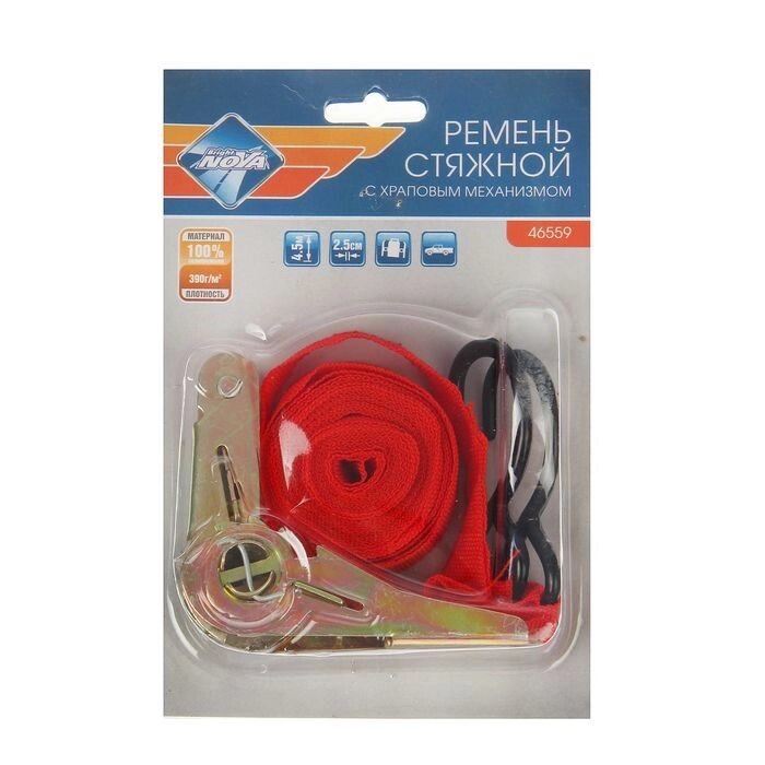 Стяжка груза ленточная Nova Bright, 2,5 см х 4,5 м, в блистере