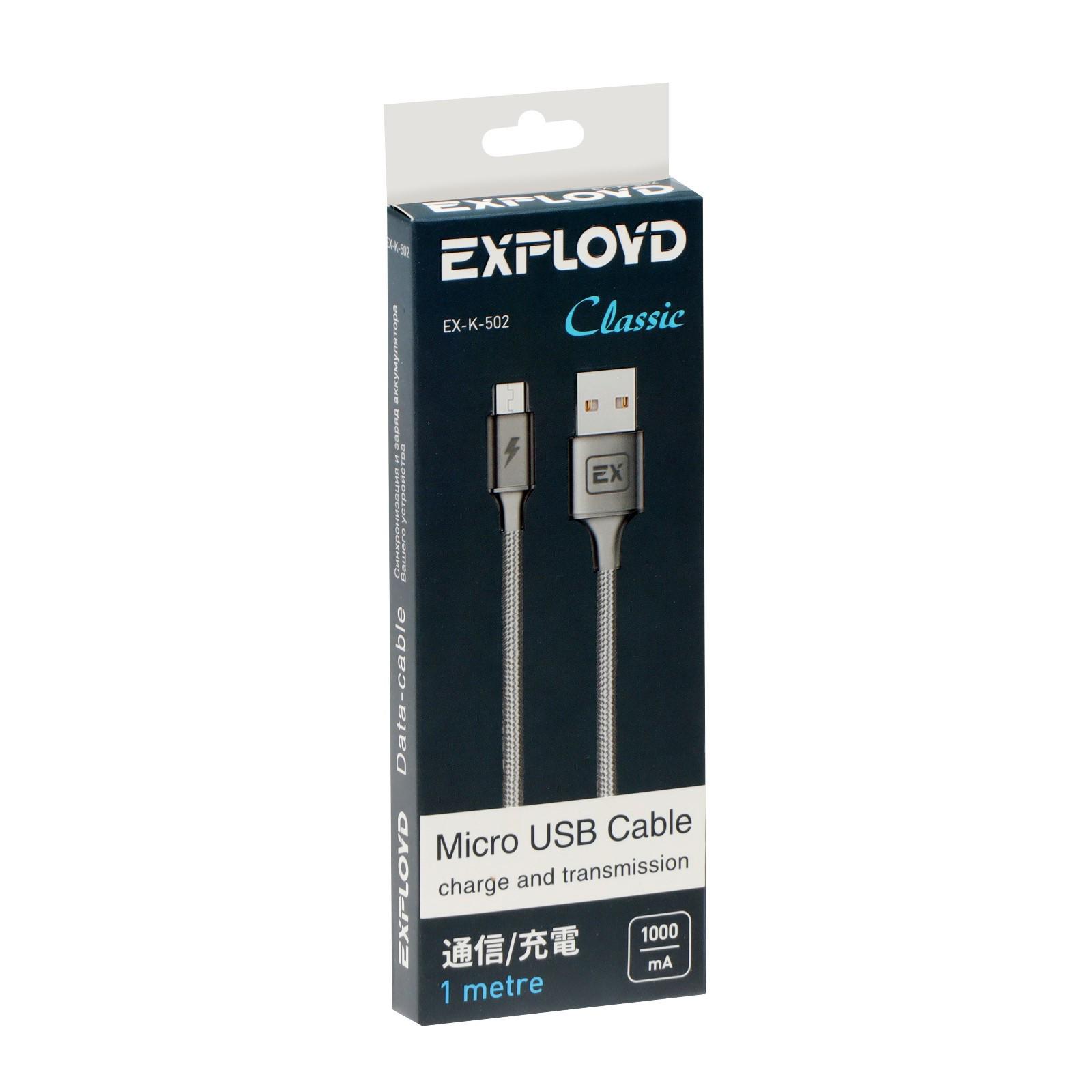 Кабель Exployd Classic EX-K-502, microUSB - USB, 1 м, серый