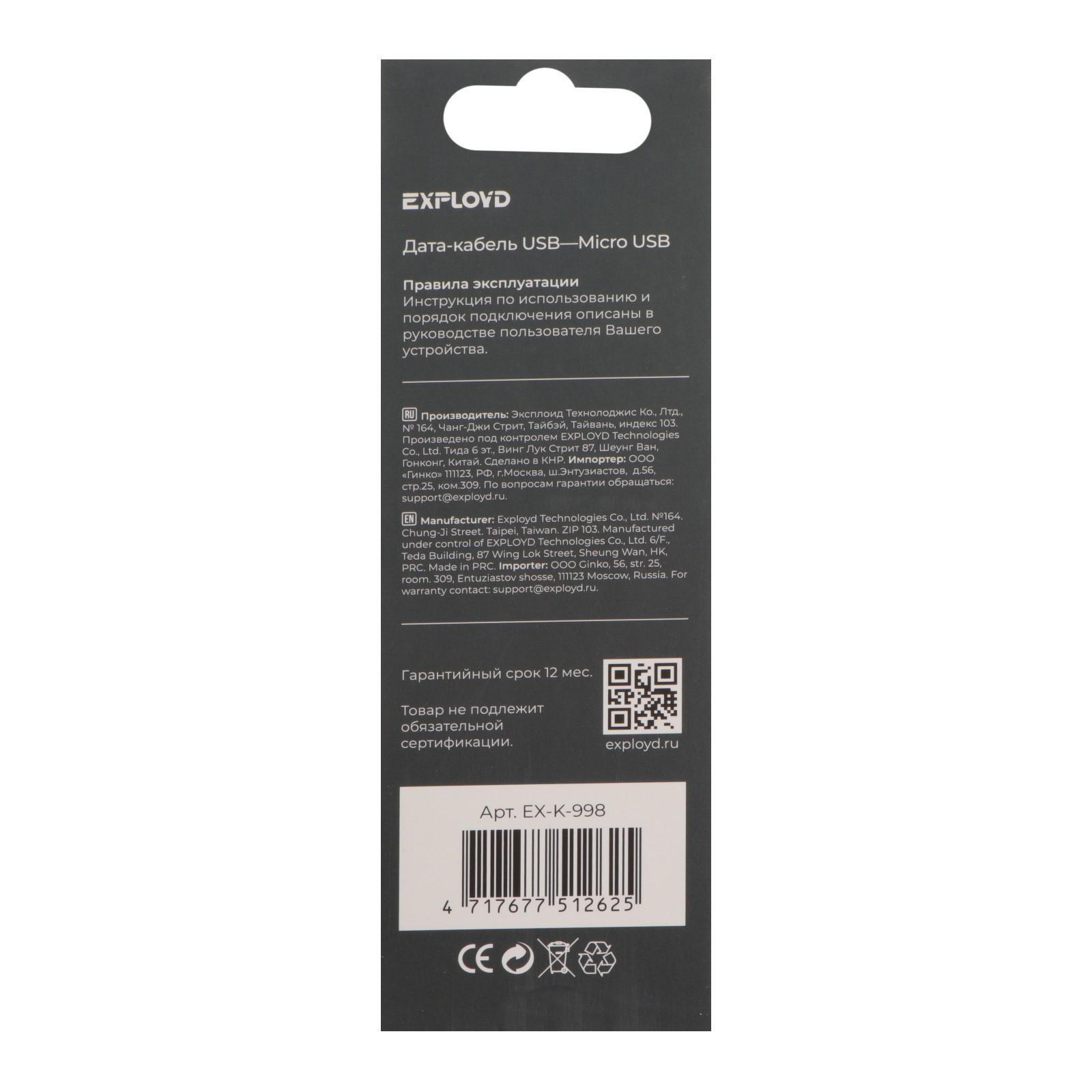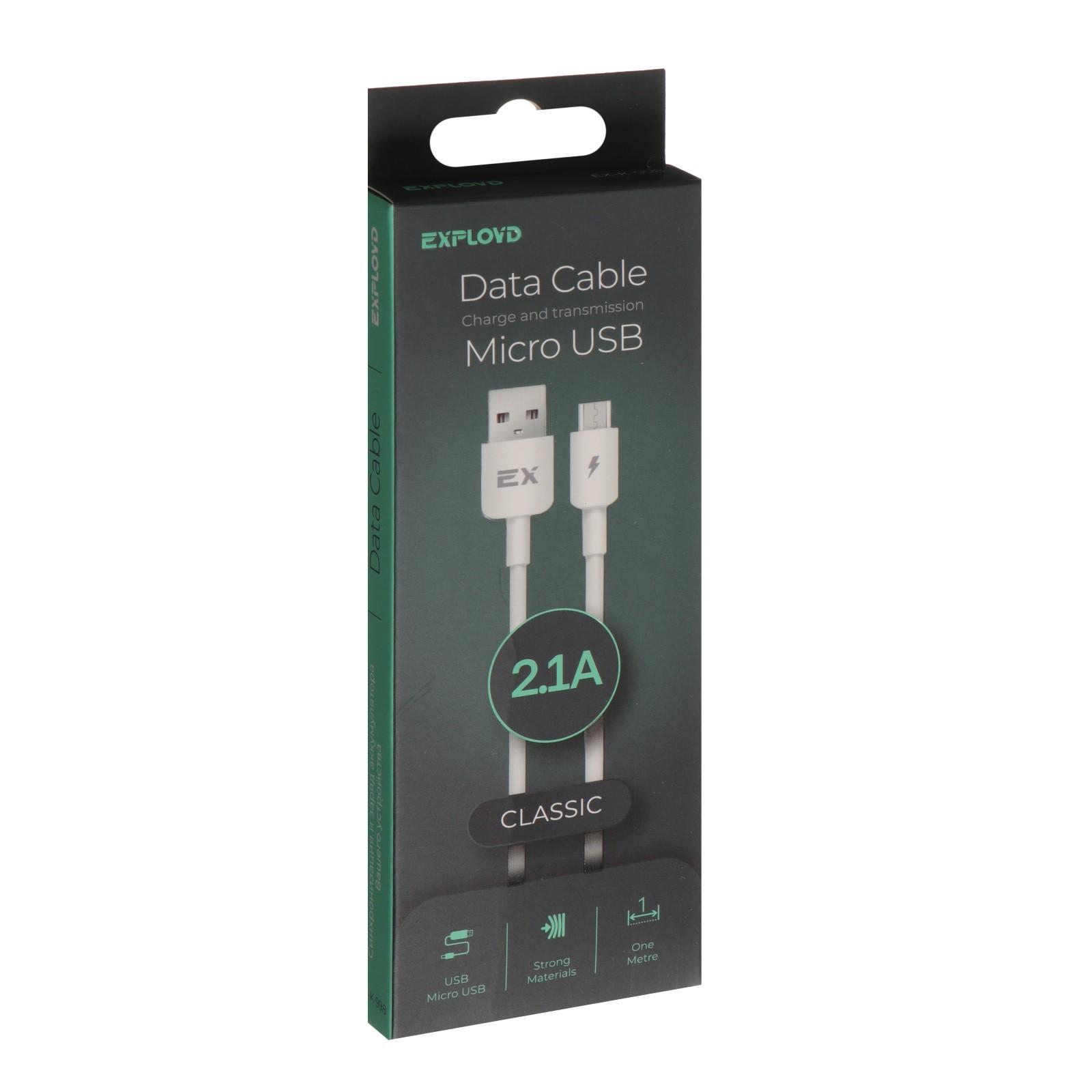Кабель Exployd EX-K-998, microUSB - USB, 2.1 А, 1 м, силиконовая оплетка, белый