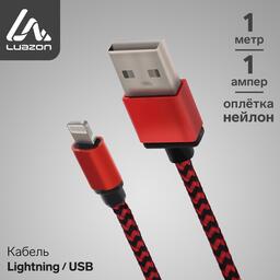 Кабель LuazON, Lightning - USB, 1 А, 1 м, оплётка нейлон, красный