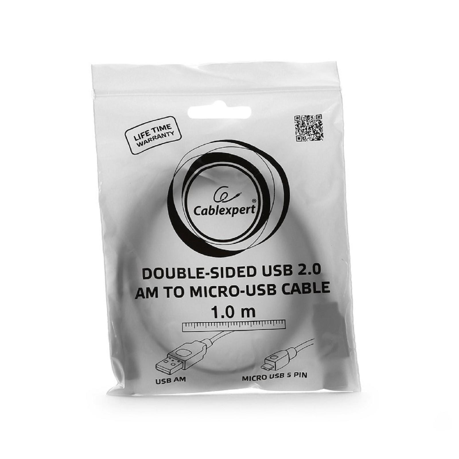 Кабель Cablexpert CC-mUSB2D-1M, microUSB - USB, 2.4 А, 1 м, двусторонний, черный