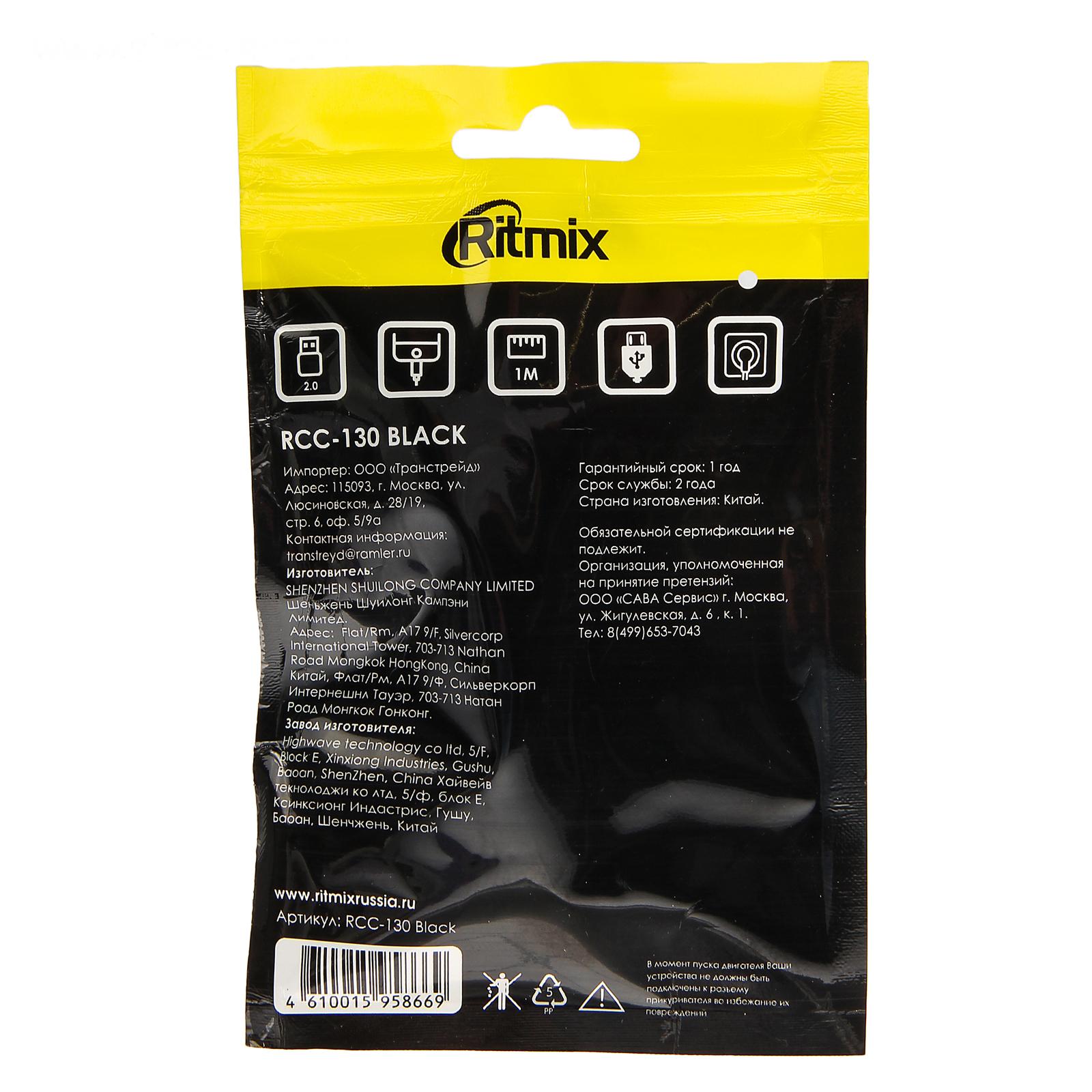 Кабель Ritmix RCC-130, Type-C - USB, 1 м, черный