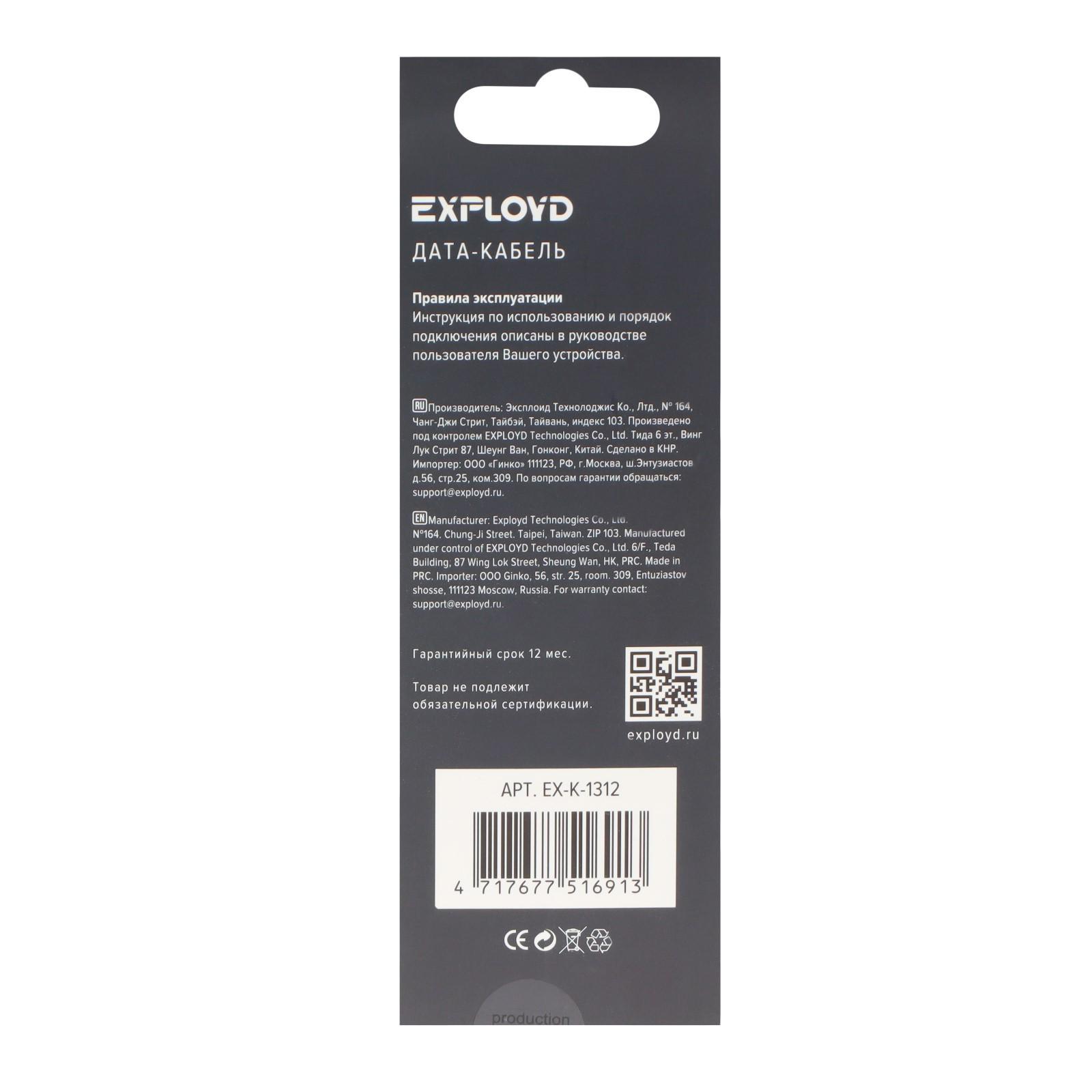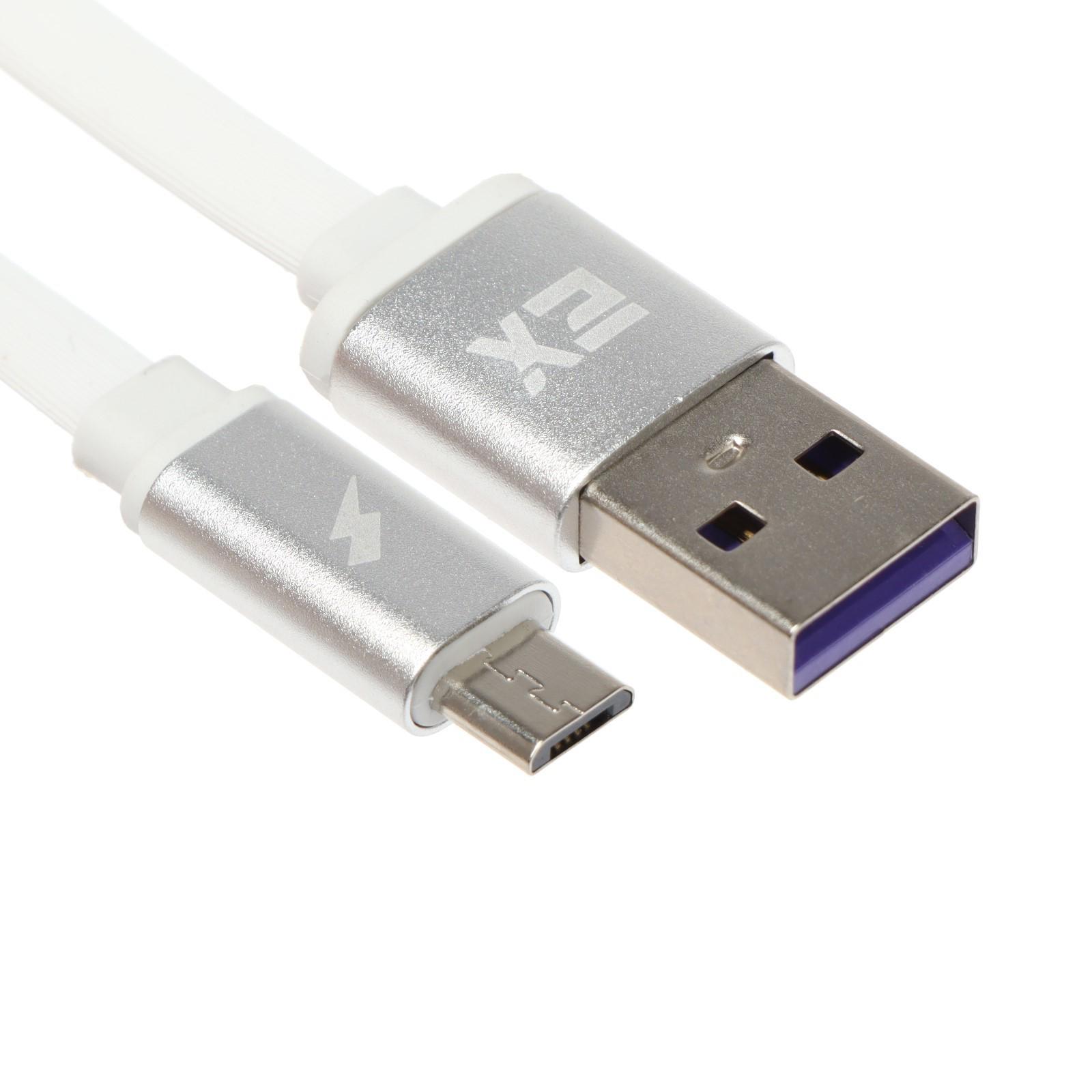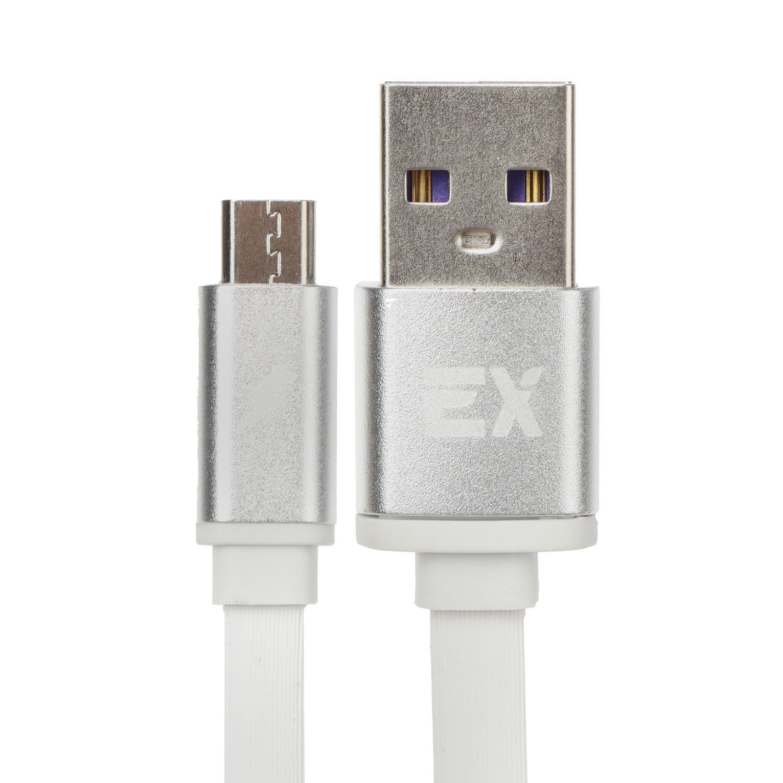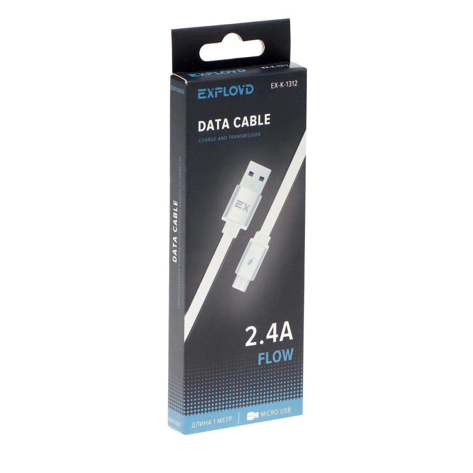 Кабель Exployd EX-K-1312, microUSB - USB, 2.4 А, 1 м, силиконовая оплетка, плоский, белый