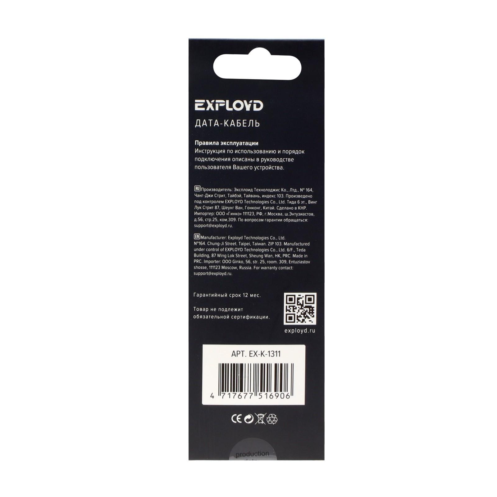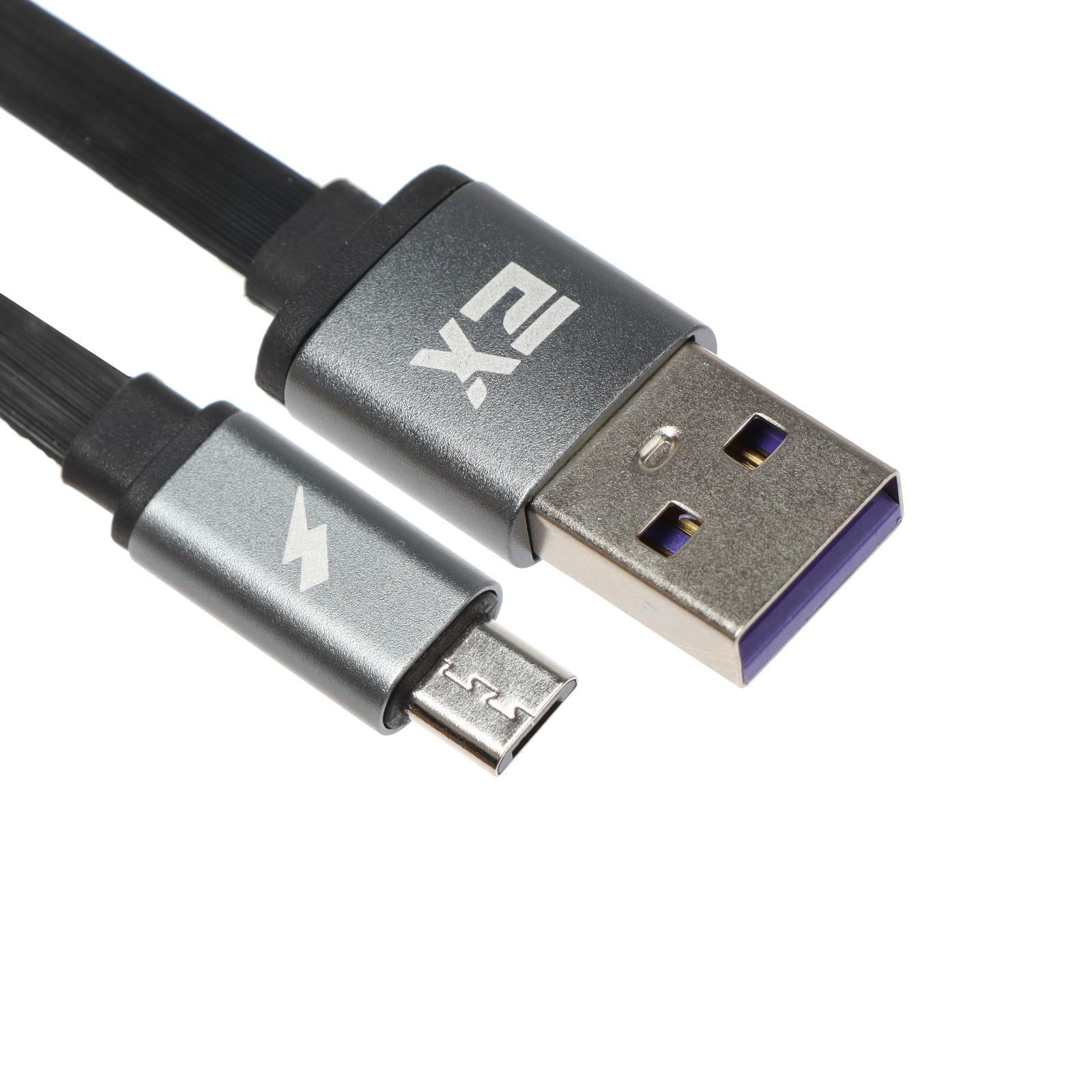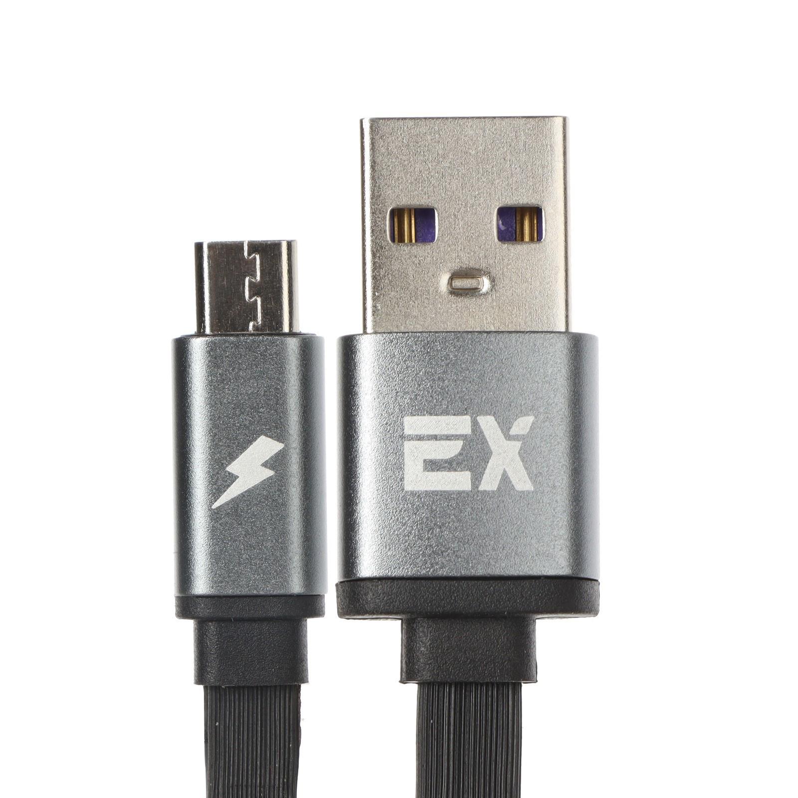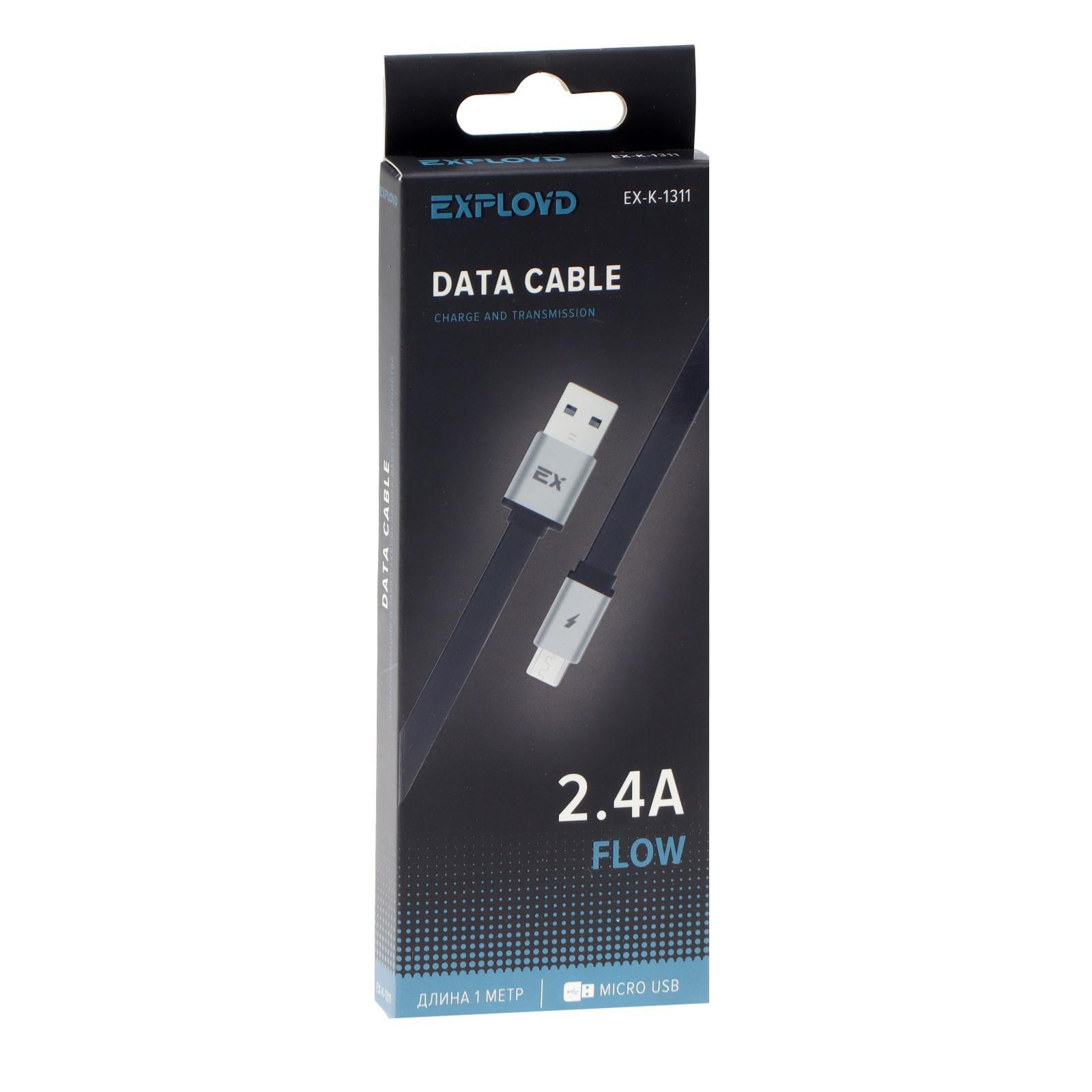 Кабель Exployd EX-K-1311, microUSB - USB, 2.4 А, 1 м, силиконовая оплетка, плоский, черный