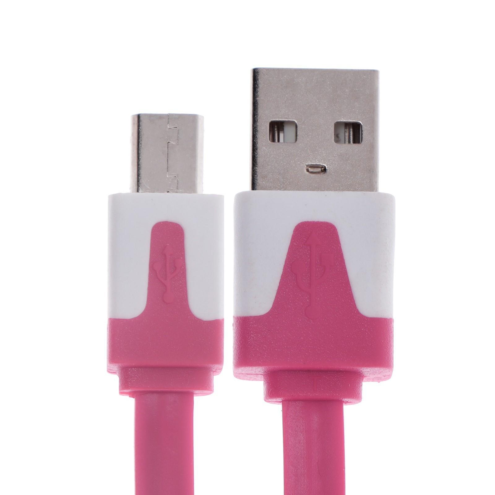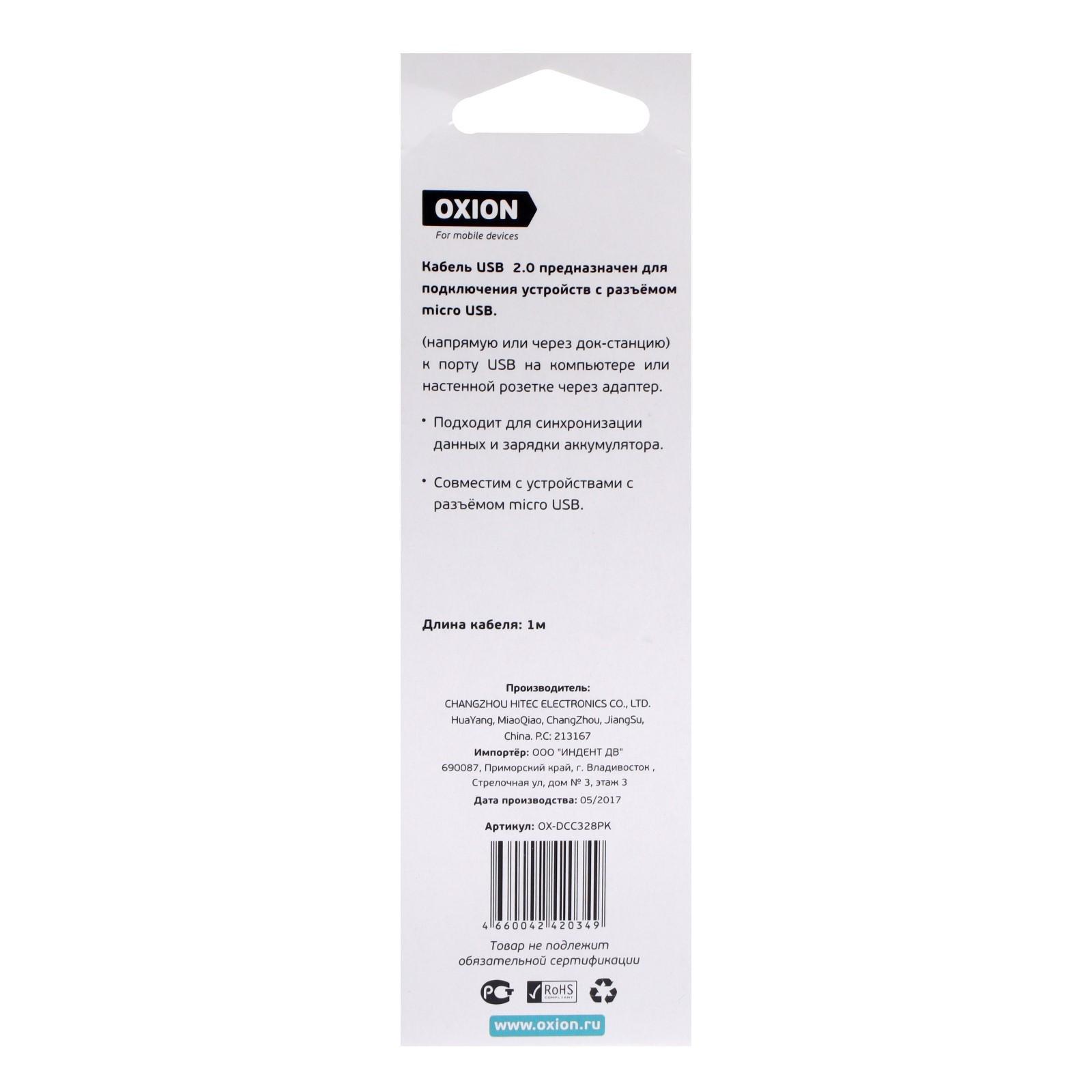 Кабель OXION DCC328, microUSB - USB, зарядка + передача данных, 1 м, плоский, розовый