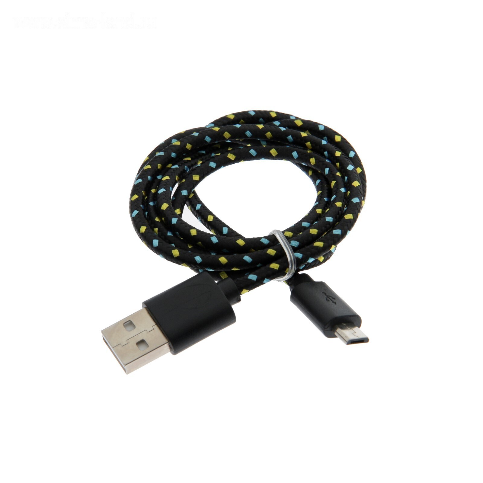 Кабель Defender USB08-03T, USB - microUSB, 1 м, тканевая оплётка, чёрный