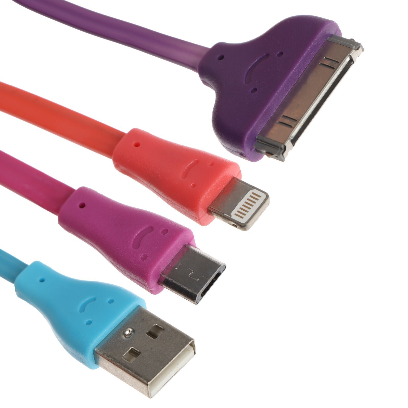Кабель 3 в 1 OXION, microUSB/Lightning/iPhone 30-pin - USB, 1 А, 0.2 м, разноцветный