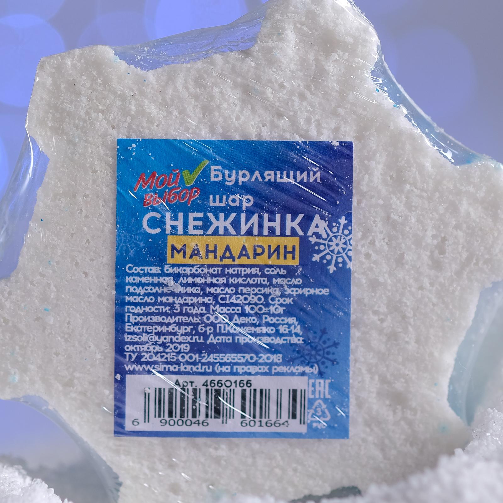 Бомбочка для ванн «Снежинка», синяя, с маслом мандарина, 100 г