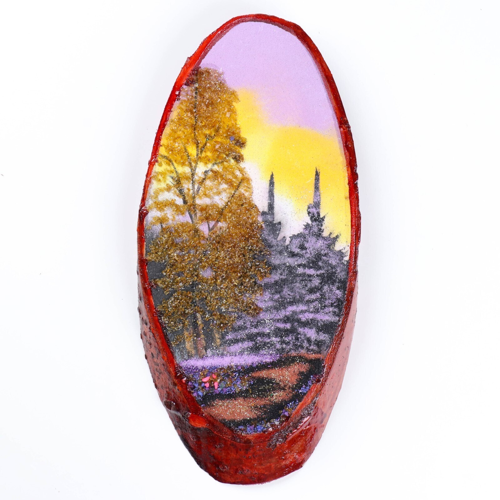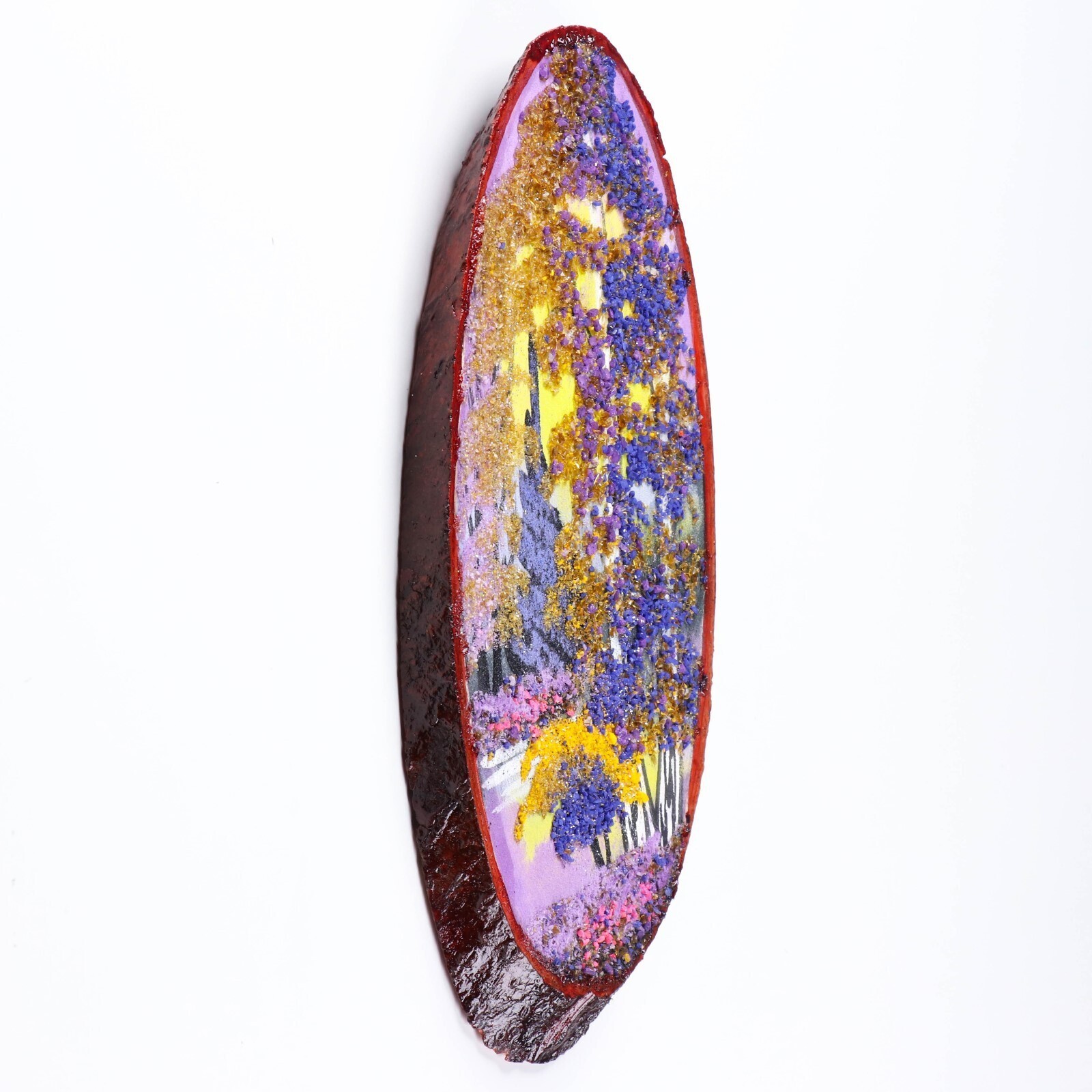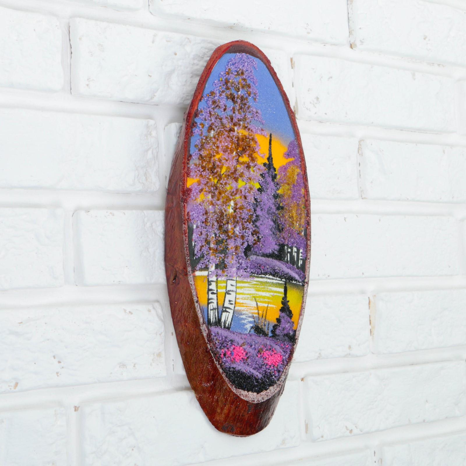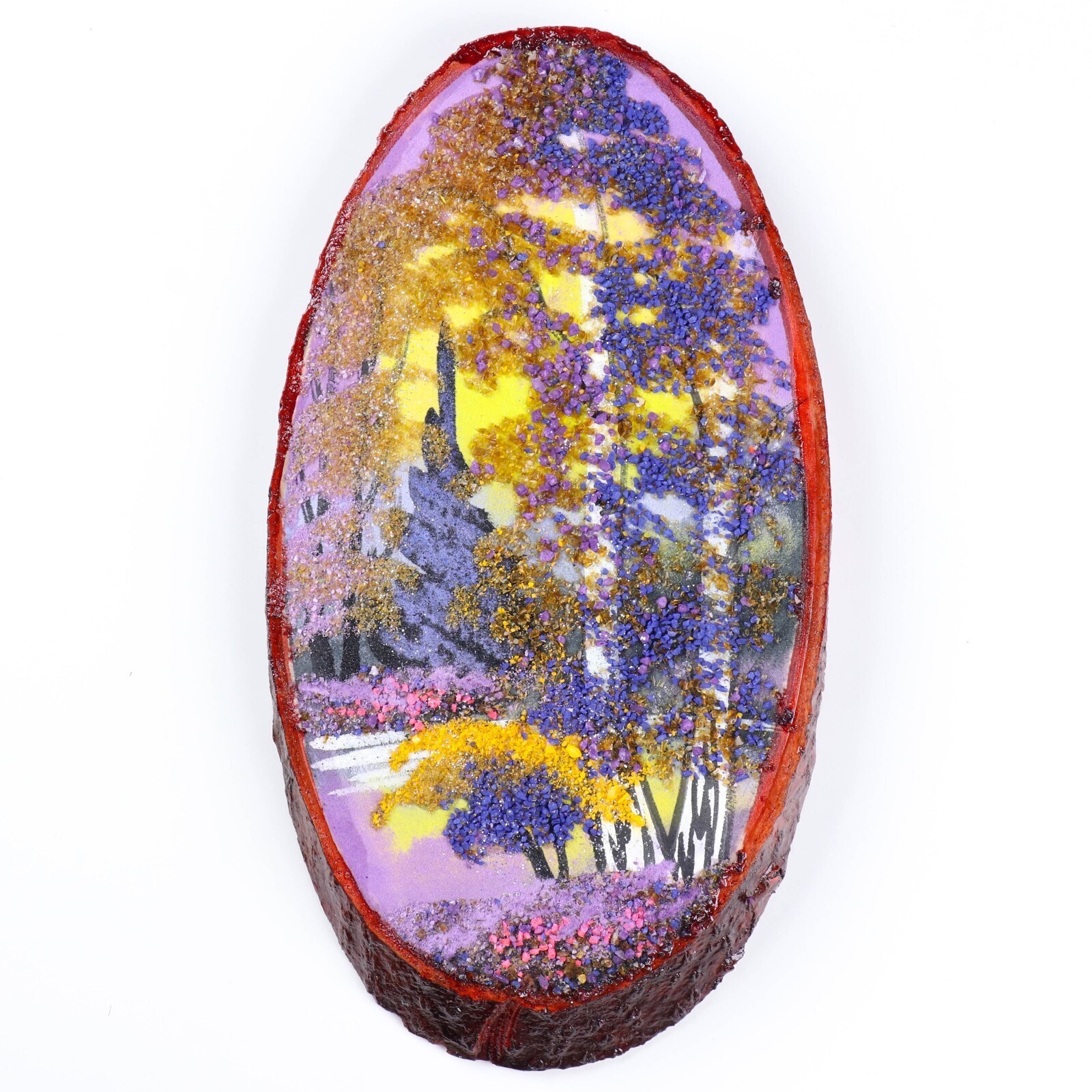 Панно из каменной крошки на спиле дерева создано вручную. Станет элегантным подарком и украшением стены.