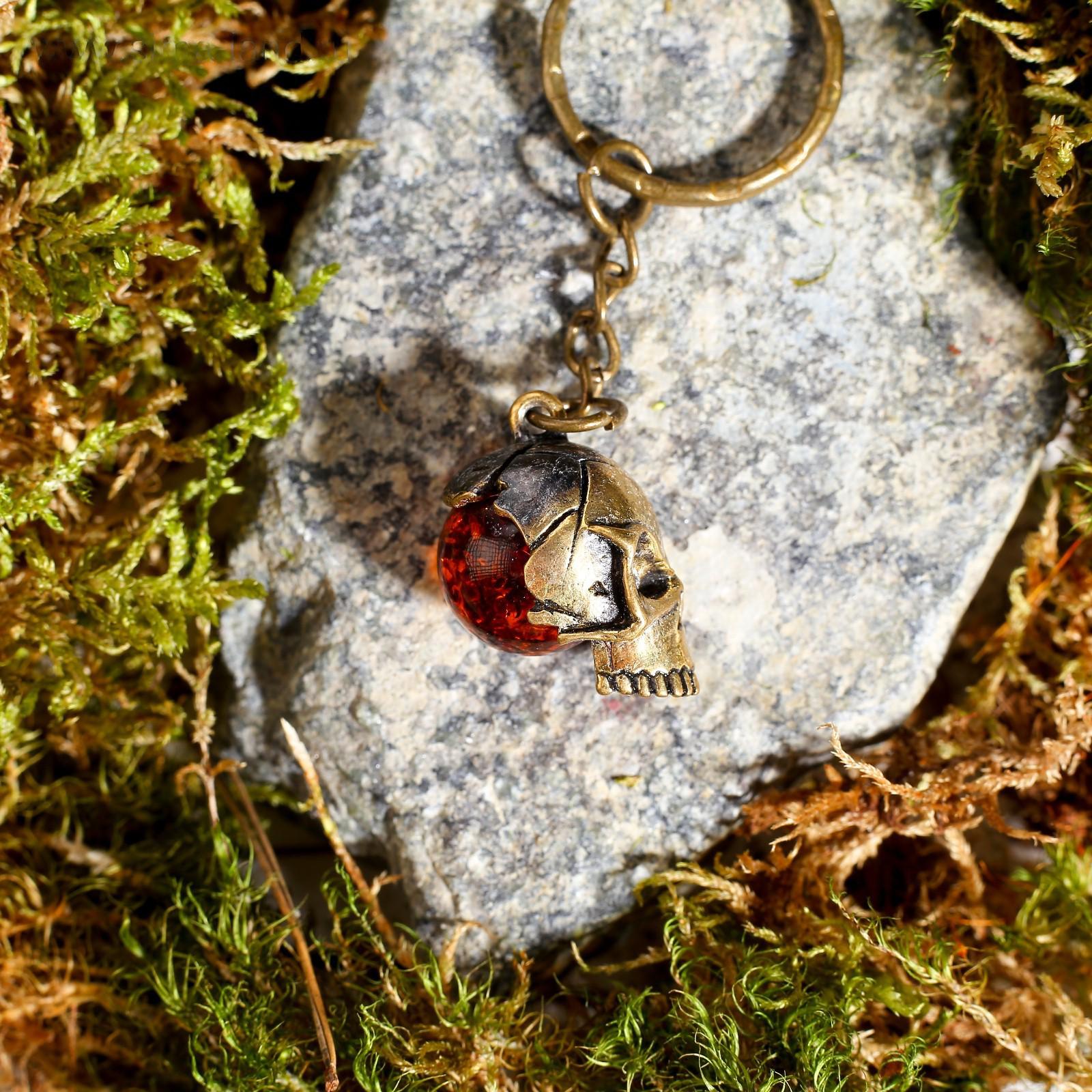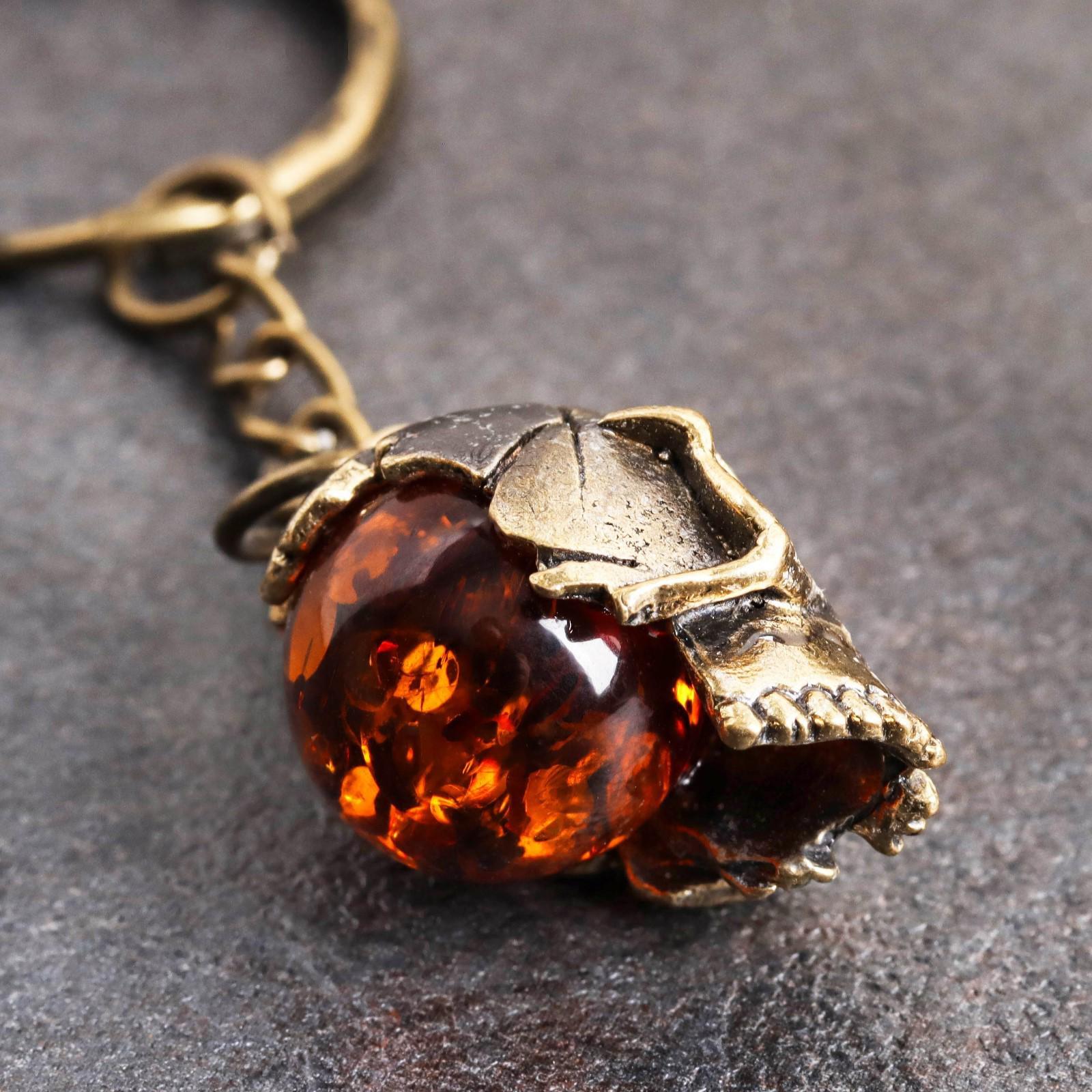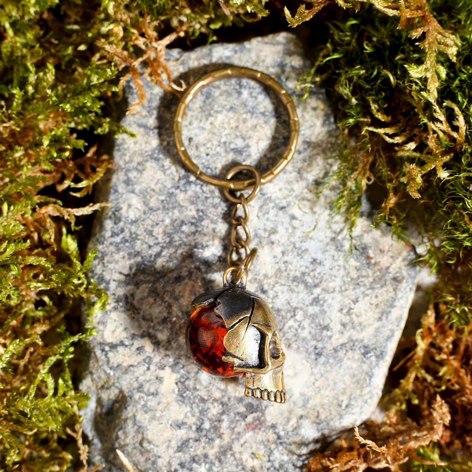 Брелок из латуни и янтаря "Череп" 1.8х2.5 см